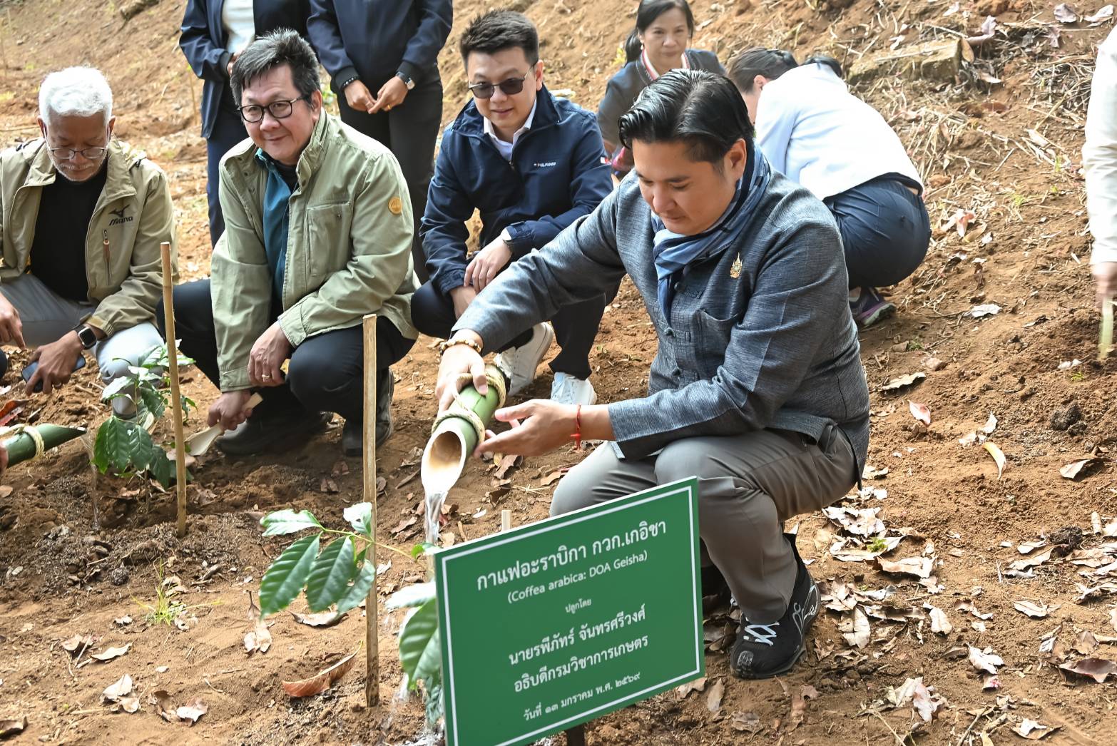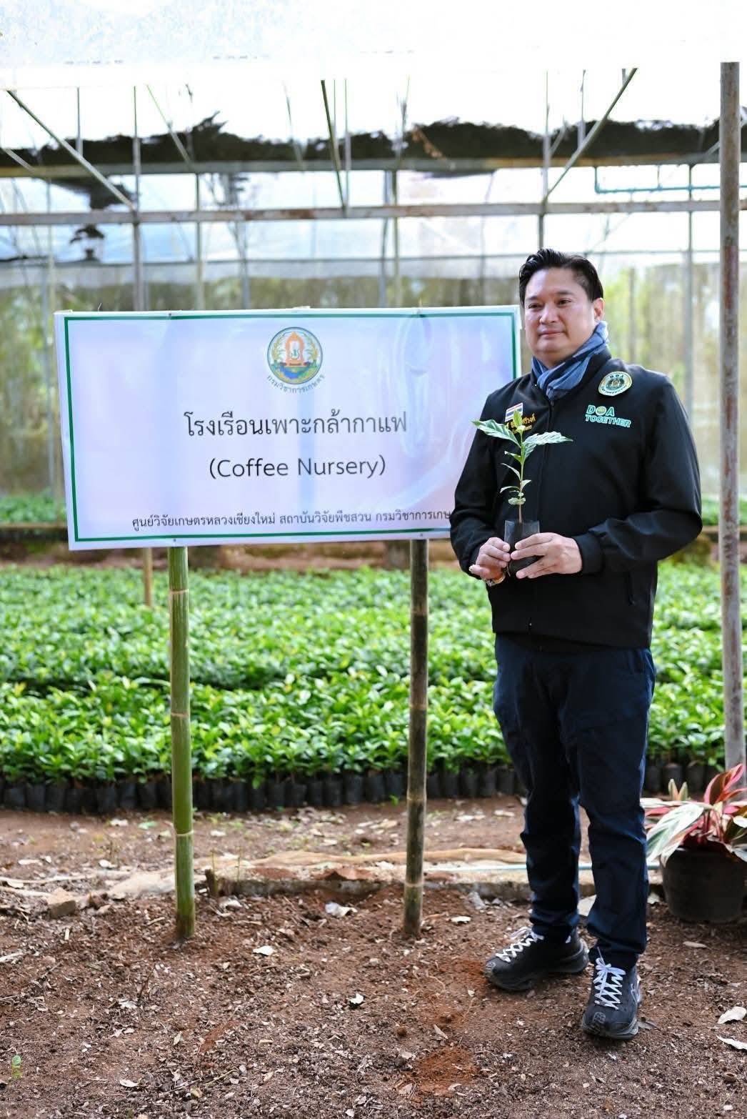 ในโอกาสนี้ อธิบดีกรมวิชาการเกษตร ได้ติดตามโครงการกระจายพันธุ์ต้นกล้ากาแฟ 1 ล้านต้น และมอบนโยบายเชิงรุก ต่อยอดโครงการผลิตและกระจายต้นกล้ากาแฟ 10 ล้านต้น เพื่อเทิดพระเกียรติในโอกาสครบรอบ 10 ปี แห่งการครองราชย์ของในหลวงรัชกาลที่ 10 (พระบาทสมเด็จพระวชิรเกล้าเจ้าอยู่หัว) โดยกรมวิชาการเกษตรบูรณาการร่วมกับหน่วยงานภาคีเครือข่ายในการขับเคลื่อนการผลิตกาแฟคุณภาพตลอดห่วงโซ่อุปทาน และโครงการขยายพันธุ์นางพญาเสือโคร่ง 1,000,000 กล้า เพื่อส่งเสริมการท่องเที่ยวเชิงเกษตรและแก้ไขปัญหาฝุ่น PM 2.5