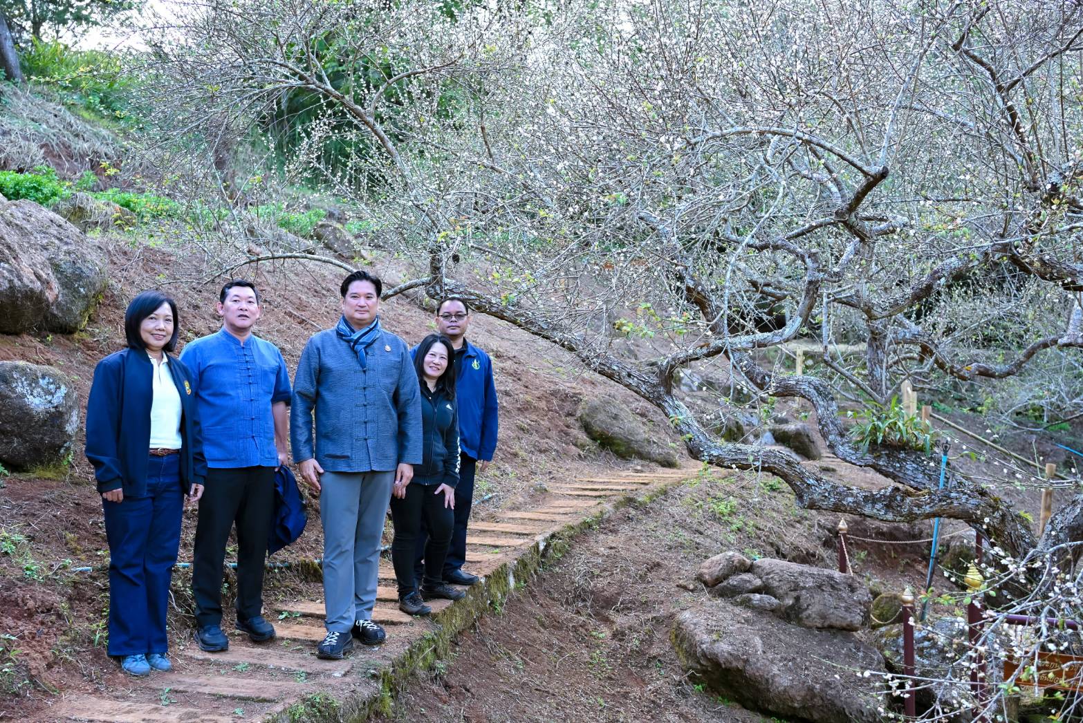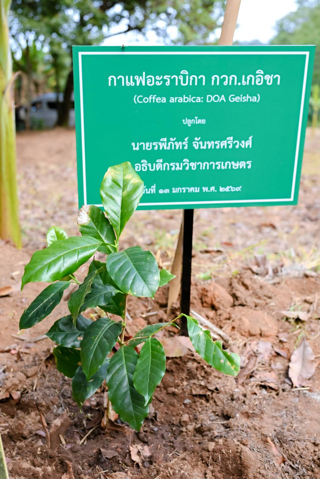 พร้อมกันนี้ อธิบดีกรมวิชาการเกษตร ได้เยี่ยมชมแปลงทดสอบการปลูกซากุระจากประเทศญี่ปุ่น ณ ศูนย์วิจัยเกษตรหลวงเชียงใหม่ (ขุนวาง) และแปลงแม่พันธุ์กาแฟที่ใช้สำหรับการผลิตต้นกล้ากาแฟในการดำเนินโครงการฯดังกล่าว ณ ศูนย์วิจัยเกษตรหลวงเชียงใหม่ (แม่จอนหลวง) นอกจากนี้ ได้เยี่ยมชมแปลงรวบรวมและอนุรักษ์พันธุกรรมชา และได้มอบนโยบายกระจายพันธุ์สู่เกษตรกรและผู้ประกอบการทั่วประเทศ เป้าหมาย 1 ล้านต้น เพื่อลดการพึ่งพาการนำเข้าชามัทฉะและชาเขียวจากต่างประเทศ พร้อมสร้างความยั่งยืนให้กับชุมชนในพื้นที่สูง ณ ศูนย์วิจัยเกษตรหลวงเชียงใหม่ (แม่จอนหลวง)