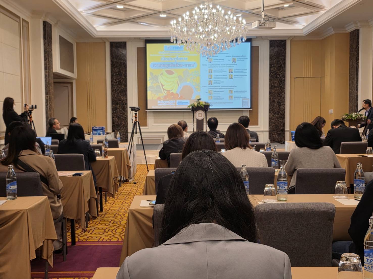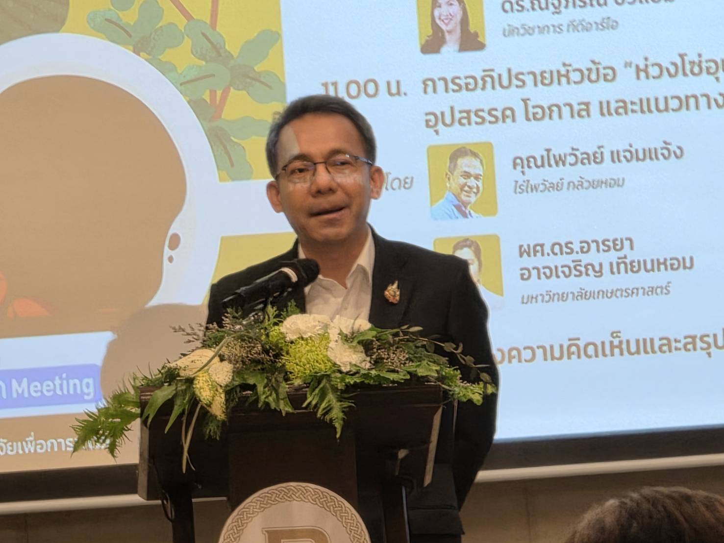 ข่าวกิจกรรม ดร.อรทัย วงค์เมธา ผู้อำนวยการศูนย์วิจัยเกษตรหลวงเชียงใหม่ พร้อมด้วยนางสาวศิริภรณ์ จรินทร นักวิชาการเกษตรปฏิบัติการ เข้าร่วมงานสัมมนาเผยแพร่ผลการศึกษา โครงการวิเคราะห์ห่วงโซ่อุปทานและโอกาสการพัฒนาเกษตรอุตสาหกรรมมูลค่าสูง เปิดประตูโอกาสเจาะกลยุทธกล้วย-กาแฟ 31/03/2569 ว่าที่ร้อยตรีชยพล เดชาคุ้ม วันที่ 24 มีนาคม 2569 ดร.อรทัย วงค์เมธา ผู้อำนวยการศูนย์วิจัยเกษตรหลวงเชียงใหม่ พร้อมด้วยนางสาวศิริภรณ์ จรินทร นักวิชาการเกษตรปฏิบัติการ เข้าร่วมงานสัมมนาเผยแพร่ผลการศึกษา โครงการวิเคราะห์ห่วงโซ่อุปทานและโอกาสการพัฒนาเกษตรอุตสาหกรรมมูลค่าสูง เปิดประตูโอกาสเจาะกลยุทธกล้วย-กาแฟ โดยมี นายศุภกิจ บุญศิริ ผู้อำนวยการสำนักงานเศรษฐกิจอุตสาหกรรม เป็นประธานกล่าวเปิดงาน มีวัตถุประสงค์เพื่อให้ทราบช่องว่าง อุปสรรค และโอกาสของห่วงโซ่อุปทานของเกษตรอุตสาหกรรมมูลค่าสูงจากฐานการเกษตร และแนวทางการส่งเสริมเกษตรอุตสาหกรรมมูลค่าสูงจากฐานการเกษตร จัดโดย สำนักงานเศรษฐกิจอุตสาหกรรม (สศอ.) ร่วมกับมูลนิธิสถาบันวิจัยเพื่อการพัฒนาประเทศไทย (TDRI) ณ ห้อง Somerset Ballroom ชั้น 5 โรงแรมเบอร์เคลีย์ ประตูน้ำ กรุงเทพฯ FacebookFacebookXTwitterLINELine