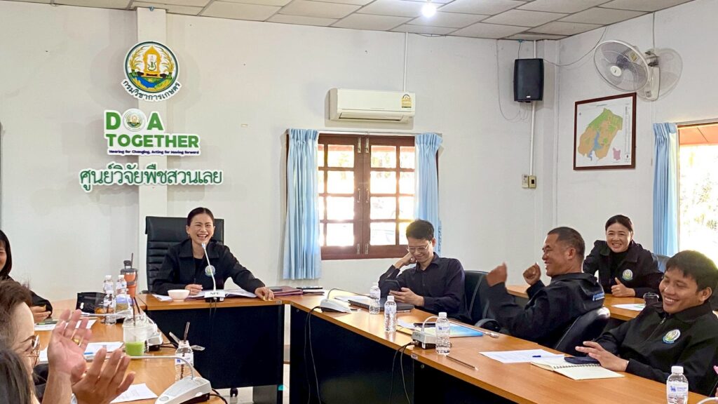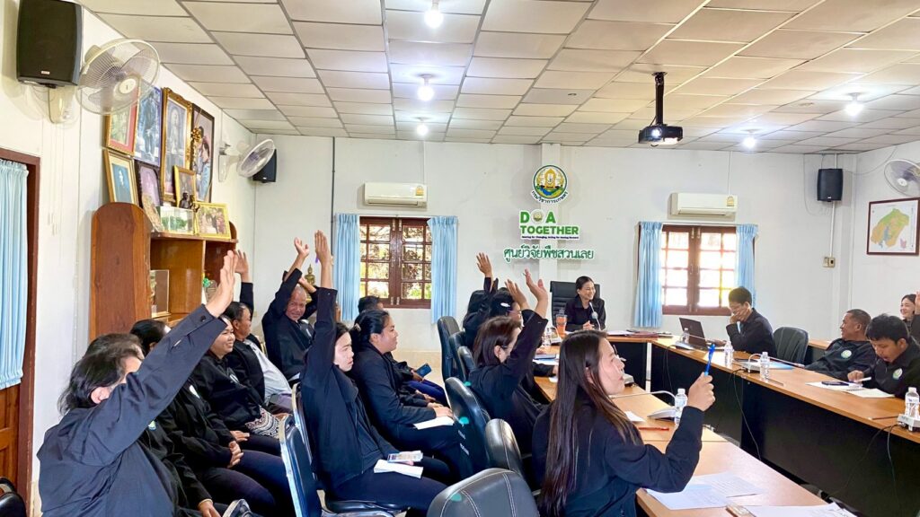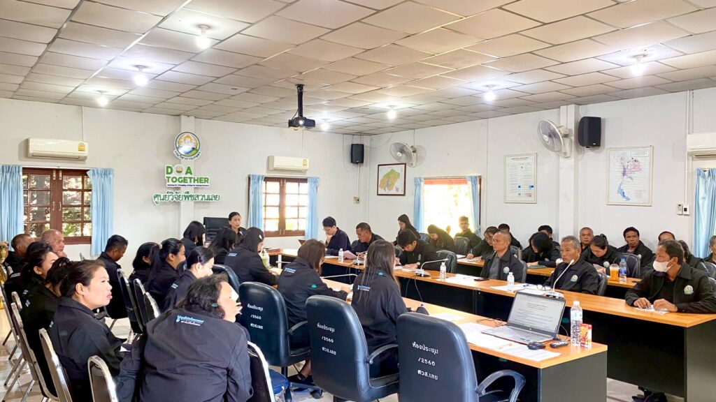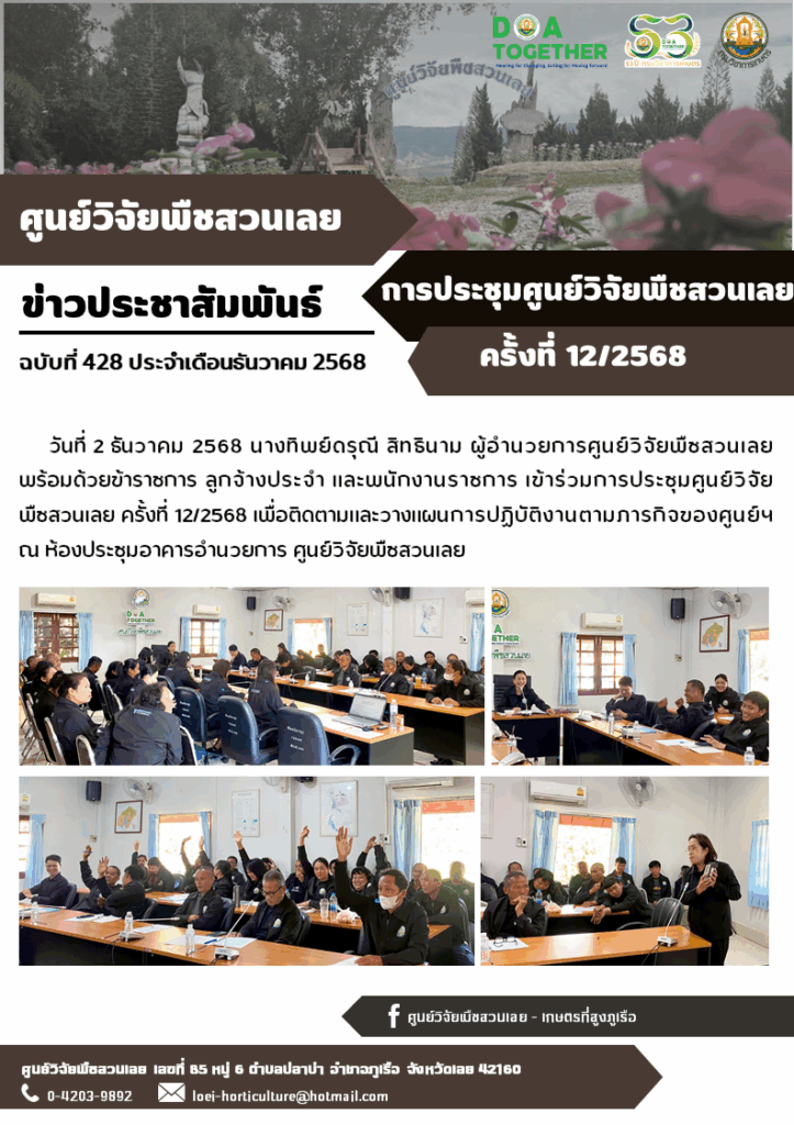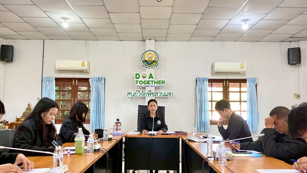 วันที่ 2 ธันวาคม 2568 นางทิพย์ดรุณี สิทธินาม ผู้อำนวยการศูนย์วิจัยพืชสวนเลย พร้อมด้วยข้าราชการ ลูกจ้างประจำ และพนักงานราชการ เข้าร่วมการประชุมศูนย์วิจัยพืชสวนเลย ครั้งที่ 12/2568 เพื่อติดตามและวางแผนการปฏิบัติงานตามภารกิจของศูนย์ฯ ณ ห้องประชุมอาคารอำนวยการ ศูนย์วิจัยพืชสวนเลย