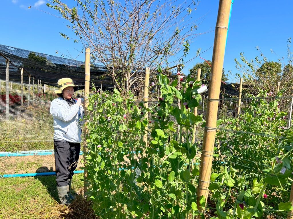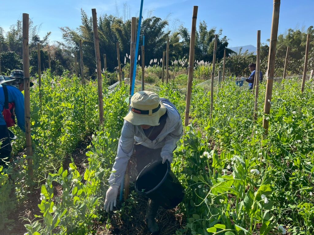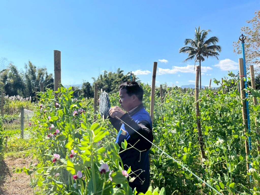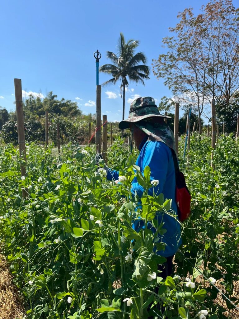 วันที่ 29 ธันวาคม 2568 นางสาวพรอนันต์ แข็งขันธ์ นักวิชาการเกษตรชำนาญการ และคณะ ได้รับมอบหมายจากผู้อำนวยการศูนย์วิจัยพืชสวนเลย ให้ปฏิบัติงานการทดลอง เรื่อง การทดสอบพันธุ์ถั่วลันเตาฝักสีเขียวและฝักสีม่วงในแหล่งปลูกที่มีศักยภาพในการผลิตเชิงการค้า โดยการทำค้างถั่วลันเตา ใส่ปุ๋ยเคมี เก็บเกี่ยวผลผลิต และบันทึกข้อมูลการเจริญเติบโต อายุการออกดอก และข้อมูลผลผลิต ณ แปลงเกษตรกรบ้านแสนสุข ตำบลสานตม อำเภอภูเรือ จังหวัดเลย