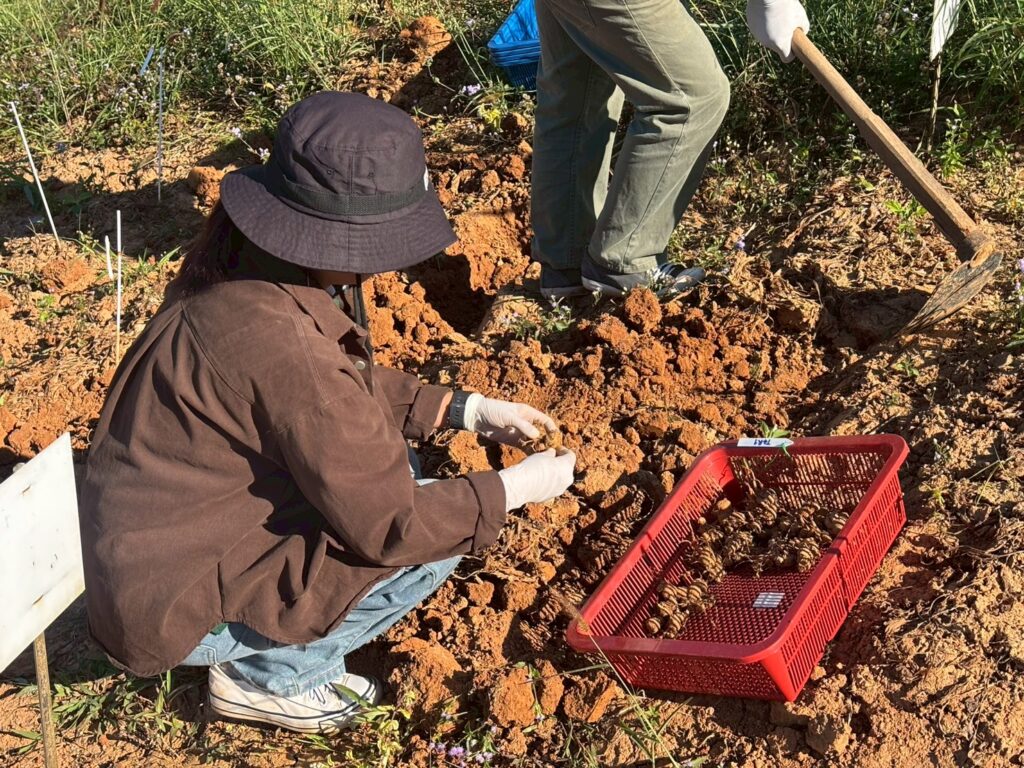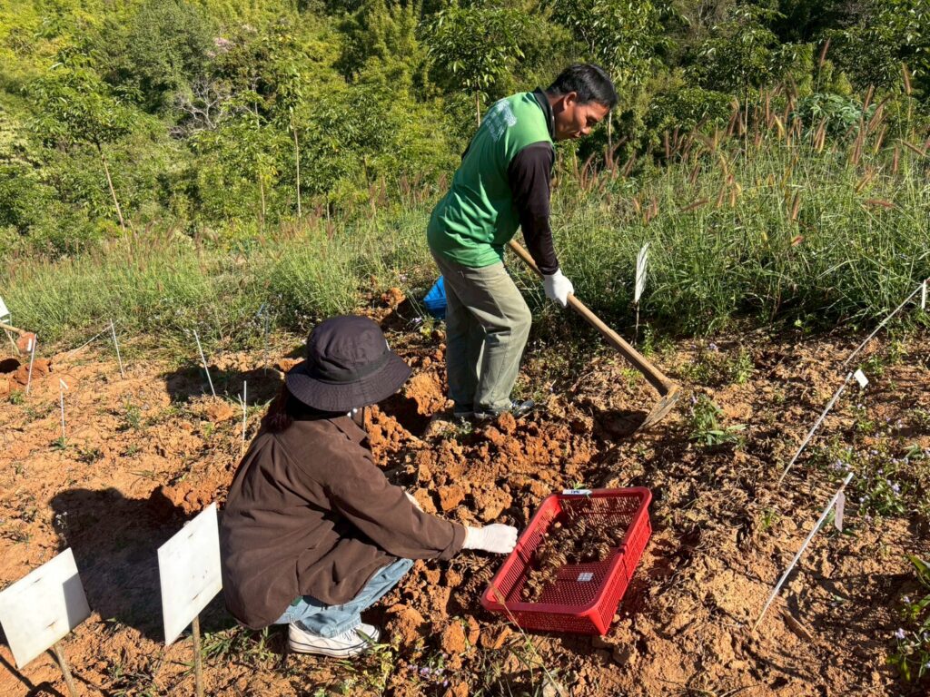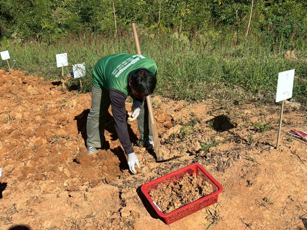 วันที่ 6 มกราคม 2569 นางสาวปฏิญญา มีบุญ นักวิชาการเกษตรปฏิบัติการ และคณะ ได้รับมอบหมายจากผู้อำนวยการศูนย์วิจัยพืชสวนเลย ให้ปฏิบัติงานการทดลอง เรื่อง การปลูกทดสอบกระชายดำในพื้นที่จังหวัดเลย โดยการเก็บเกี่ยวหัวพันธุ์กระชายดำ จำนวน 5 สายพันธุ์ และบันทึกข้อมูลผลผลิต ณ แปลงเกษตรกรบ้านโป่งกวาง ตำบลปลาบ่าอำเภอภูเรือ จังหวัดเลย