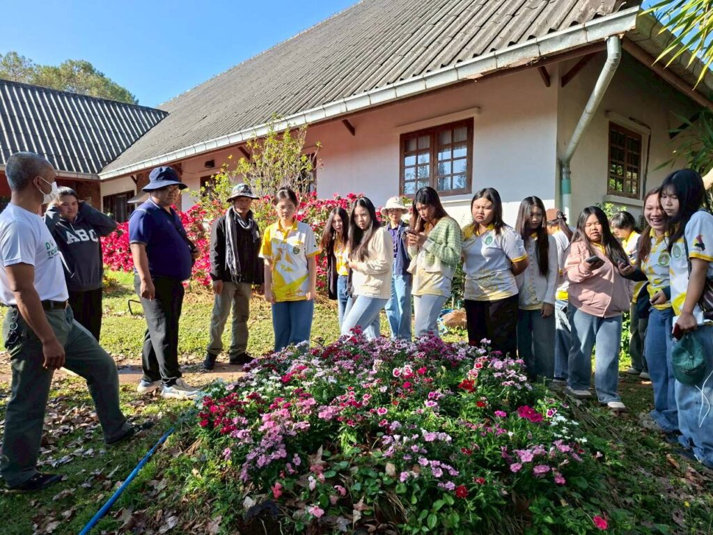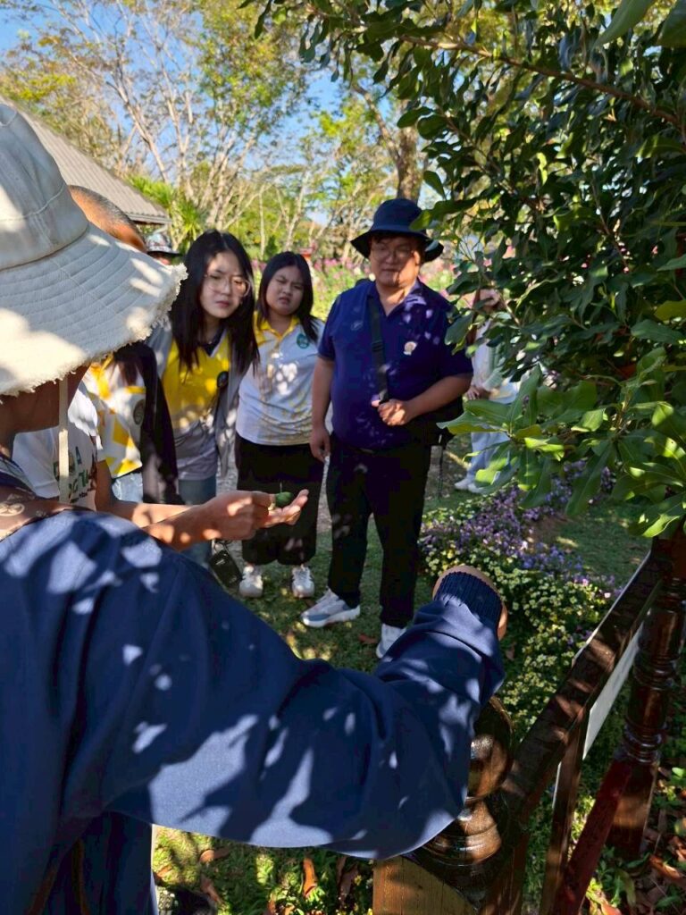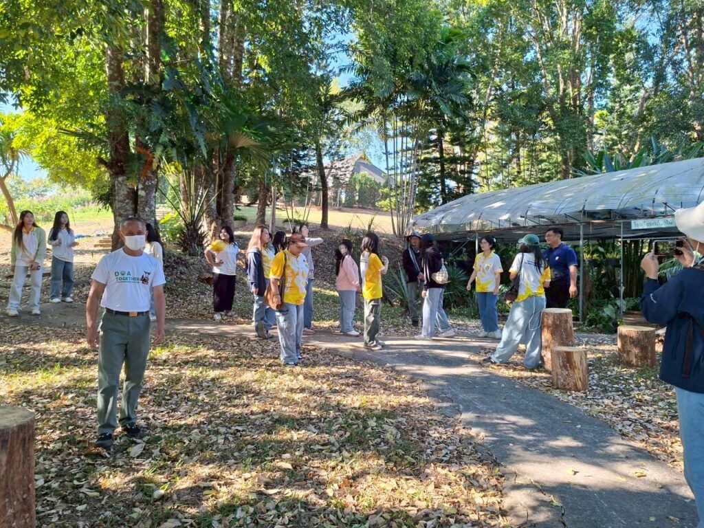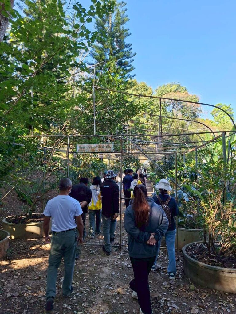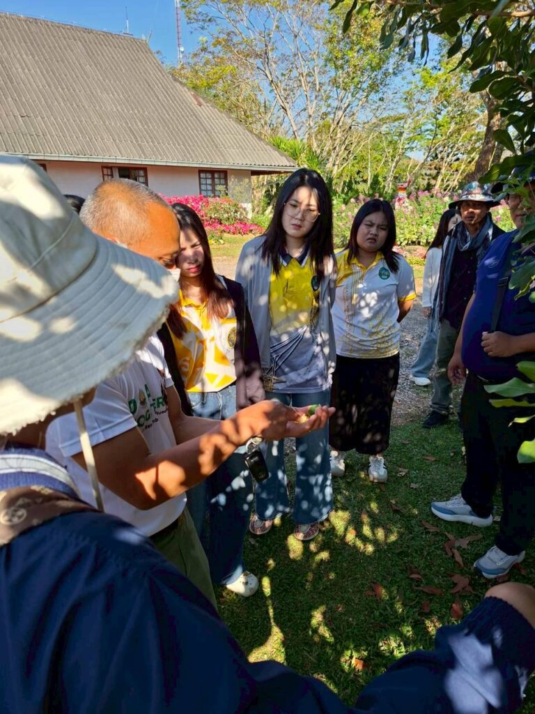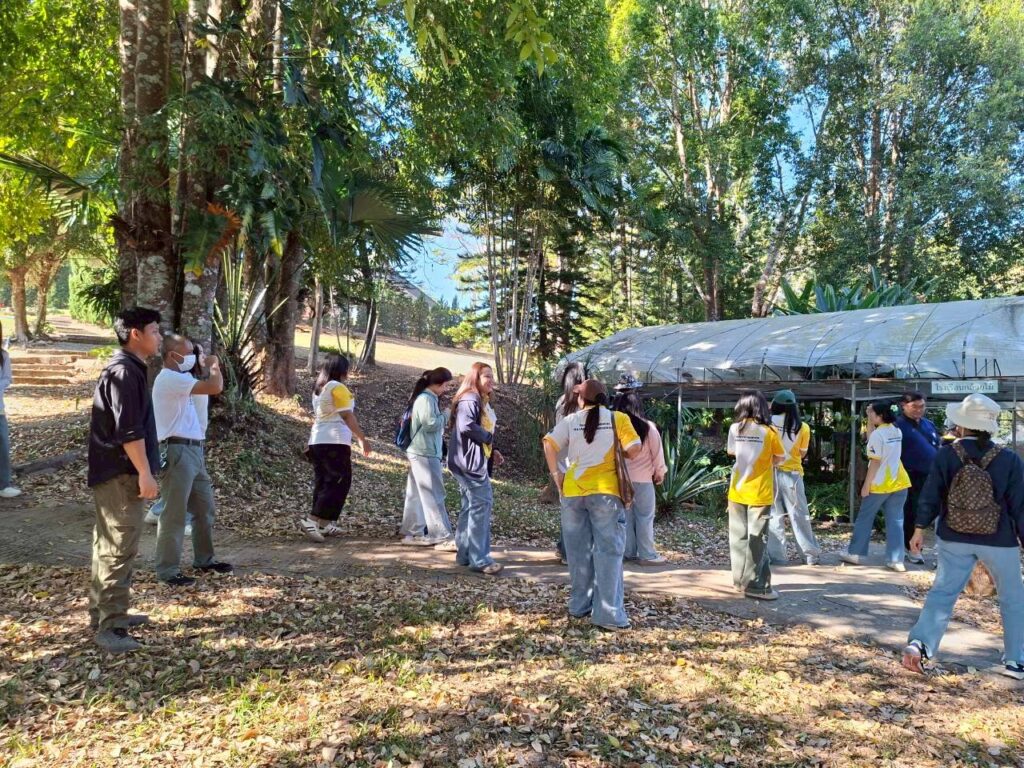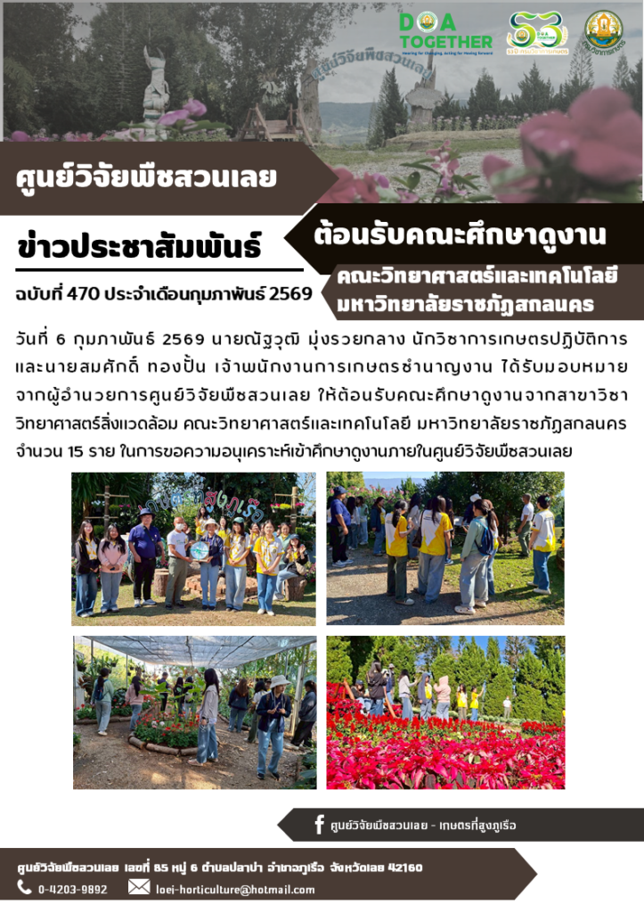 วันที่ 6 กุมภาพันธ์ 2569 นายณัฐวุฒิ มุ่งรวยกลาง นักวิชาการเกษตรปฏิบัติการ และนายสมศักดิ์ ทองปั้น เจ้าพนักงานการเกษตรชำนาญงาน ได้รับมอบหมายจากผู้อำนวยการศูนย์วิจัยพืชสวนเลย ให้ต้อนรับคณะศึกษาดูงานจากสาขาวิชาวิทยาศาสตร์สิ่งแวดล้อม คณะวิทยาศาสตร์และเทคโนโลยี มหาวิทยาลัยราชภัฏสกลนครจำนวน 15 ราย ในการขอความอนุเคราะห์เข้าศึกษาดูงานภายในศูนย์วิจัยพืชสวนเลย
