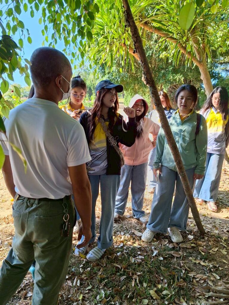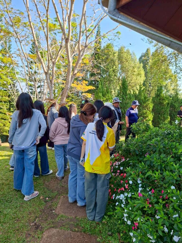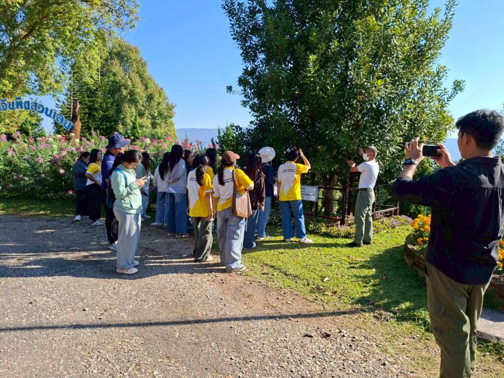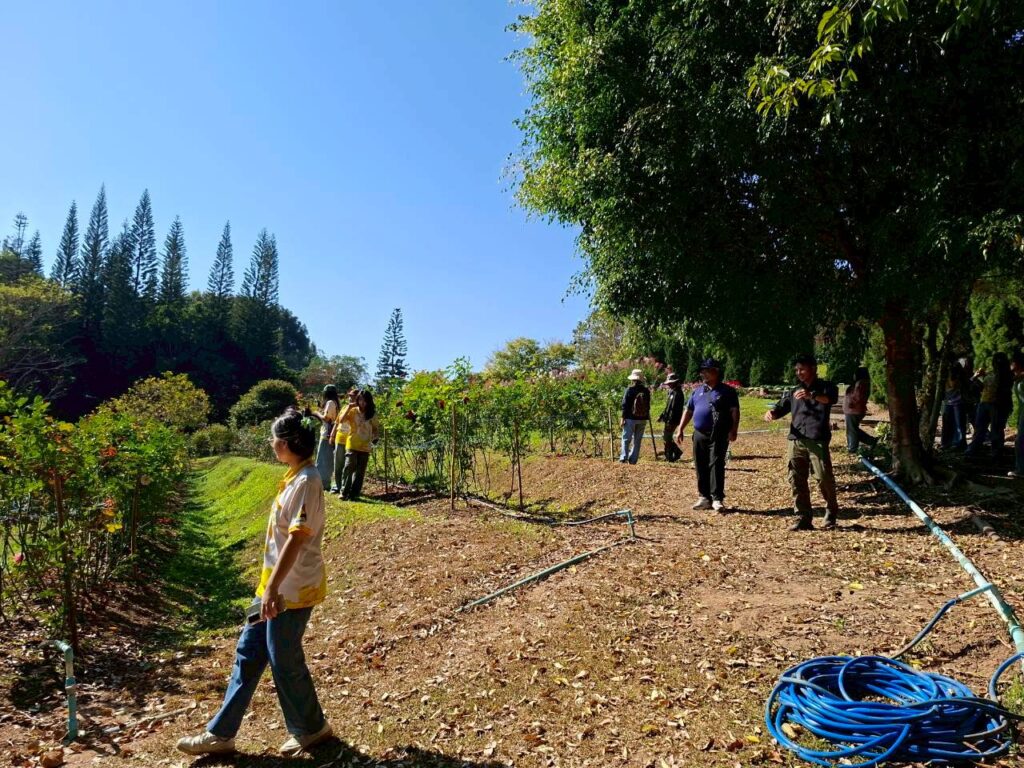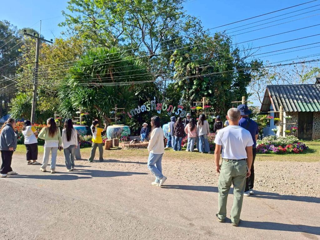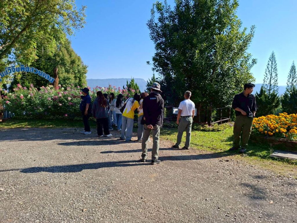 วันที่ 6 กุมภาพันธ์ 2569 นายณัฐวุฒิ มุ่งรวยกลาง นักวิชาการเกษตรปฏิบัติการ และนายสมศักดิ์ ทองปั้น เจ้าพนักงานการเกษตรชำนาญงาน ได้รับมอบหมายจากผู้อำนวยการศูนย์วิจัยพืชสวนเลย ให้ต้อนรับคณะศึกษาดูงานจากสาขาวิชาวิทยาศาสตร์สิ่งแวดล้อม คณะวิทยาศาสตร์และเทคโนโลยี มหาวิทยาลัยราชภัฏสกลนครจำนวน 15 ราย ในการขอความอนุเคราะห์เข้าศึกษาดูงานภายในศูนย์วิจัยพืชสวนเลย