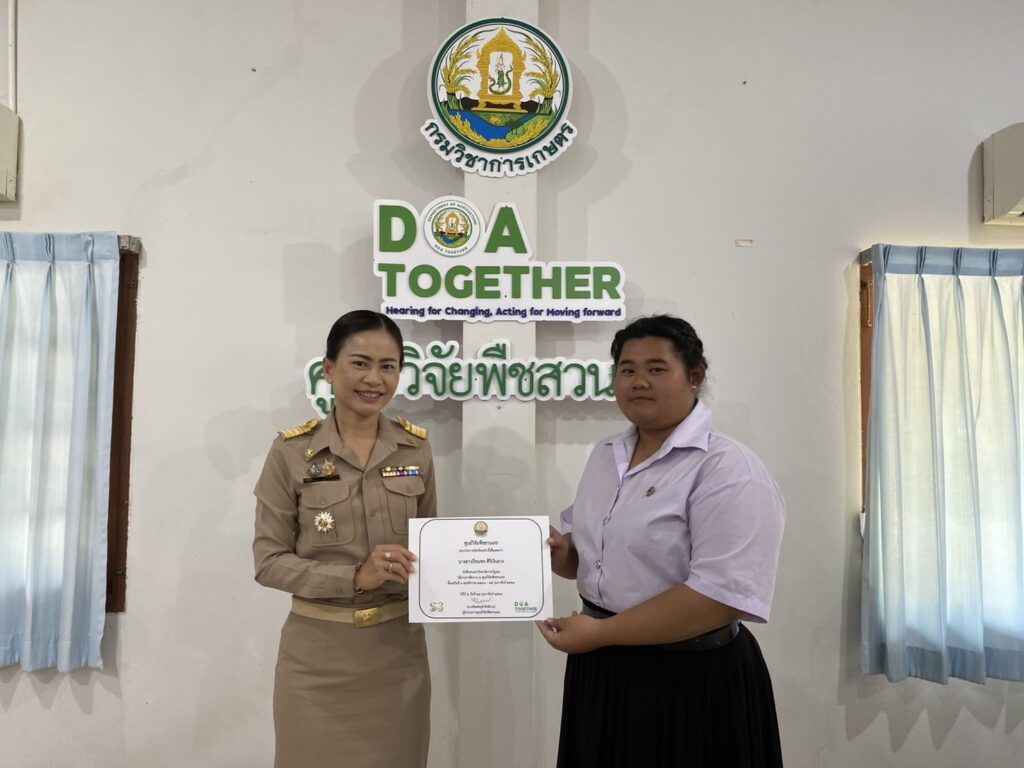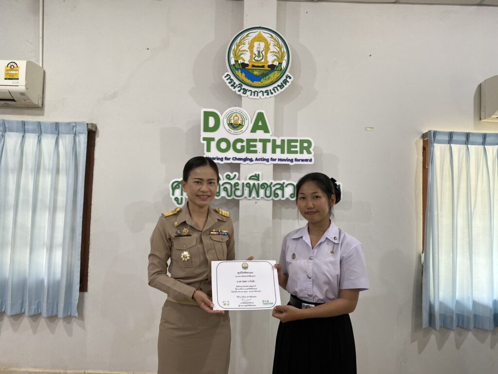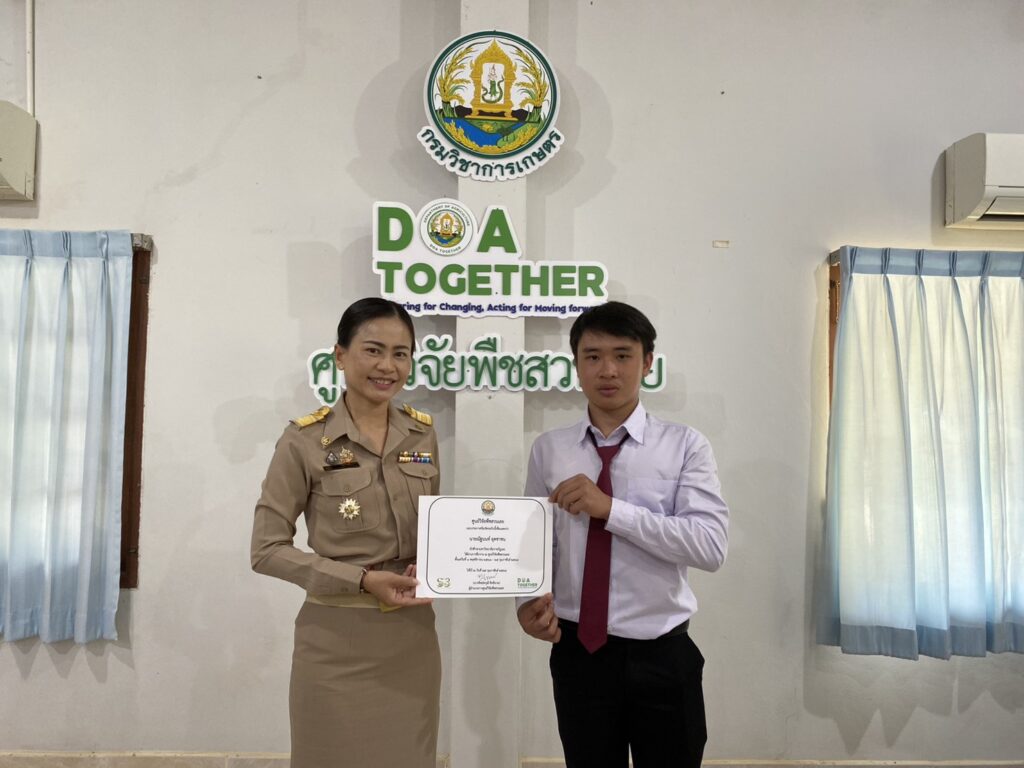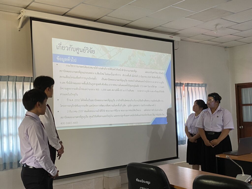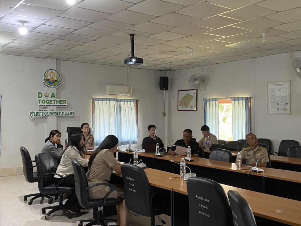 วันที่ 23 กุมภาพันธ์ 2569 นางทิพย์ดรุณี สิทธินาม ผู้อำนวยการศูนย์วิจัยพืชสวนเลย พร้อมด้วยข้าราชการของศูนย์ฯ เข้าร่วมการปัจฉิมนิเทศนักศึกษาฝึกประสบการณ์วิชาชีพ 2 มหาวิทยาลัย ได้แก่ มหาวิทยาลัยราชภัฏอุดรธานี จำนวน 2 ราย และมหาวิทยาลัยราชภัฏเลย จำนวน 4 ราย โดยได้ร่วมรับฟังและให้ข้อเสนอแนะ ในการรายงานผลการฝึกประสบการณ์วิชาชีพ พร้อมทั้งมอบใบประกาศนียบัตรให้นักศึกษา ณ ห้องประชุมอาคารอำนวยการ ศูนย์วิจัยพืชสวนเลย