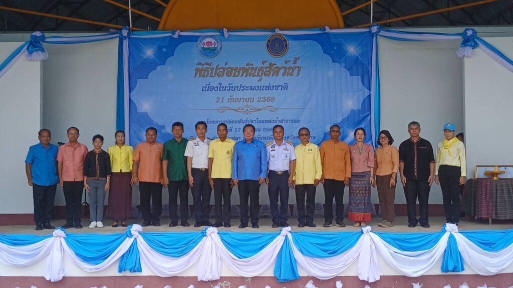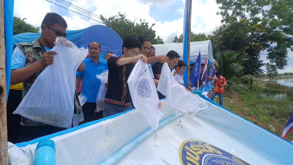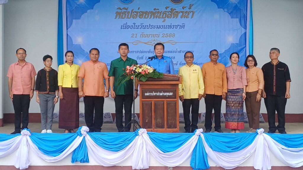วันที่ 17 กันยายน 2568 นางจีรภา ออสติน ผู้อำนวยการศูนย์วิจัยพืชสวนศรีสะเกษ มอบหมายให้ นางสาวณัฐวดี ศรีวัฒนทรัพย์ หัวหน้าฝ่ายบริหารทั่วไป และเจ้าหน้าที่ ร่วมพิธีปล่อยพันธุ์สัตว์น้ำเนื่องในวันประมงแห่งชาติ ประจำปี 2568 โดยมี นายธาตรี สิริรุ่งวนิช รองผู้ว่าราชการจังหวัดศรีสะเกษ เป็นประธานในพิธี ในการนี้ ได้ร่วมปล่อยพันธุ์ปลาสร้อยขาว และปลาตะเพียนทอง จำนวน 200,000 ตัว ณ บึงระนาม บ้านนารังกาใต้ หมู่ที่ 15 ตำบลกุดเสลา อำเภอกันทรลักษ์ จังหวัดศรีสะเกษ