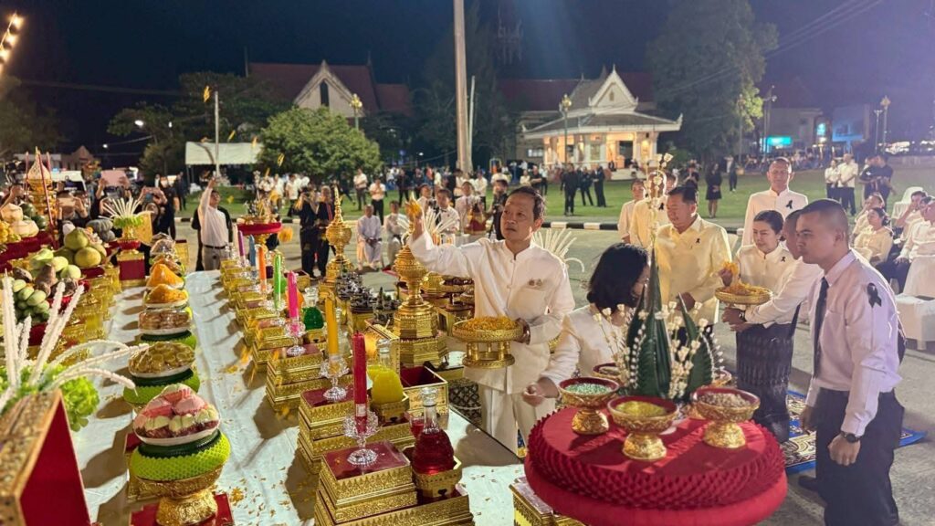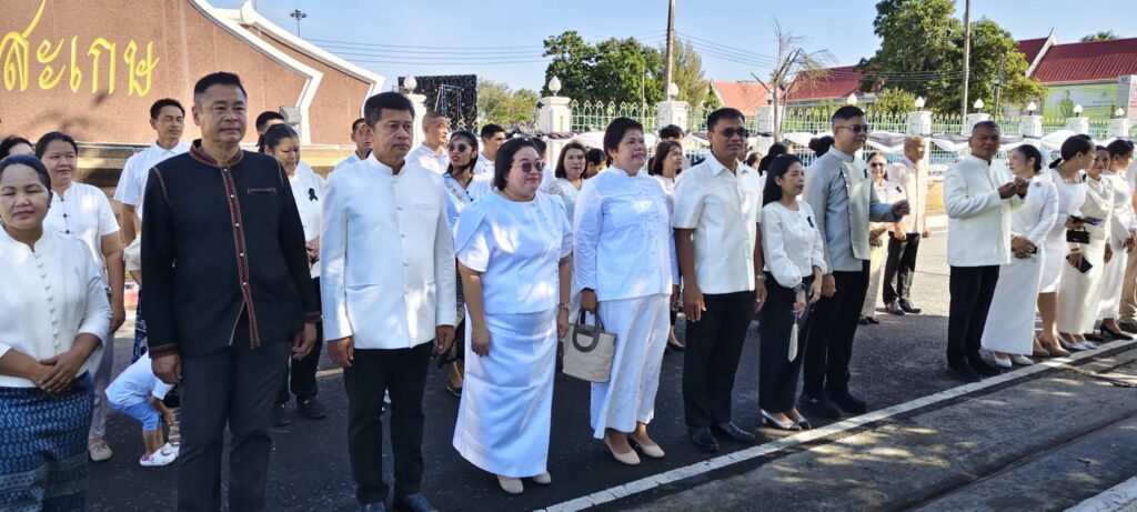 วันที่ 18 พฤศจิกายน 2568 นางจีรภา ออสติน ผู้อำนวยการศูนย์วิจัยพืชสวนศรีสะเกษ พร้อมด้วย เจ้าหน้าที่ศูนย์ฯ ร่วมกิจกรรมเนื่องในงานเฉลิมฉลอง 243 ปี จังหวัดศรีสะเกษ “สู่ขวัญบ้าน บายศรีเมือง รุ่งเรือง 243 ปี จังหวัดศรีสะเกษ” ดังนี้ เวลา 09.09 น. ร่วมพิธีสักการะสิ่งศักดิ์สิทธิ์ โดยมี พลตำรวจตรี ศุภชัย ศักรินพานิชกุล ผู้บังคับการตำรวจภูธรจังหวัดศรีสะเกษ เป็นประธานในพิธี ณ ต้นโพธิ์ หน้าศาลากลางจังหวัดศรีสะเกษ เวลา 17.30 น. พิธีสู่ขวัญบ้าน บายศรีเมือง รุ่งเรือง 243 ปี จังหวัดศรีสะเกษ และ เวลา 18.00 น. พิธีสวดพระพุทธมนต์ ถวายพระราชกุศล สมเด็จพระนางเจ้าสิริกิติ์ พระบรมราชินีนาถ พระบรมราชชนนีพันปีหลวง “รวมพลังแห่งความจงรักภักดี” โดยมีนายอนุรัตน์ ธรรมประจำจิต ผู้ว่าราชการจังหวัดศรีสะเกษ เป็นประธานในพิธี ณ สนามหน้าศาลากลางจังหวัดศรีสะเกษ อำเภอเมืองศรีสะเกษ จังหวัดศรีสะเกษ