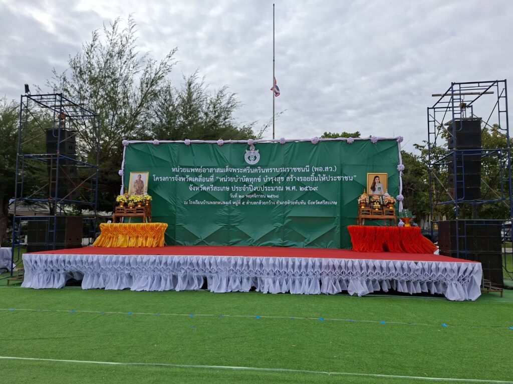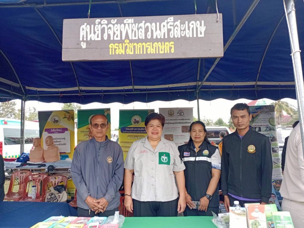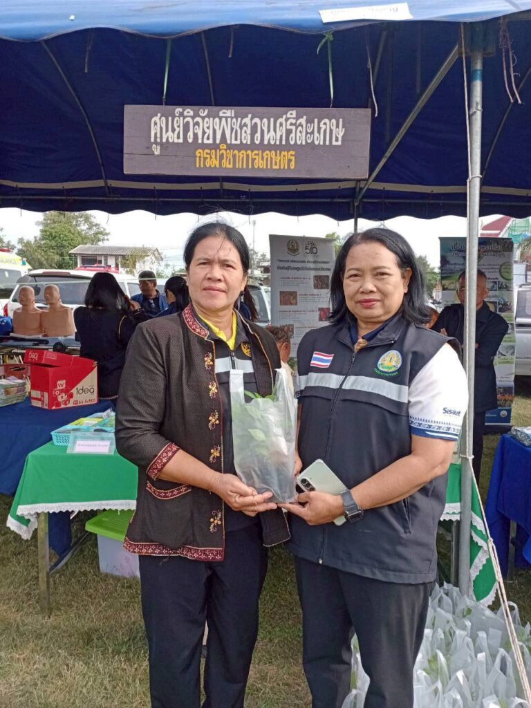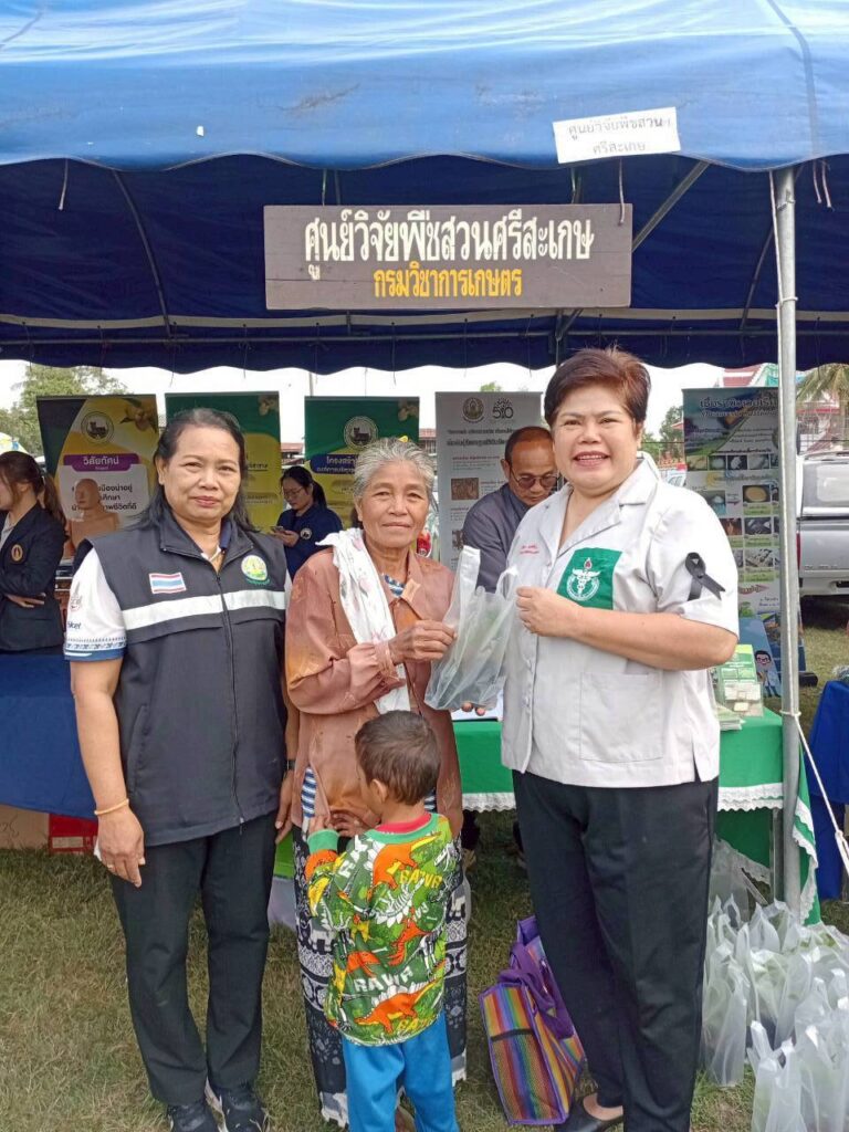 วันที่ 20 พฤศจิกายน 2568 นางจีรภา ออสติน ผู้อำนวยการศูนย์วิจัยพืชสวนศรีสะเกษ และเจ้าหน้าที่ศูนย์ฯ ร่วมกิจกรรมหน่วยแพทย์อาสาสมเด็จพระศรีนครินทราบรมราชชนนี (พอ.สว.) โครงการจังหวัดเคลื่อนที่ “หน่วยบำบัดทุกข์ บำรุงสุข สร้างรอยยิ้มให้ประชาชน” จังหวัดศรีสะเกษ ประจำปีงบประมาณ พ.ศ. 2569 โดยมี นายอนุรัตน์ ธรรมประจำจิต ผู้ว่าราชการจังหวัดศรีสะเกษ เป็นประธานในพิธี ณ โรงเรียนบ้านพอกหนองแข้ หมู่ที่ 5 ตำบลกล้วยกว้าง อำเภอห้วยทับทัน จังหวัดศรีสะเกษ ในการนี้ ศูนย์ฯ ได้ร่วมจัดนิทรรศการ แจกแผ่นพับความรู้ ให้บริการตอบปัญหาด้านพืช และแจกต้นกล้าพันธุ์พริกและมะเขือเปราะ จำนวน 200 ต้น