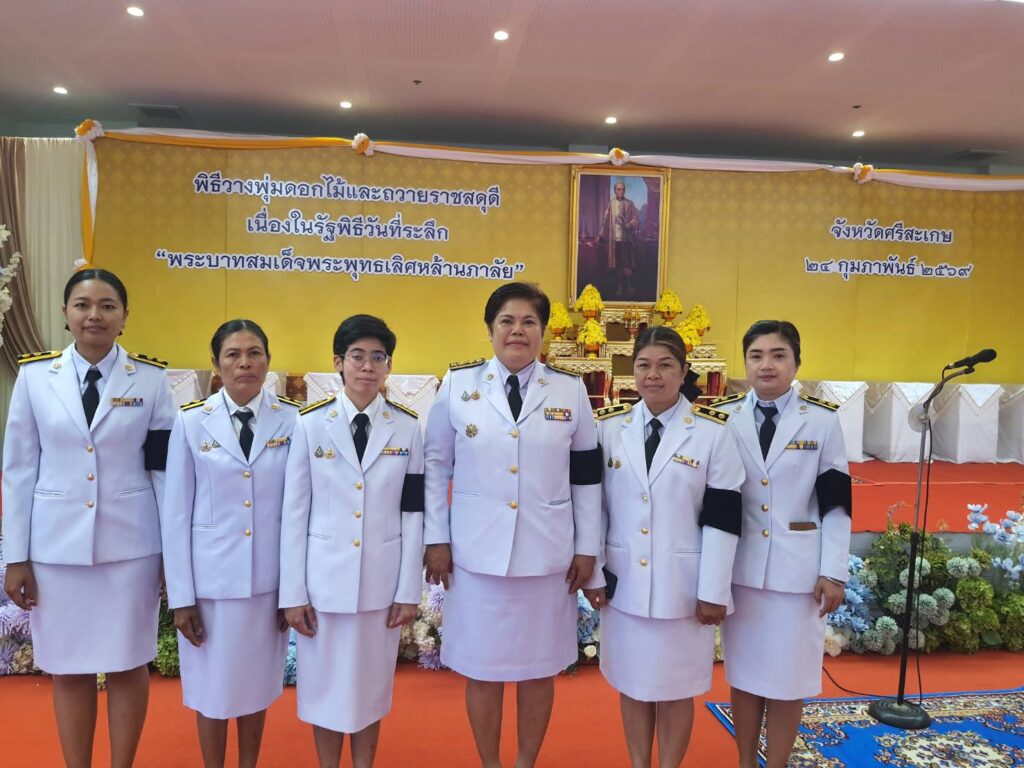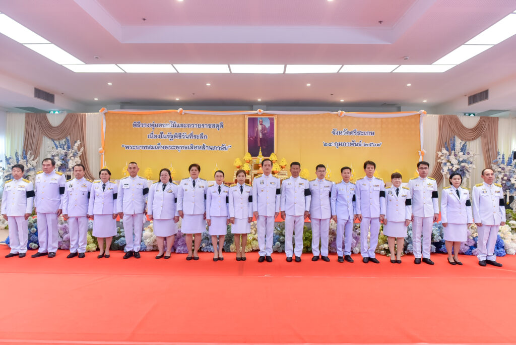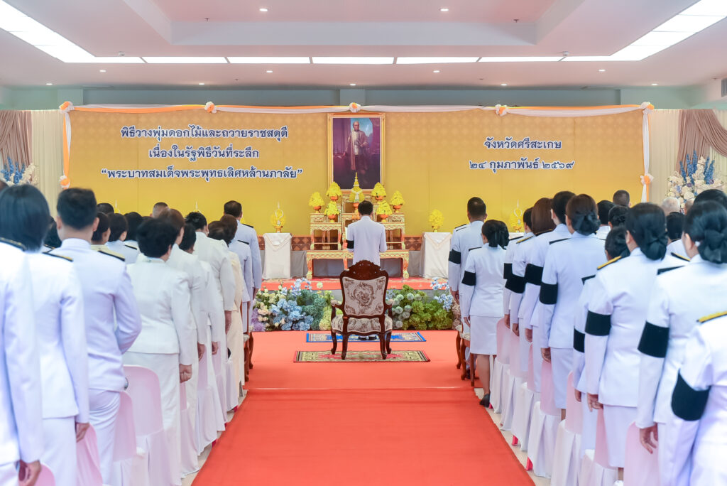วันที่ 24 กุมภาพันธ์ 2569 เวลา 08.00 น. นางจีรภา ออสติน ผู้อำนวยการศูนย์วิจัยพืชสวนศรีสะเกษ และเจ้าหน้าที่ ร่วมพิธีวางพุ่มดอกไม้และถวายราชสดุดี เนื่องในงานรัฐพิธีวันที่ระลึกพระบาทสมเด็จพระพุทธเลิศหล้านภาลัย โดยมี นายอนุรัตน์ ธรรมประจำจิต ผู้ว่าราชการจังหวัดศรีสะเกษ เป็นประธานในพิธี ณ ห้องประชุมชั้น 5 อาคารเทพา ศาลากลางจังหวัดศรีสะเกษ อำเภอเมืองศรีสะเกษ จังหวัดศรีสะเกษ