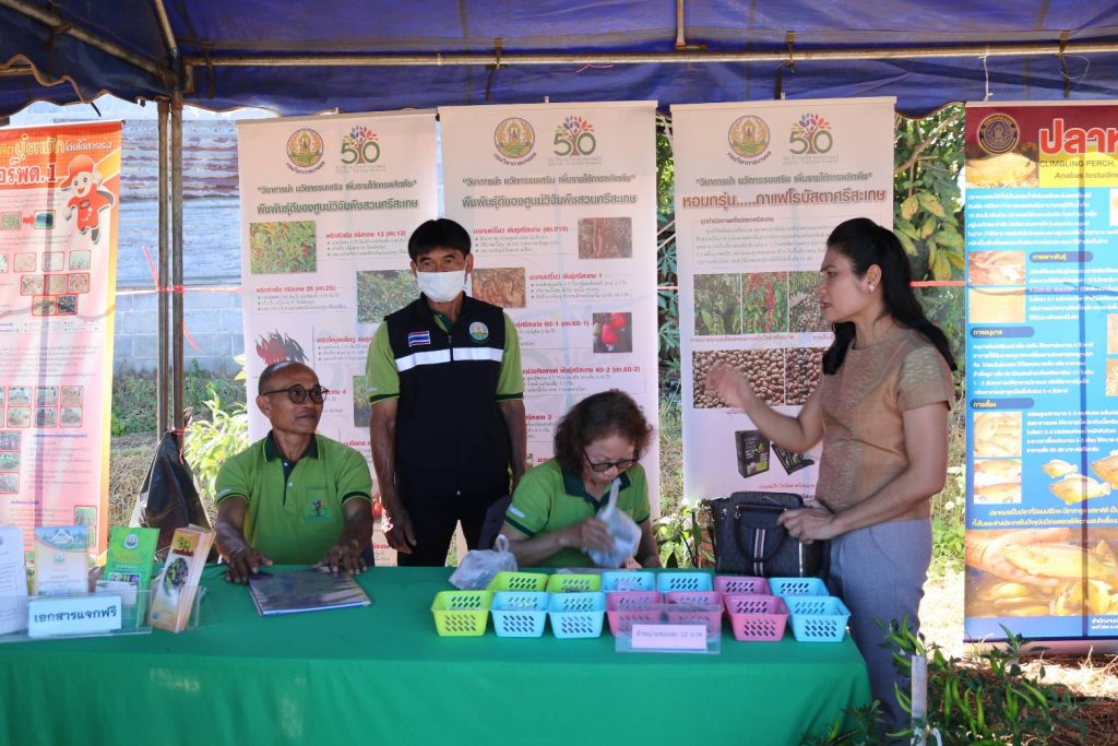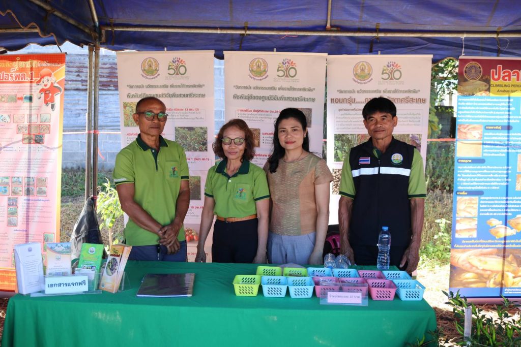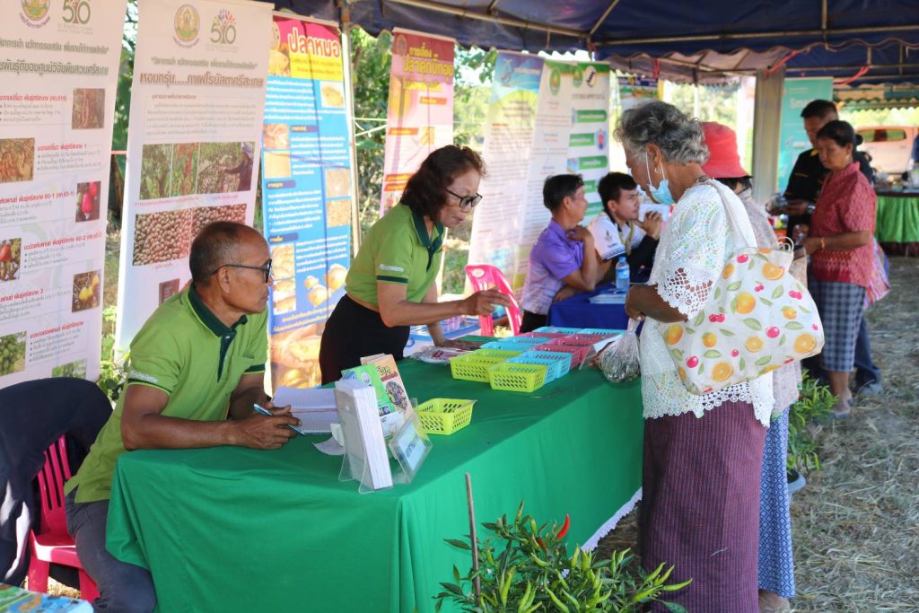 วันที่ 20 ธันวาคม 2566 เวลา 10.00 น. นางจีรภา ออสติน ผู้อำนวยการศูนย์วิจัยพืชสวนศรีสะเกษ และเจ้าหน้าที่ ร่วมเป็นเกียรติในงานวันถ่ายทอดเทคโนโลยีเพื่อเริ่มต้นเข้าสู่ฤดูกาลผลิตใหม่ (Fieldy Day) ครั้งที่1/2567 และร่วมจัดนิทรรศการ พร้อมทั้งแจกแผ่นพับประชาสัมพันธ์ความรู้ด้านพืช ณ เครือข่ายศูนย์เรียนรู้การเพิ่มประสิทธิภาพการผลิตสินค้าเกษตร (เครือข่าย ศพก.) บ้านกระแชงใหญ่ หมู่ที่ 18 ตำบลกระแชงใหญ่ อำเภอกันทรลักษ์ จังหวัดศรีสะเกษ โดยมี นายอนุพงศ์ สุขสมนิตย์ ผู้ว่าราชการจังหวัดศรีสะเกษ เป็นประธานในพิธี