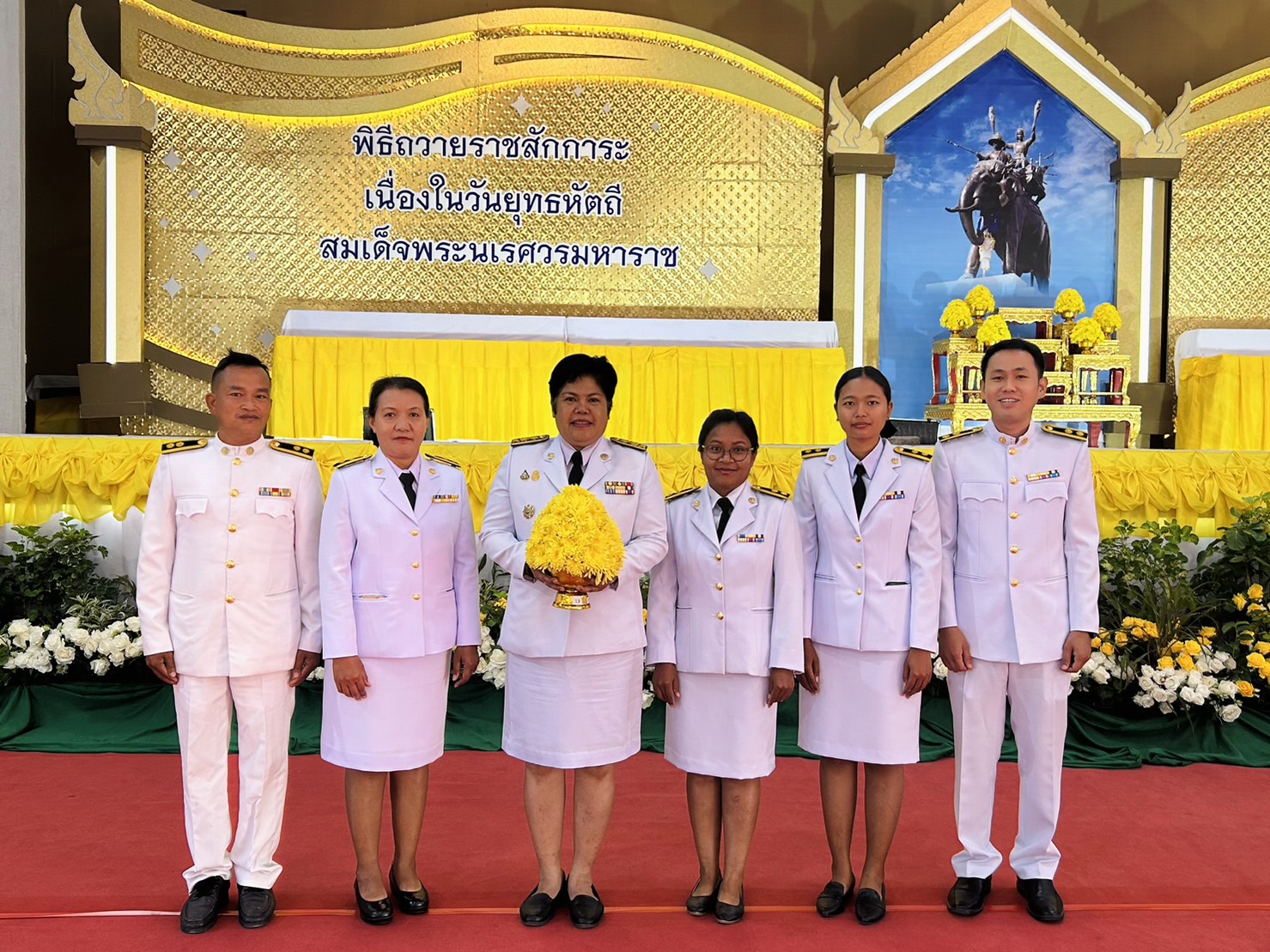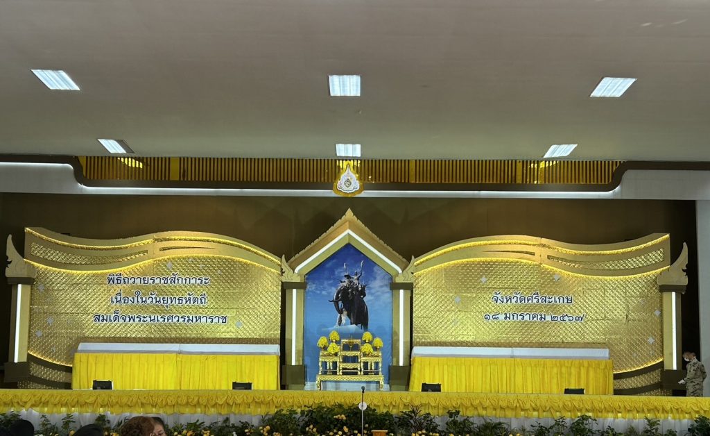วันที่ 18 มกราคม 2567 เวลา 07.30 น. นางจีรภา ออสติน ผู้อำนวยการศูนย์วิจัยพืชสวนศรีสะเกษ พร้อมด้วยเจ้าหน้าที่ ร่วมวางพานพุ่มดอกไม้ถวายราชสักการะ เนื่องในวันยุทธหัตถี สมเด็จพระนเรศวรมหาราช ณ อาคารเฉลิมพระเกียรติฉลองสิริราชสมบัติครบ 60 ปี จังหวัดศรีสะเกษ