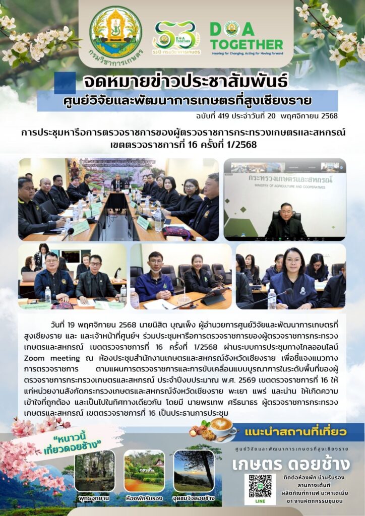 ข่าวประชาสัมพันธ์ ประชุมคณะทำงานขับเคลื่อนโครงการพัฒนาสมุนไพรระดับจังหวัดเชียงราย ครั้งที่ 1/256821 พฤศจิกายน 256821 พฤศจิกายน 2025