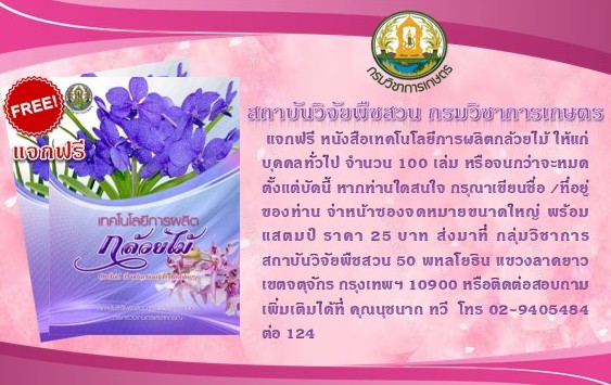 ข่าวประชาสัมพันธ์ แจกฟรี หนังสือเทคโนโลยีการผลิตกล้วยไม้ (Orchid Production Technology) จำนวน 100 เล่ม16 กรกฎาคม 256311 สิงหาคม 2020