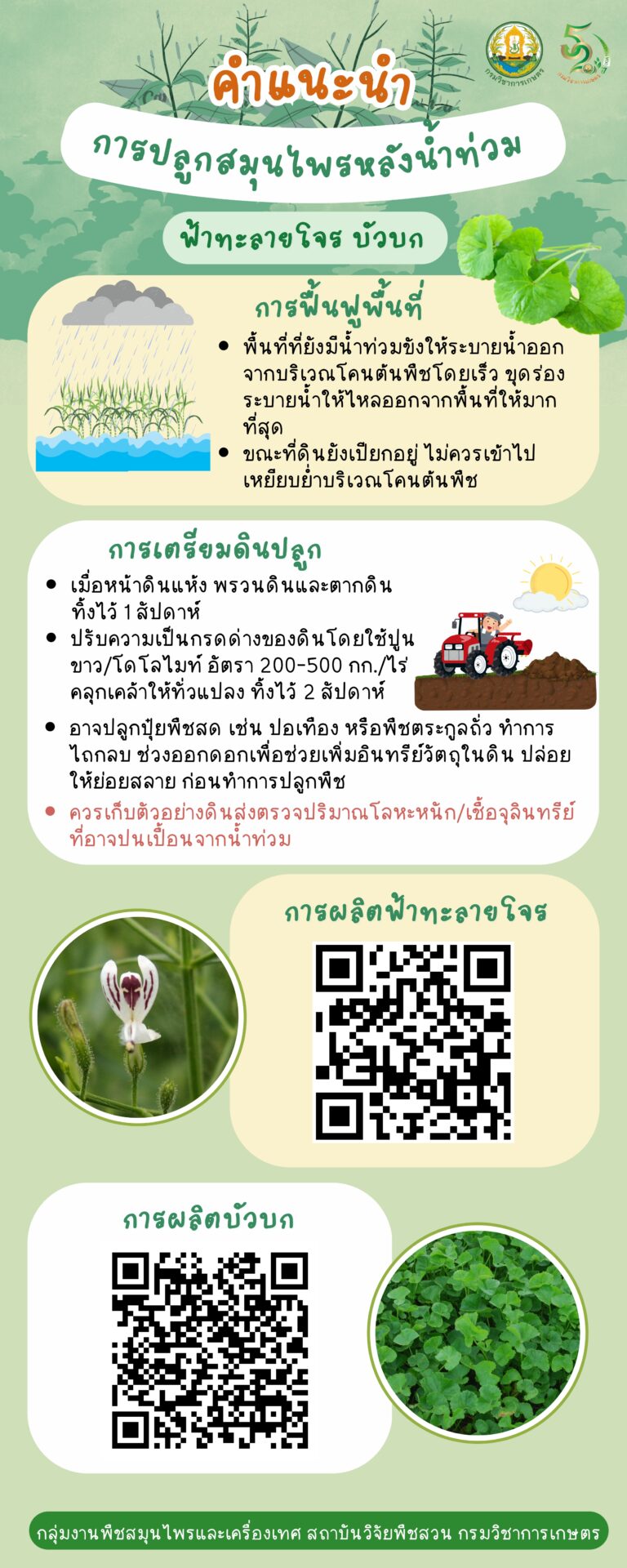 คำแนะนำการผลิตสมุนไพรหลังน้ำท่วม กลุ่มใช้ใบ