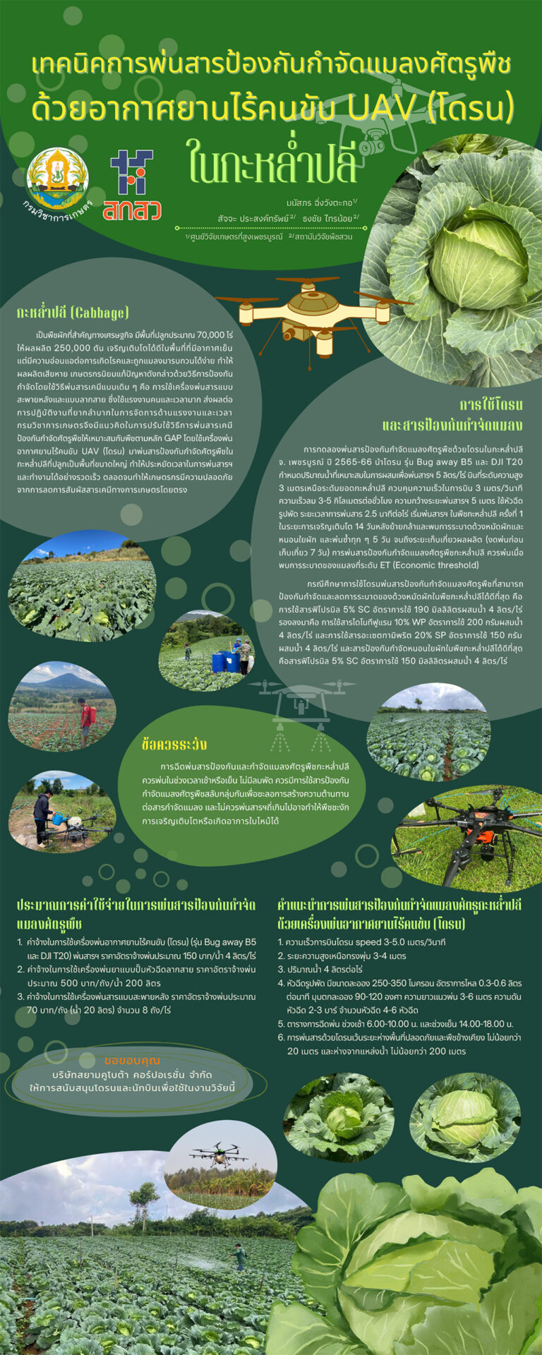 โปสเตอร์ เทคนิคการพ่นสารป้องกันกำจัดแมลงศัตรูพืชด้วยอากาศยานไร้คนขับ UAV (โดรน)ในกะหล่ำปลี27 กุมภาพันธ์ 25674 มีนาคม 2024