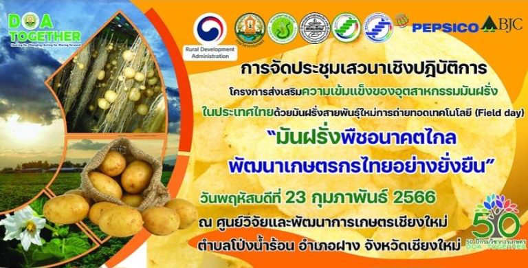ข่าวประชาสัมพันธ์ เชิญร่วมงาน!! ถ่ายทอดเทคโนโลยี Field Day “มันฝรั่งเสริมสร้างความเข้มแข็งให้เกษตรกรไทยเพื่อการพัฒนาอย่างยั่งยืน”9 กุมภาพันธ์ 25669 กุมภาพันธ์ 2023