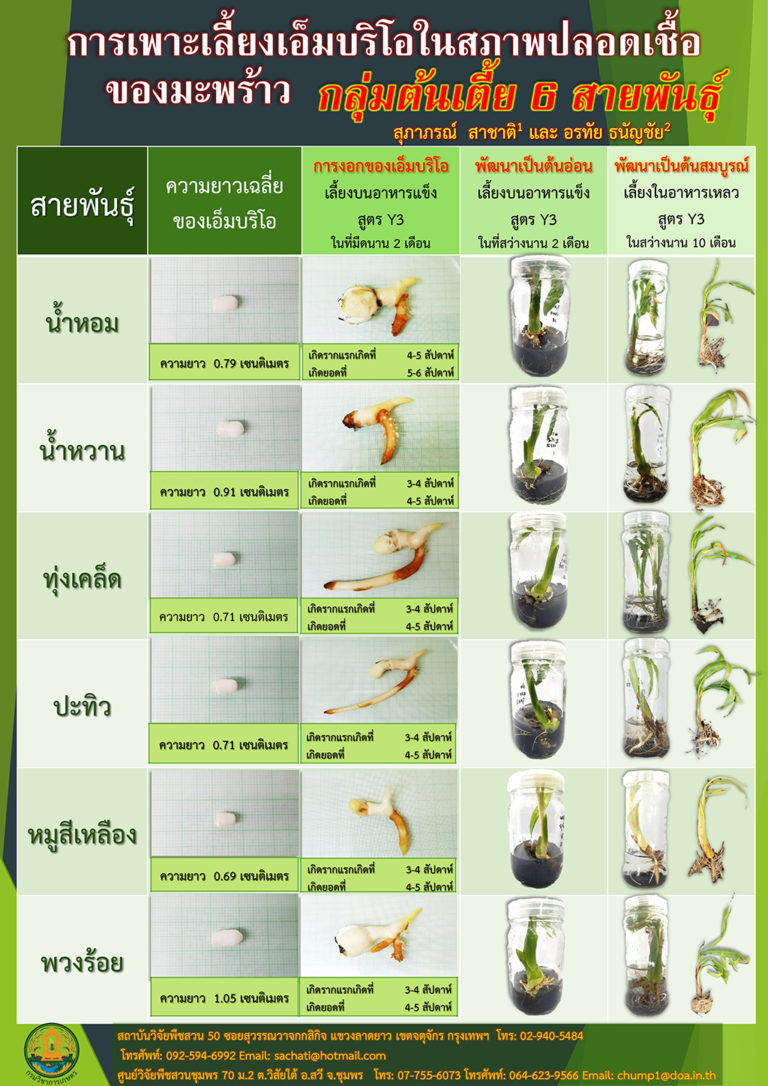 โปสเตอร์ การเพาะเลี้ยงเอ็มบริโอในสภาพปลอดเชื้อของมะพร้าวกลุ่มต้นเตี้ย 6 สายพันธุ์24 มกราคม 256624 มกราคม 2023