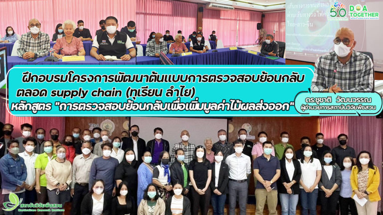 ข่าวกิจกรรม การฝึกอบรมโครงการพัฒนาต้นแบบการตรวจสอบย้อนกลับตลอด supply chain (ทุเรียน ลำไย) หลักสูตร “การตรวจสอบย้อนกลับเพื่อเพิ่มมูลค่าไม้ผลส่งออก”28 ธันวาคม 256528 ธันวาคม 2022