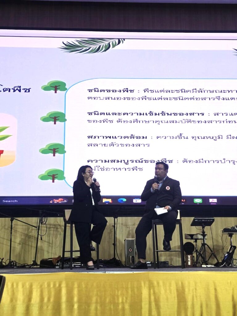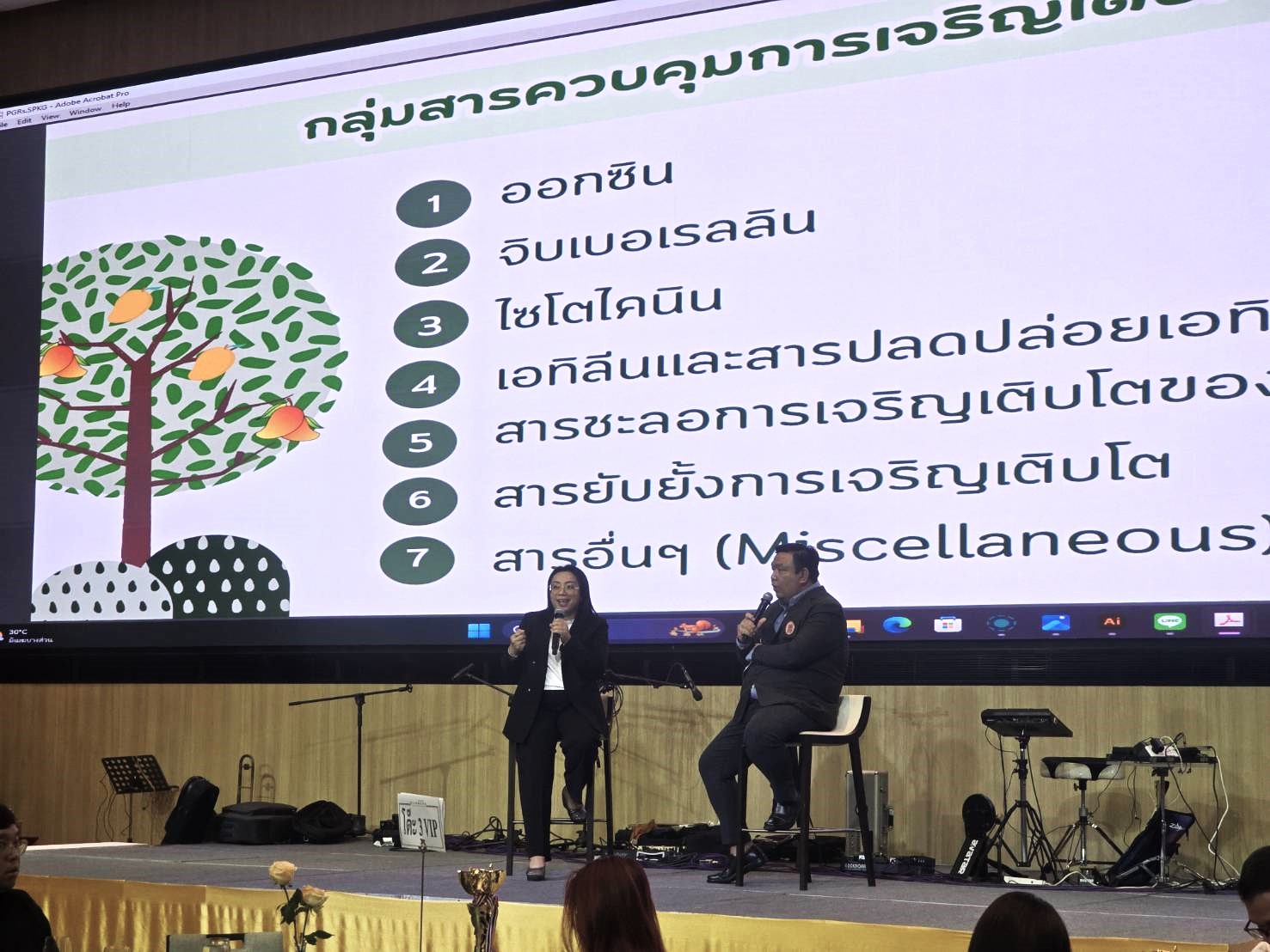 ข่าวกิจกรรม ธ.ค. 19 2568 สถาบันวิจัยพืชสวน ร่วมเสวนากับบริษัท เอส พี เค จี จำกัด ให้ความรู้และสร้างความเข้าใจการใช้สารควบคุมการเจริญเติบโตของพืช เมื่อวันที่ 17 ธันวาคม 2568 นางสาวกาญจนา ทองนะ ผู้อำนวยการสถาบันวิจัยพืชสวน มอบหมายให้ ดร.ปาริชาติ พจนศิลป์ หัวหน้างานวิจัยพืชผัก ร่วมเป็นวิทยากรบรรยายให้ความรู้และสร้างความเข้าใจเกี่ยวกับการใช้สารควบคุมการเจริญเติบโตของพืช เพื่อเพิ่มประสิทธิภาพการผลิตและความปลอดภัยทางการเกษตร การบรรยายดังกล่าวจัดขึ้น ณ ห้อง Diamond Ballroom ชั้น 4 โรงแรมแกรนด์ริชมอนด์ ถนนรัตนาธิเบศร์ จังหวัดนนทบุรี โดย ดร.จงกรม ศรีพงษ์พันธุ์กุล กรรมการผู้จัดการ บริษัท เอส พี เค จี จำกัด (S P K G CO.,LTD) เป็นผู้จัดงาน มีเจ้าหน้าที่ของบริษัท ผู้ประกอบการเคมีเกษตร และผู้ที่เกี่ยวข้องเข้าร่วมรับฟัง Admin Thittayaphon 0 Comments