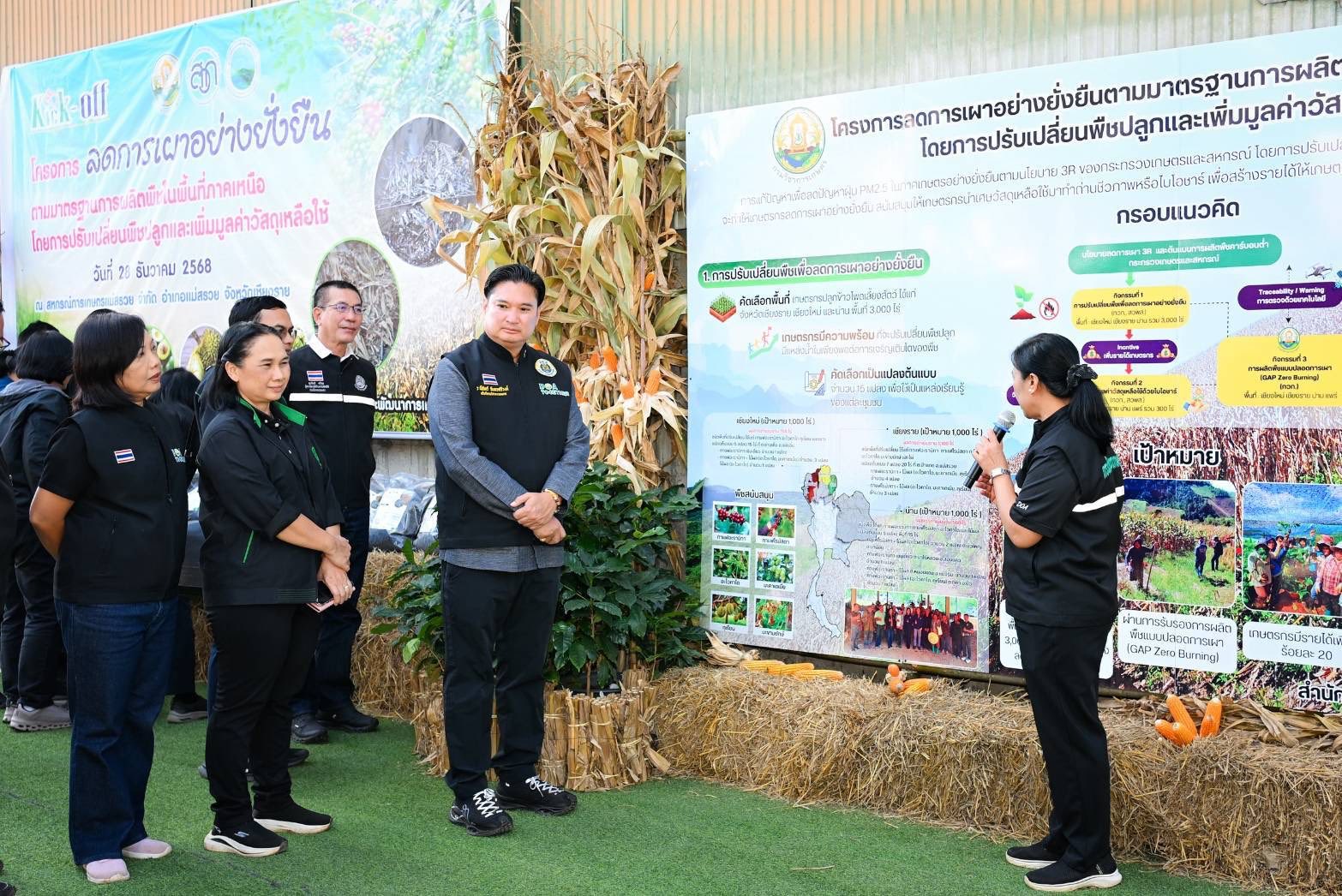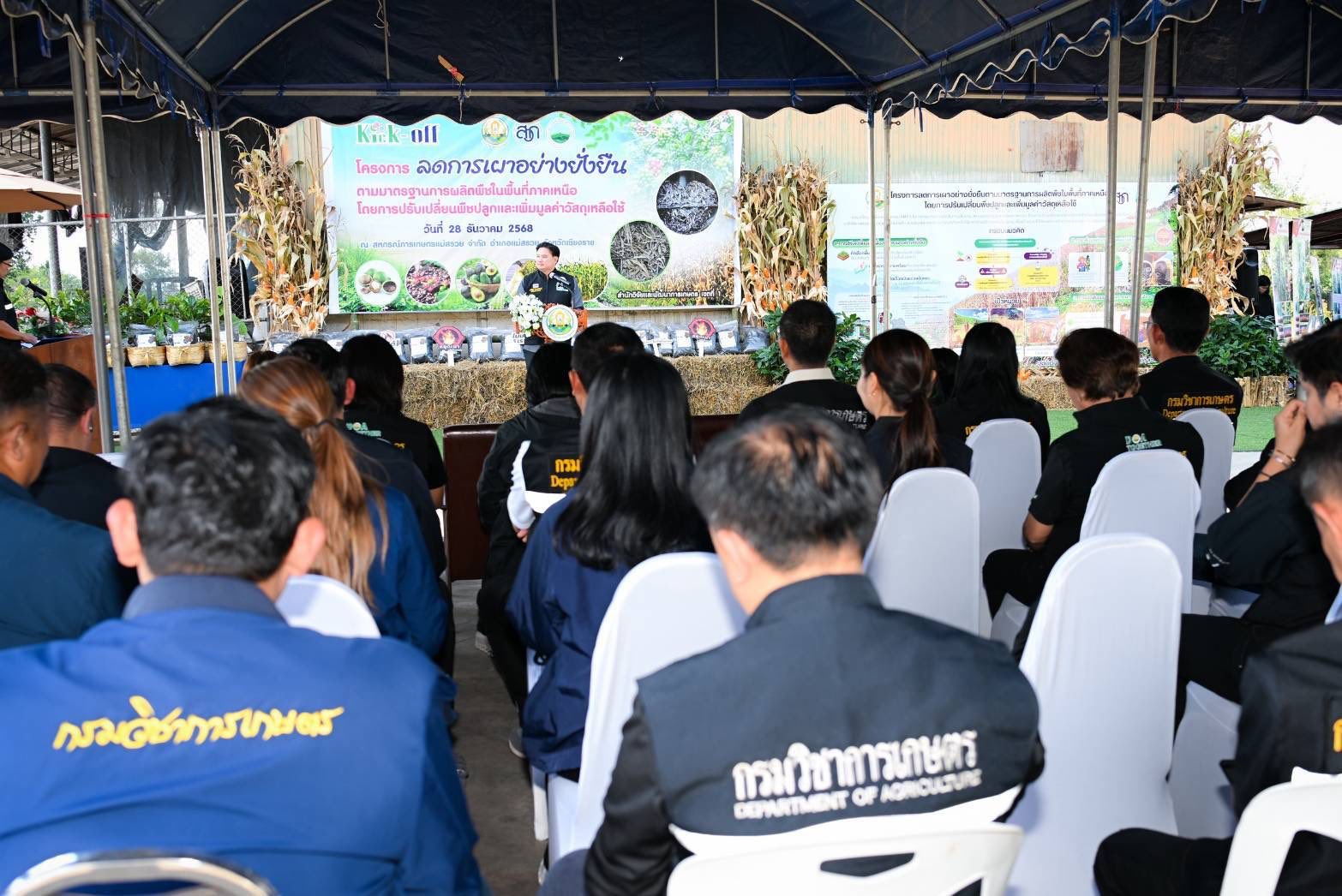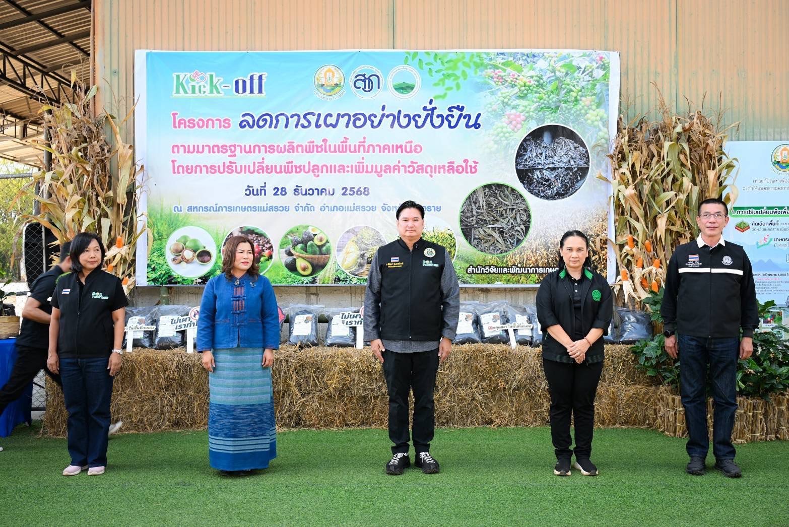 ข่าวกิจกรรม ธ.ค. 28 2568 สถาบันวิจัยพืชสวนร่วมงาน Kick-off โครงการลดการเผาอย่างยั่งยืนในพื้นที่ภาคเหนือ วันที่ 28 ธันวาคม 2568 นายรพีภัทร์ จันทรศรีวงศ์ อธิบดีกรมวิชาการเกษตร เป็นประธานเปิดงาน Kick-off โครงการลดการเผาอย่างยั่งยืนในพื้นที่ภาคเหนือ ณ สหกรณ์การเกษตรแม่สรวย จำกัด จังหวัดเชียงราย พร้อมมอบต้นกาแฟอะราบิกา โรบัสต้า อะโวคาโด และผลิตภัณฑ์ไบโอชาร์ให้แก่เกษตรกร มีผู้เข้าร่วมกว่า 80 คน โดยมี นางศศิญา ปานตั้น รองอธิบดีกรมวิชาการเกษตร, นางสาวเชาวนาถ พฤทธิเทพ ผู้อำนวยการกองวิจัยพัฒนาพืชเศรษฐกิจใหม่และการจัดการก๊าซเรือนกระจกสำหรับภาคเกษตร และ นางสาวกาญจนา ทองนะ ผู้อำนวยการสถาบันวิจัยพืชสวน เข้าร่วมในพิธีอย่างพร้อมเพรียง อธิบดีกรมวิชาการเกษตรระบุว่า โครงการนี้เป็นการขับเคลื่อนนโยบายลดปัญหา PM2.5 และเพิ่มมูลค่าวัสดุเหลือใช้ทางการเกษตร เป็นภารกิจสำคัญภายใต้นโยบายของกระทรวงเกษตรและสหกรณ์ โดย ร้อยเอกธรรมนัส พรหมเผ่า รองนายกรัฐมนตรี และ รมว.เกษตร ที่มุ่งเน้นการทำ “เกษตรที่โปร่งใส” ควบคู่กับนโยบาย “ตลาดนำ นวัตกรรมเสริม เพิ่มรายได้” เพื่อยกระดับสินค้าเกษตรไทยสู่มาตรฐานสากลและเป็นมิตรต่อสิ่งแวดล้อมในรูปแบบเกษตรคาร์บอนต่ำ กรมวิชาการเกษตรได้ขับเคลื่อนนโยบาย 3R ซึ่งประกอบด้วย 1) Re-Habit การปรับเปลี่ยนนิสัยหรือพฤติกรรมเกษตรกรในการทำการเกษตรแบบไม่เผา 2) Replace with High Value Crops ปรับเปลี่ยนโดยการปลูกพืชกลุ่มไม้ผลหรือพืชยืนต้นที่มีมูลค่าสูงทดแทนพืชระยะสั้น 3) Replace with Alternate Crops ปรับเปลี่ยนพื้นที่นาปรังเป็นพืชสร้างรายได้อื่น เช่น ข้าวโพดเลี้ยงสัตว์ เพื่อแก้ไขปัญหาการเผาในภาคการเกษตร พร้อมผลักดันการแปรรูปวัสดุเหลือใช้เป็นไบโอชาร์ ช่วยลดการเผา ปรับปรุงดิน ลดต้นทุน และรองรับมาตรฐาน GAP Zero Burning Admin Thittayaphon 0 Comments