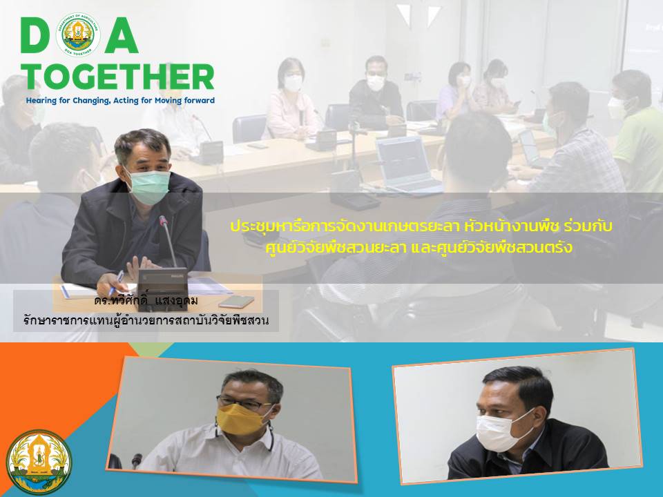 ข่าวกิจกรรม ประชุมหารือการจัดงานเกษตรยะลา หัวหน้างานพืช ร่วมกับศูนย์วิจัยพืชสวนยะลา และศูนย์วิจัยพืชสวนตรัง11 พฤษภาคม 256511 พฤษภาคม 2022
