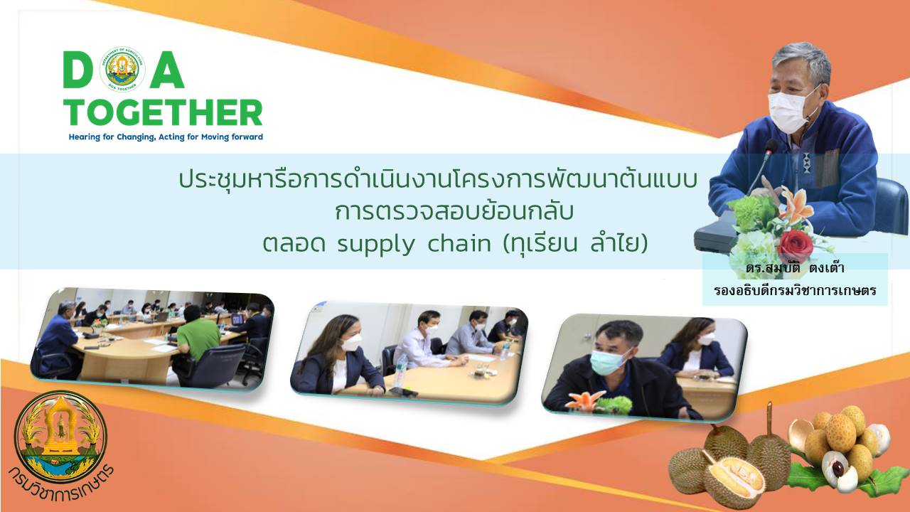 ข่าวกิจกรรม ประชุมหารือการดำเนินงานโครงการพัฒนาต้นแบบการตรวจสอบย้อนกลับตลอด supply chain (ทุเรียน ลำไย)11 พฤษภาคม 256511 พฤษภาคม 2022