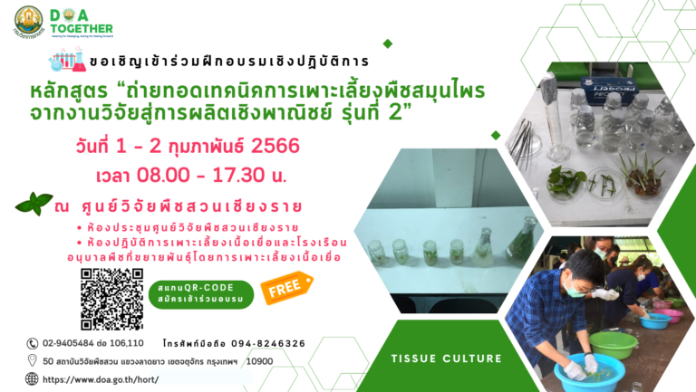 ข่าวประชาสัมพันธ์ข่าวฝึกอบรม ขอเชิญเข้าร่วมอบรมเชิงปฏิบัติการ หลักสูตร “ถ่ายทอดเทคนิคการเพาะเลี้ยงพืชสมุนไพร จากงานวิจัยสู่การผลิตเชิงพาณิชย์ รุ่นที่ 2”18 มกราคม 256618 มกราคม 2023