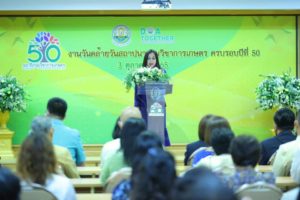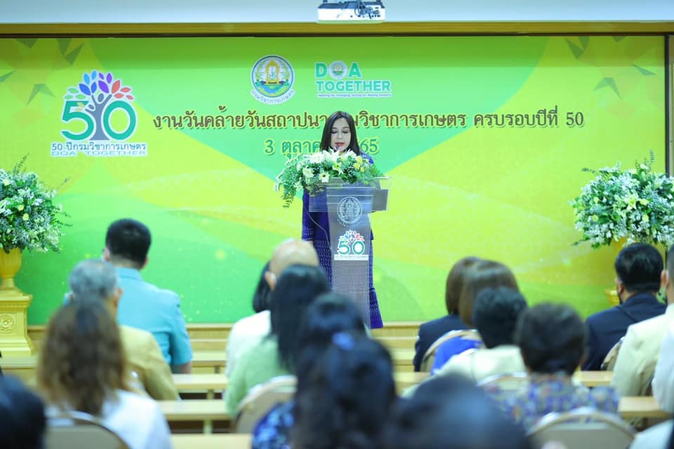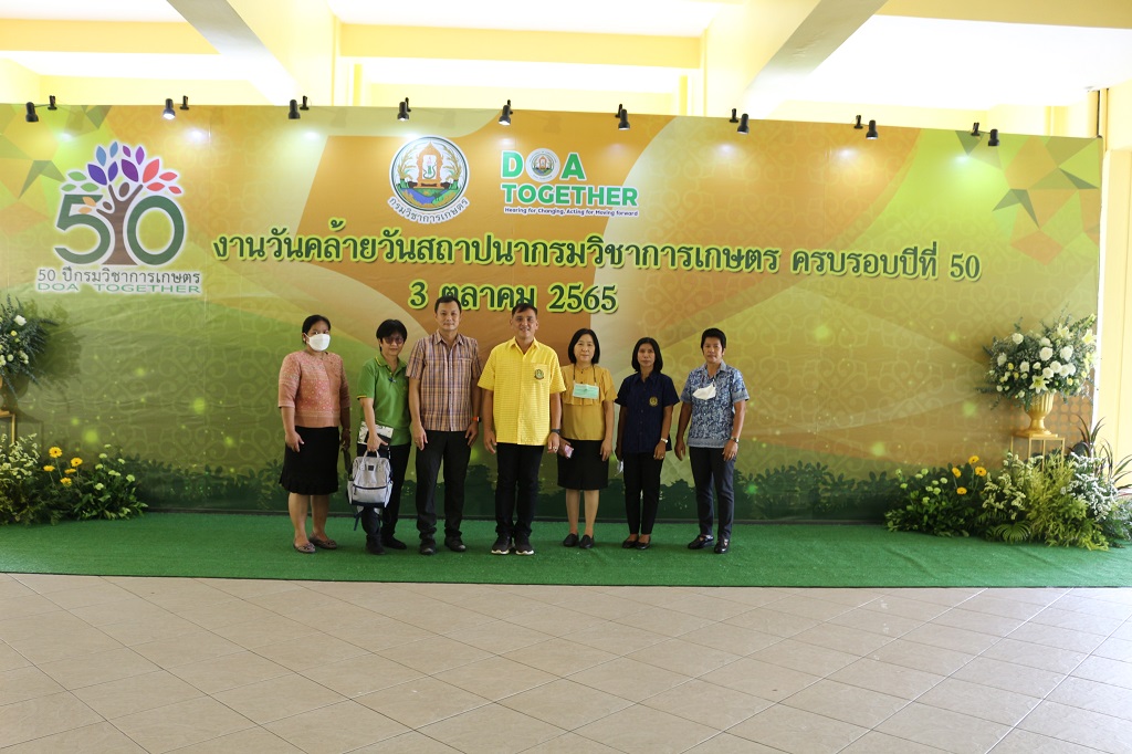 วันที่ 3 ตุลาคม 2563 ดร.ชูชาติ วัฒนวรรณ ผู้อำนวยการสถาบันวิจัยพืชสวน พร้อมด้วยคณะผู้บริหารสถาบันวิจัยพืชสวน ร่วมงานวันคล้ายวันสถาปนากรมวิชาการเกษตร ครบรอบ ปีที่ 50 และจัดนิทรรศการเทคโนโลยีการผลิตผักสลัดใน plant factory เพื่อเพิ่มมูลค่า และการผลิตอาหารแห่งอนาคต โดยมี รมช.มนัญญา ไทยเศรษฐ์ รัฐมนตรีช่วยว่าการกระทรวงเกษตรและสหกรณ์ เป็นประธานพิธีอ่านสารแสดงความยินดี พร้อมด้วย นายระพีภัทร์ จันทรศรีวงศ์ อธิบดีกรมวิชาการเกษตร ผู้บริหารระดับสูง ข้าราชการ เจ้าหน้าที่ เข้าร่วม