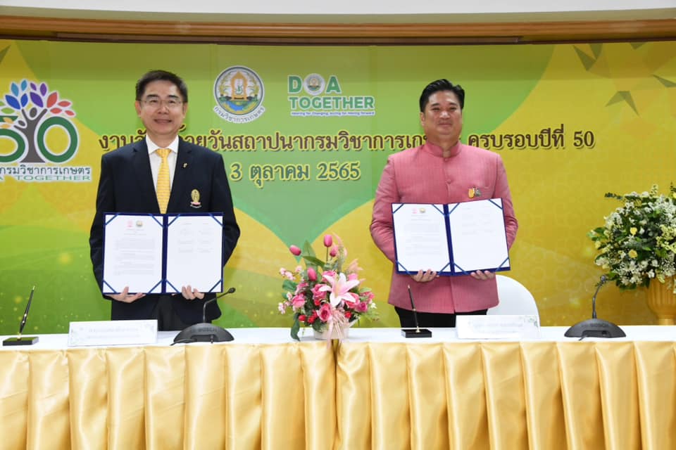 โอกาสนี้ เป็นสักขีพยานพิธีลงนามบันทึกข้อตกลงความร่วมมือ (MOU) ด้านการพัฒนาโครงการที่เกี่ยวข้องกับการจัดการก๊าซเรือนกระจก ระหว่าง กรมวิชาการเกษตร กับ องค์การบริหารจัดการก๊าซเรือนกระจก (องค์การมหาชน) และพิธีลงนามบันทึกข้อตกลงความร่วมมือทางวิชาการ (MOU) เพื่อค้นคว้าวิจัยการเรียนการสอนการบริการวิชาการเกี่ยวกับกัญชา กัญชง เพื่อประโยชน์ในทางการแพทย์และเชิงพาณิชย์อย่างครบวงจร ระหว่าง กรมวิชาการเกษตร กับ จุฬาลงกรณ์มหาวิทยาลัย ณ ห้องประชุม 314 ตึกกสิกรรม กรมวิชาการเกษตร จากนั้น เยี่ยมชมนิทรรศการแสดงผลงานวิจัยและเทคโนโลยีของกรมวิชาการเกษตร บริเวณโถงชั้นล่างตึกกสิกรรม กรมวิชาการเกษตร