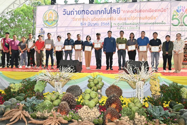 “สำนักวิจัยและพัฒนาการเกษตรเขตที่ 3 และเขตที่ 4 และหน่วยงานกรมวิชาการเกษตร ที่ตั้งอยู่ในพื้นที่ภาคตะวันออกเฉียงเหนือ รวมทั้งหน่วยงานสังกัดกระทรวงเกษตรและสหกรณ์ ในจังหวัดร้อยเอ็ด ได้ร่วมกันจัดงานวันถ่ายทอดเทคโนโลยีการผลิตพืชเพื่อร่วมเฉลิมฉลองเนื่องในโอกาสที่กรมวิชาการเกษตร ได้รับการสถาปนาครบรอบ 50 ปี โดยตลอดระยะเวลาที่ผ่านมากรมวิชาการเกษตรได้ผลิตผลงานวิจัย ด้านพันธุ์พืช และเทคโนโลยีการเกษตรที่มีคุณค่า และเป็นประโยชน์ต่อการพัฒนาการเกษตรของประเทศไทยเป็นจำนวนมาก ดังนั้นจึงได้จัดงานในครั้งนี้ขึ้นเพื่อเผยแพร่ผลงานวิชาการ ตลอดจนบทบาทหน้าที่ของหน่วยงานกรมวิชาการเกษตรให้สาธารณชนได้รับทราบอย่างกว้างขวาง โดยมีเกษตรกร นักเรียน นักศึกษา และผู้สนใจ เข้าร่วมชมงานประมาณ 1,000 คน ขอเชิญชวนผู้ที่สนใจสามารถเข้าร่วมชมงานได้ตั้งแต่วันที่ 8 – 9 มีนาคม 2566 ณ ศูนย์วิจัยและพัฒนาการเกษตรร้อยเอ็ด อำเภอเมือง จังหวัดร้อยเอ็ด” อธิบดีกรมวิชาการเกษตร กล่าว