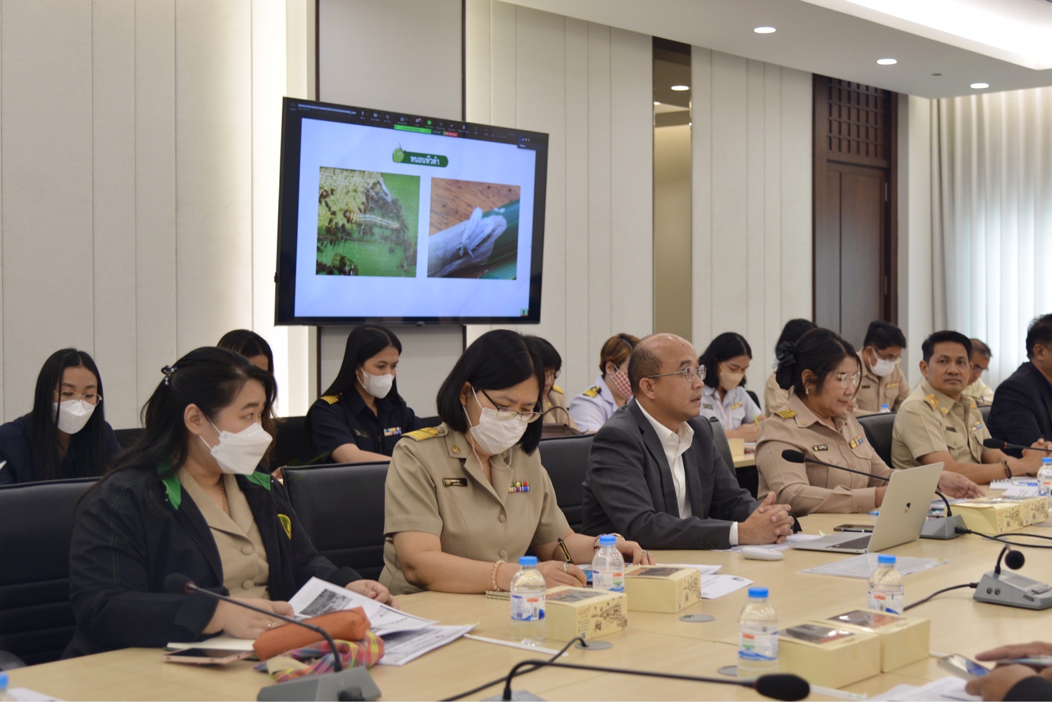 วันจันทร์ ที่ 12 กุมภาพันธ์ 2567 เวลา 15.00 น. นายธงชัย คำโคตร ผู้อำนวยการสถาบันวิจัยพืชสวน พร้อมด้วย นางสาวกาญจนา ทองนะ ผู้อำนวยการกลุ่มวิชาการ และนางวิไลวรรณ ทวิชศรี นักวิชาการเกษตรชำนาญการพิเศษ ร่วมประชุมหารือเตรียมความพร้อมสำหรับการส่งออกทุเรียนไปจีน ภาคตะวันออก ฤดูกาลส่งออก ปี พ.ศ. 2567 และหารือแนวทางแก้ไขปัญหาการแพร่ระบาดของหนอนหัวดำในมะพร้าว ระหว่างกรมวิชาการเกษตรและกรมส่งเสริมการเกษตร โดยมี นายระพีภัทร์ จันทรศรีวงศ์ อธิบดีกรมวิชาการเกษตร เป็นประธาน ณ ห้องประชุมชั้น 2 สำนักงานอธิบดีกรมวิชาการเกษตร และผ่านโปรแกรม Zoom Clound Meeting