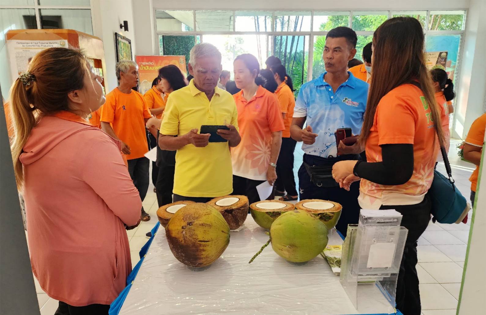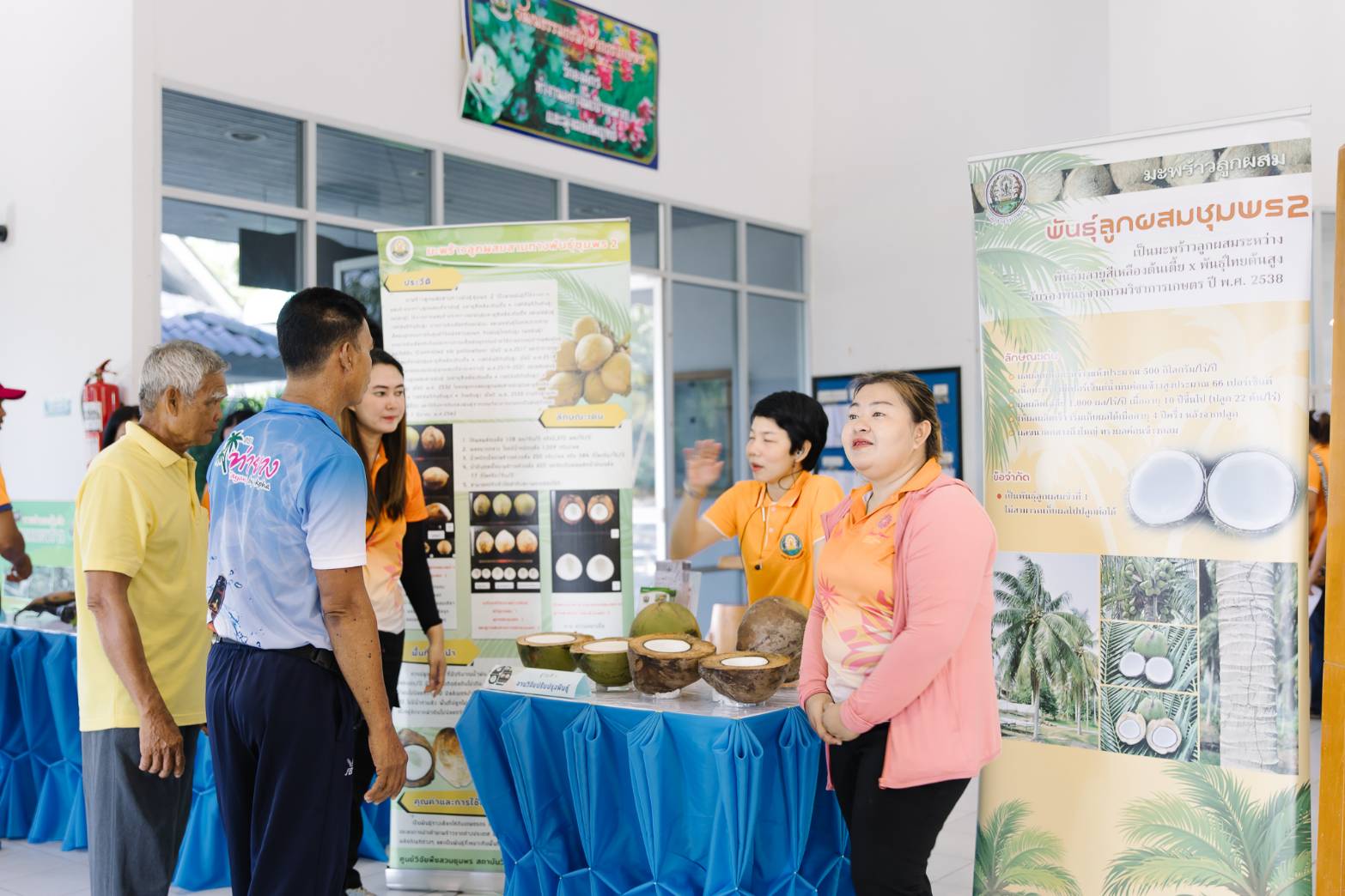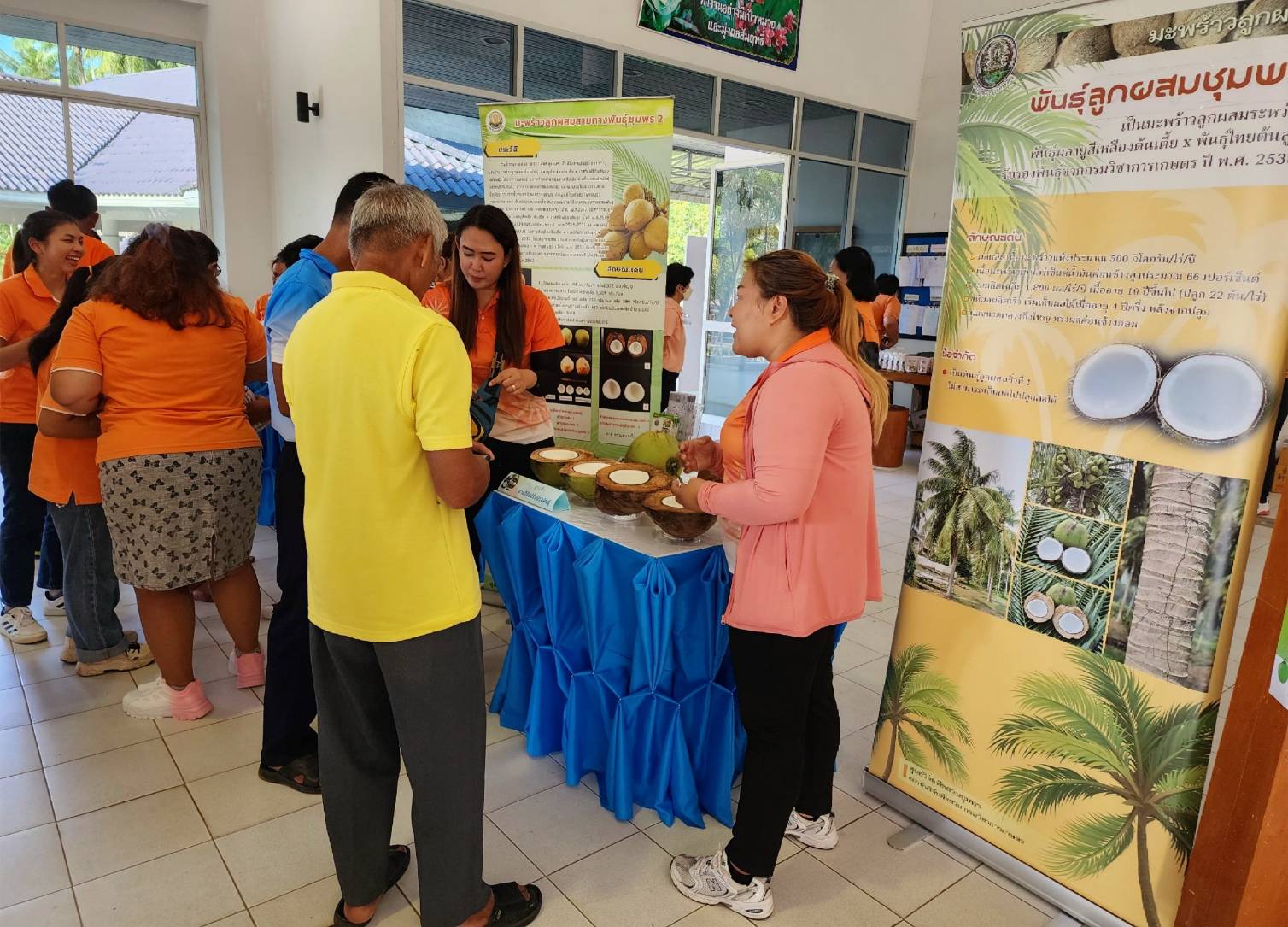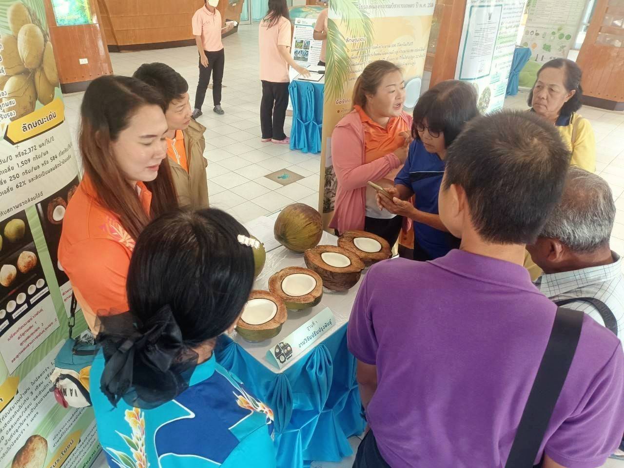 การจัดงานครั้งนี้ได้รับความร่วมมือจาก ธ.ก.ส. สาขาดอนหว้า อำเภอสวี จังหวัดชุมพร สำนักงานเกษตรอำเภอสวี จังหวัดชุมพร และ สำนักงานเกษตรอำเภอทับสะแก จังหวัดประจวบคีรีขันธ์ นำเกษตรกรผู้ปลูกมะพร้าวเข้าร่วมกิจกรรม ชมนิทรรศการการวิจัยมะพร้าว 7 ฐาน ชมการสาธิตการใช้อุปกรณ์ปีนมะพร้าวและสอยมะพร้าว ชมแปลงสาธิตการปลูกมะพร้าวแซมสวนเดิมที่ต้นสูงอายุมาก (under plant) ชมแปลงเพาะกล้าและมอบต้นกล้าแก่เกษตรกร รวมถึงร่วมเสวนาในหัวข้อ “โอกาสในการส่งเสริมการปลูกมะพร้าวทดแทนสวนเก่า” และกิจกรรมสุดท้าย เกษตรกรจับฉลากรับรางวัล เป็นมีดสอยมะพร้าว