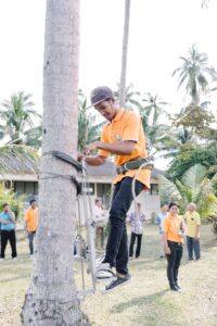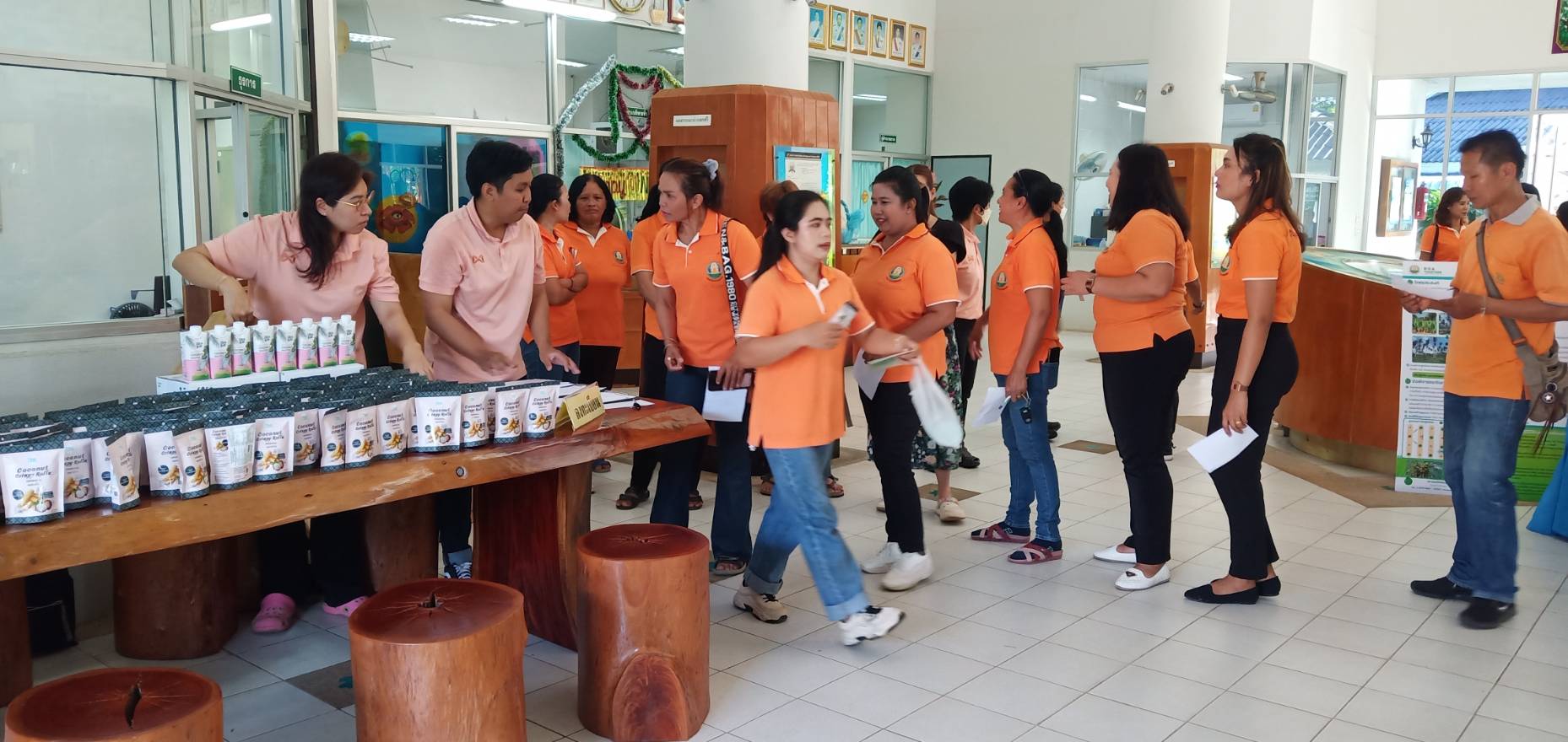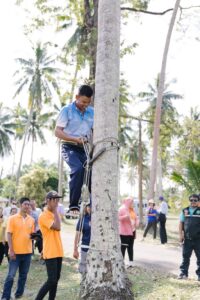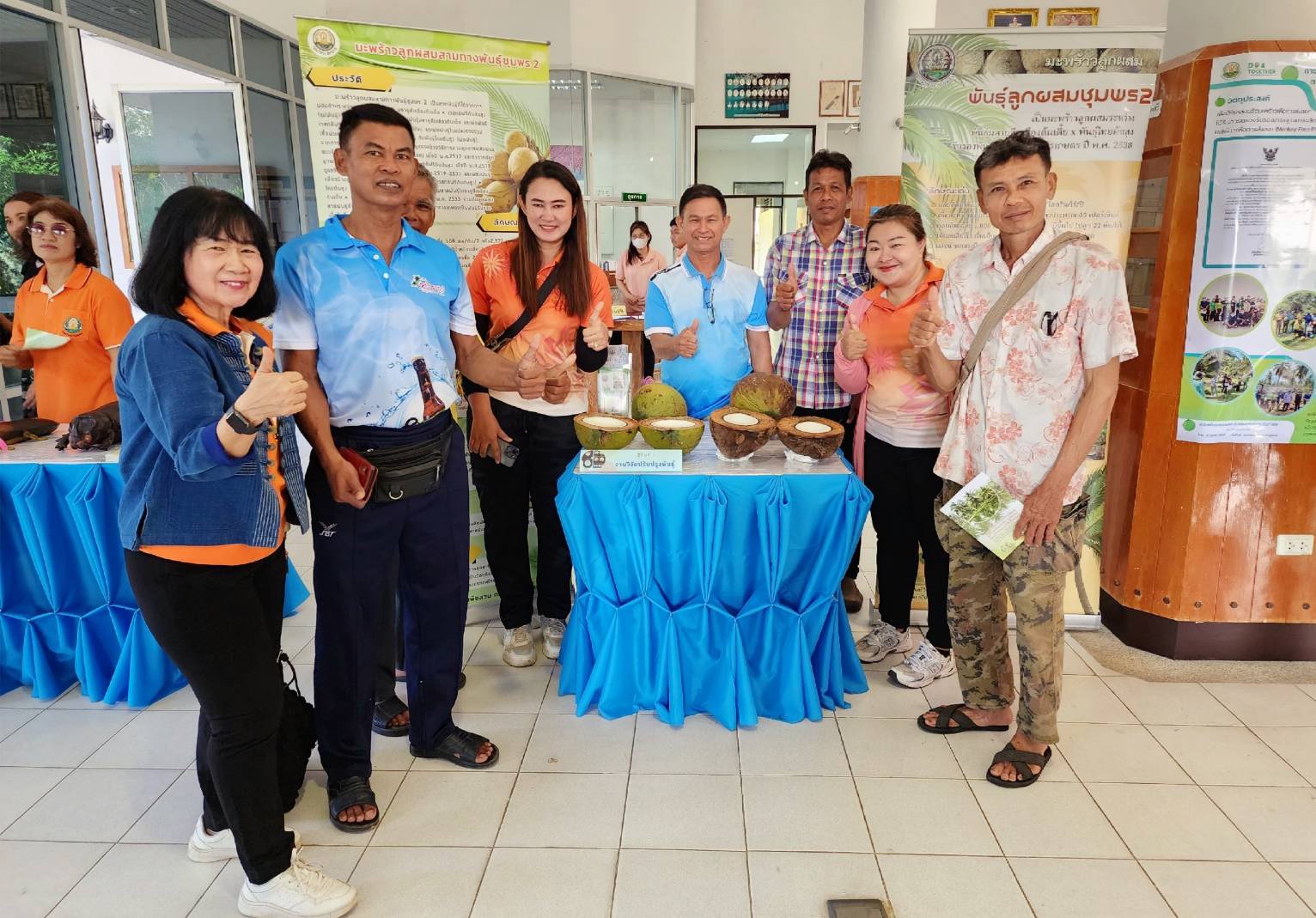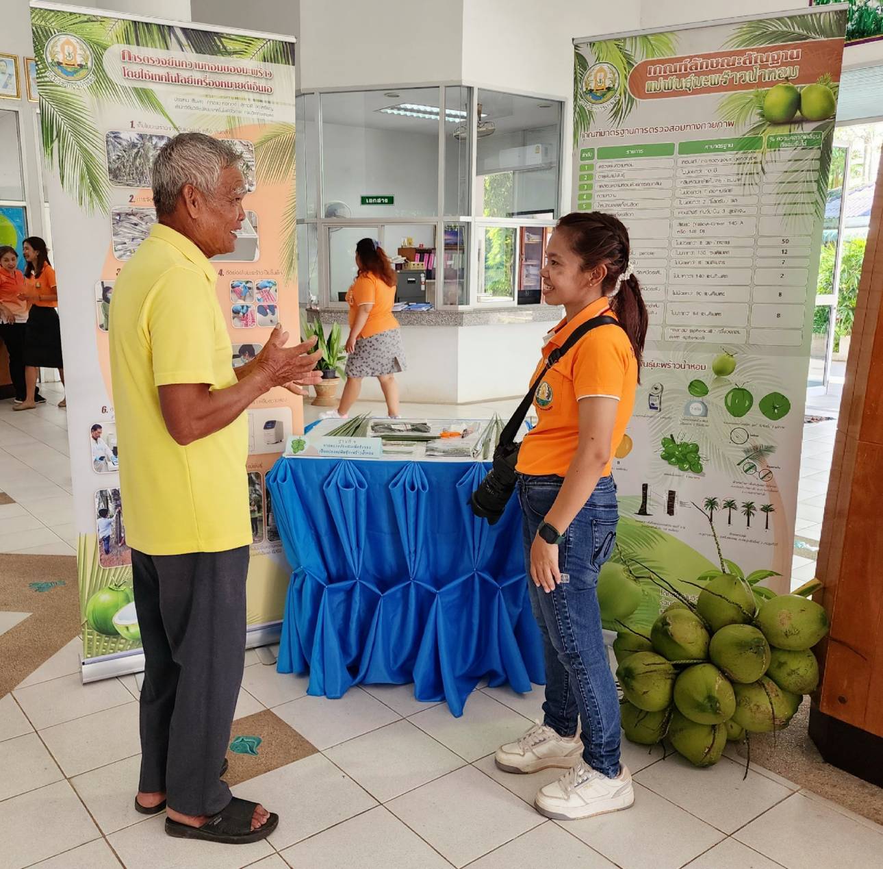 การจัดงานครั้งนี้ได้รับความร่วมมือจาก ธ.ก.ส. สาขาดอนหว้า อำเภอสวี จังหวัดชุมพร สำนักงานเกษตรอำเภอสวี จังหวัดชุมพร และ สำนักงานเกษตรอำเภอทับสะแก จังหวัดประจวบคีรีขันธ์ นำเกษตรกรผู้ปลูกมะพร้าวเข้าร่วมกิจกรรม ชมนิทรรศการการวิจัยมะพร้าว 7 ฐาน ชมการสาธิตการใช้อุปกรณ์ปีนมะพร้าวและสอยมะพร้าว ชมแปลงสาธิตการปลูกมะพร้าวแซมสวนเดิมที่ต้นสูงอายุมาก (under plant) ชมแปลงเพาะกล้าและมอบต้นกล้าแก่เกษตรกร รวมถึงร่วมเสวนาในหัวข้อ “โอกาสในการส่งเสริมการปลูกมะพร้าวทดแทนสวนเก่า” และกิจกรรมสุดท้าย เกษตรกรจับฉลากรับรางวัล เป็นมีดสอยมะพร้าว