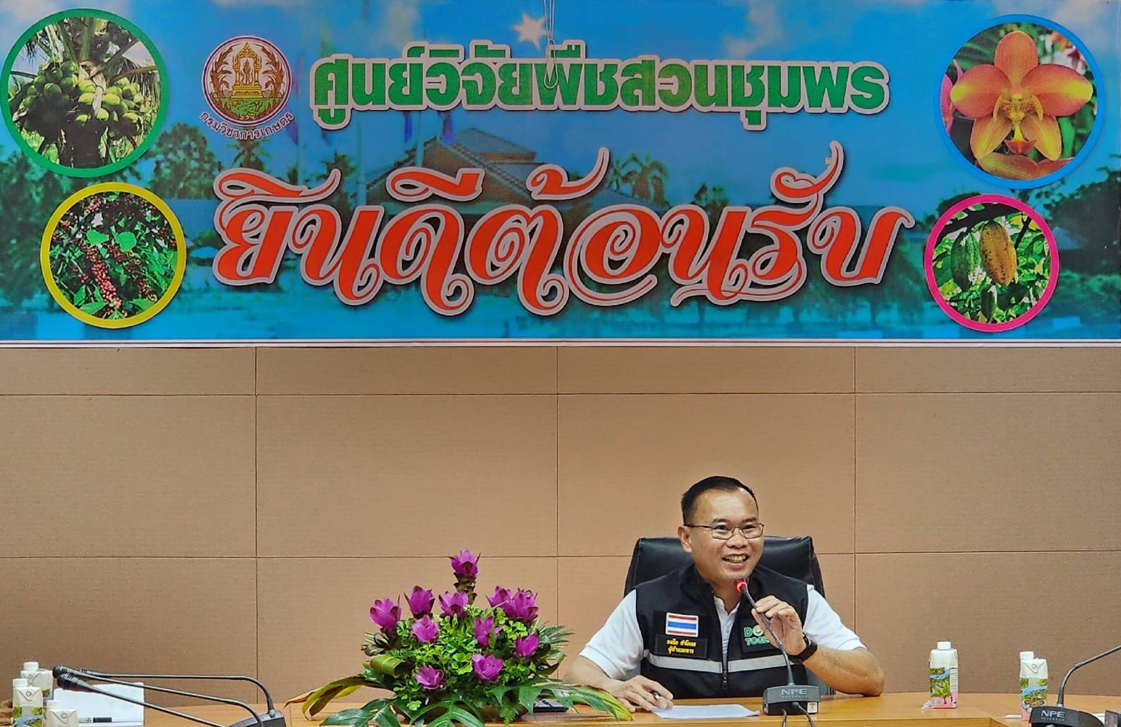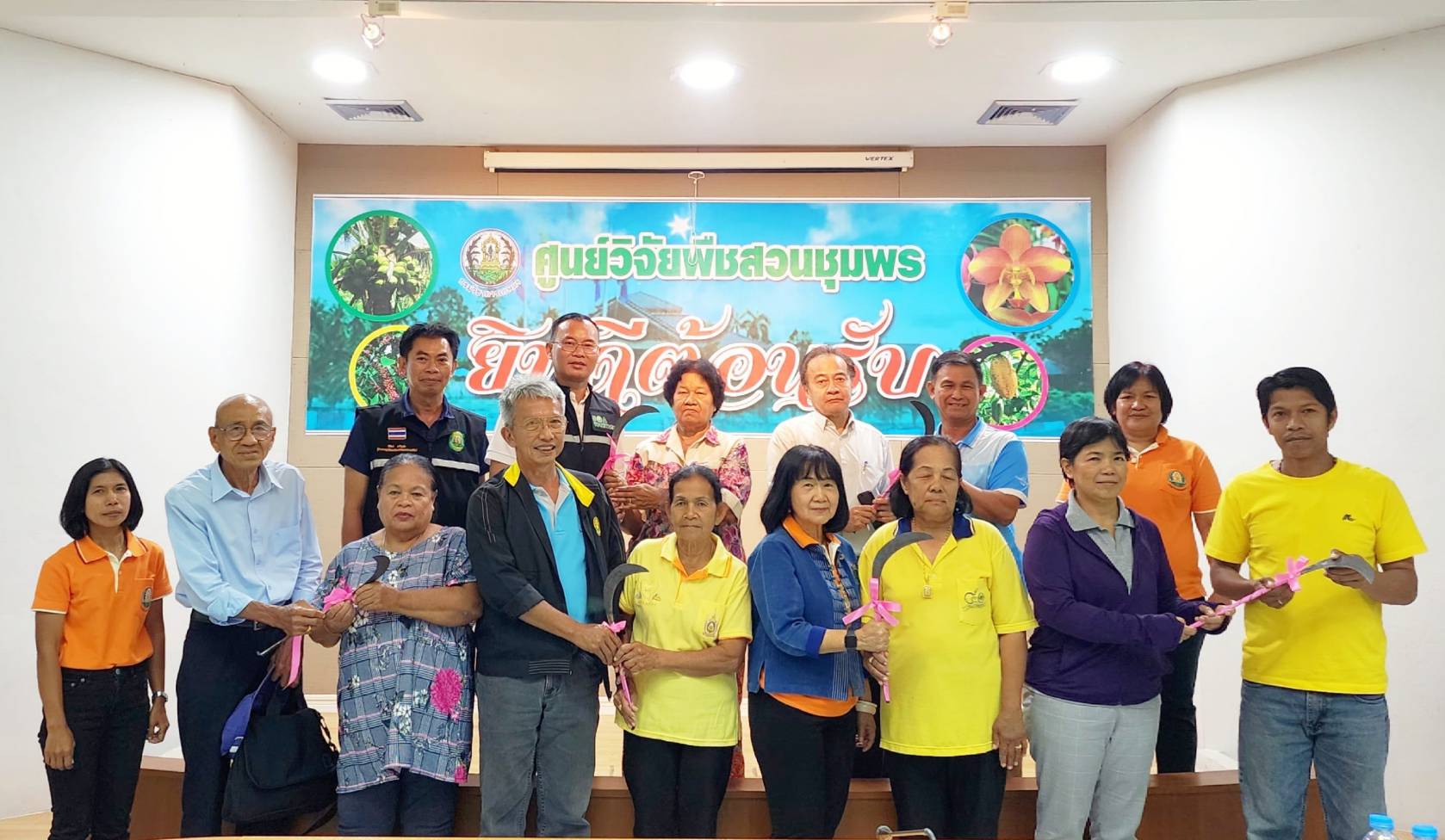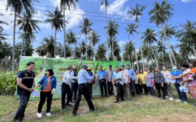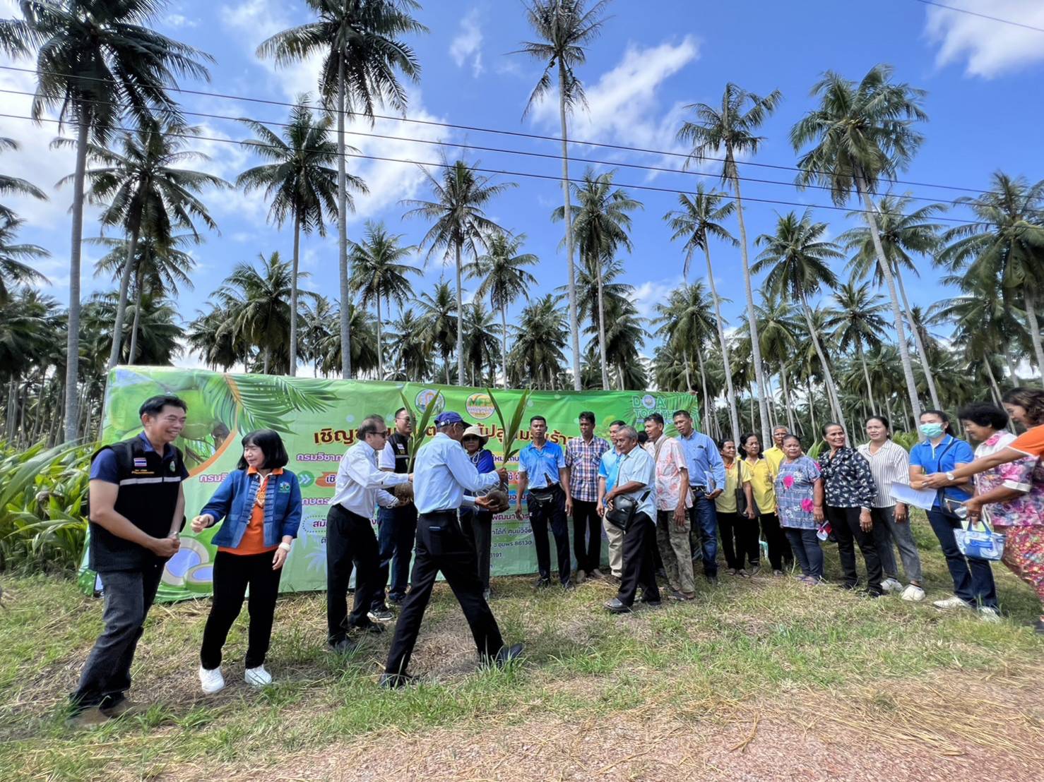 วันที่ 23 กุมภาพันธ์ 2566 นายธงชัย คำโคตร ผู้อำนวยการสถาบันวิจัยพืชสวน เยี่ยมชมศูนย์วิจัยพืชสวนชุมพรและมอบนโยบายแก่ข้าราชการ และพนักงานของศูนย์ฯ และเป็นประธานเปิดงานวันถ่ายทอดเทคโนโลยี เรื่อง การขยายผลนวัตกรรมการเก็บเกี่ยวมะพร้าวและการปลูกมะพร้าวทดแทนสวนเก่า ภายใต้โครงการนำร่องสร้างฐานความมั่นคงการผลิตมะพร้าวไทยด้วยการรับรองมาตรฐานและนวัตกรรมการปลูกและการเก็บเกี่ยว โดยมี นางสาวทิพยา ไกรทอง ผอ.ศวส.ชุมพร กล่าวต้อนรับ นางวิไลวรรณ ทวิชศรี หัวหน้าโครงการฯ กล่าวรายงานความเป็นมาและวัตถุประสงค์การจัดงาน พร้อมด้วย ที่ปรึกษากรมฯ ด้านพืชสวนอุตสาหกรรม (นางปิยนุช นาคะ) และคณะกรรมการติดตามประเมินผล (นายเกริกชัย ธนะรักษ์ นายสุทัศน์ สุรวาณิช นายอานุภาพ ธีระกุล) และผู้เชี่ยวชาญด้านไม้ผล (นางสุภัทรา เลิศวัฒนาเกียรติ) เข้าร่วมสังเกตการณ์