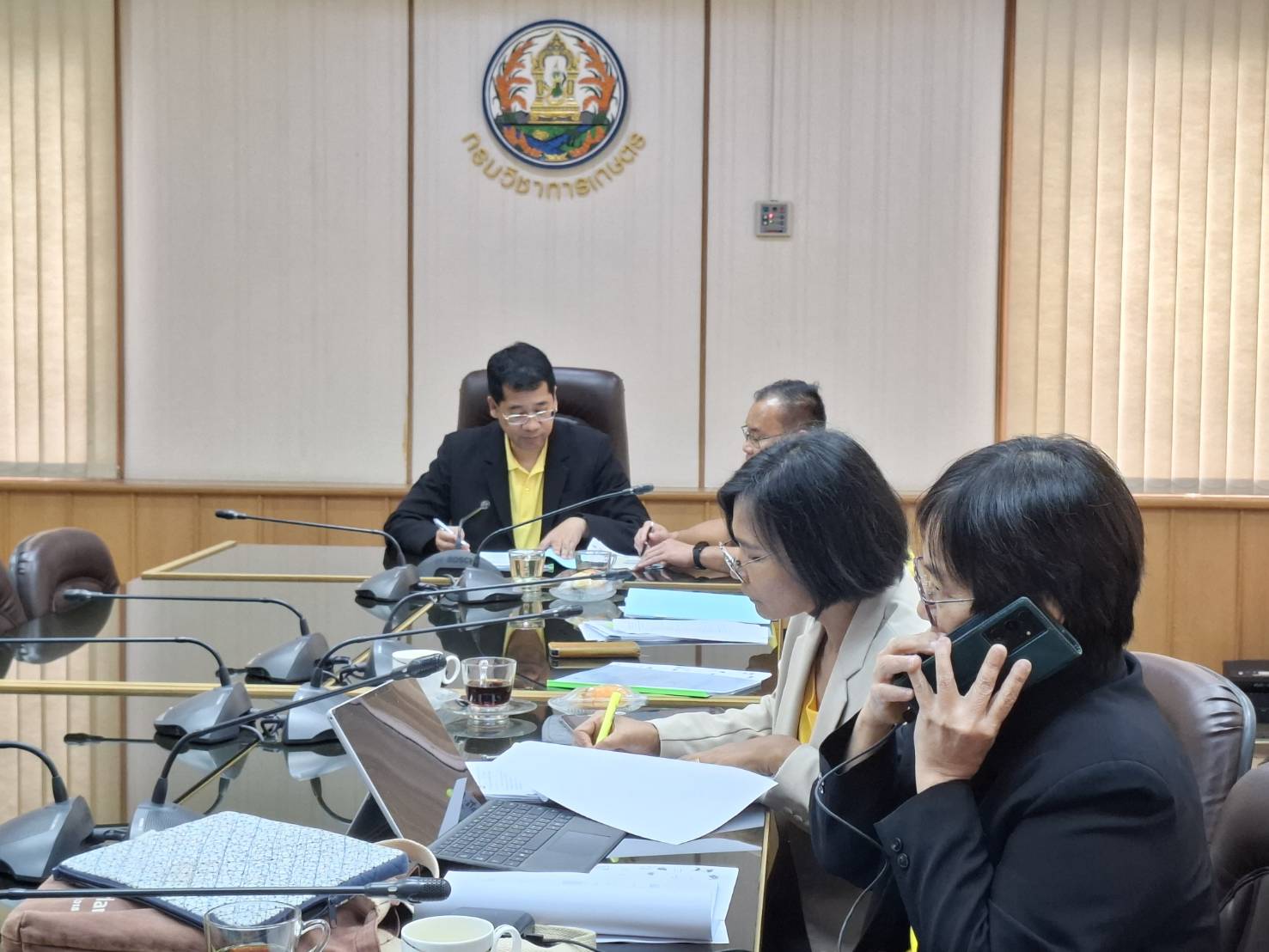 วันที่ 24 มิถุนายน 2567 นายธงชัย คำโคตร ผู้อำนวยการสถาบันวิจัยพืชสวน พร้อมด้วย นางสาวกาญจนา ทองนะ ผู้อำนวยการกลุ่มวิชาการ และนางสุภาภรณ์ สาชาติ หัวหน้างานวิจัยพืชอุตสาหกรรม ร่วมประชุมหารือแนวทางการส่งเสริมการผลิตกาแฟใน 8 จังหวัดภาคเหนือ ตามที่รัฐมนตรีว่าการกระทรวงเกษตรและสหกรณ์ (ร้อยเอกธรรมนัส พรหมเผ่า) ให้มีการส่งเสริมการปลูกกาแฟพันธุ์อาราบิกา และพันธุ์โรบัสตา เพื่อทดแทนการนำเข้าใน 8 จังหวัดภาคเหนือ ได้แก่ จังหวัดเชียงใหม่ เชียงราย แม่ฮ่องสอน พะเยา แพร่ น่าน ลำพูน และจังหวัดลำปาง เพื่อการบริโภคเป็นกาแฟ Specialyy Coffee โดยมี ดร.พงศ์ไท ไทโยธิน รองอธิบดีกรมวิชาการเกษตร และคณะ เข้าร่วมประชุม ผ่านระบบออนไลน์ (Zoom meeting) ณ ห้องประชุมผู้บริหาร อาคารศูนย์ปฏิบัติการฝึกอบรมและถ่ายทอดเทคโนโลยี กรมวิชาการเกษตร