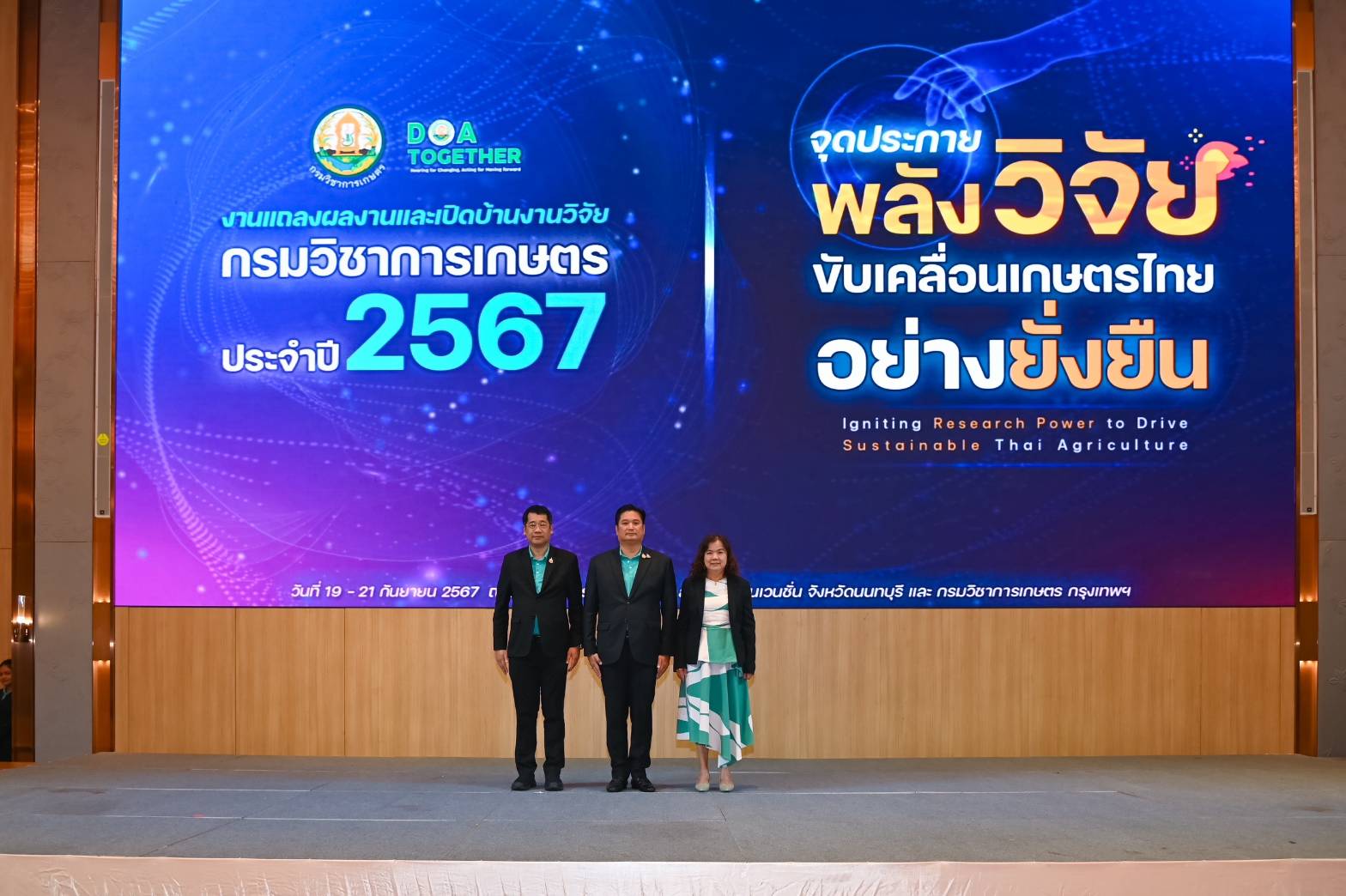 วันที่ 19 กันยายน 2567 สถาบันวิจัยพืชสวน นำโดย นายธงชัย คำโคตร ผู้อำนวยการสถาบันวิจัยพืชสวน พร้อมด้วย คณะผู้บริหาร ผู้อำนวยการศูนย์เครือข่ายฯ ข้าราชการ และเจ้าหน้าที่ เข้าร่วมงานแถลงผลงานและเปิดบ้านงานวิจัย กรมวิชาการเกษตร ประจำปี 2567 “จุดประกายพลังวิจัย ขับเคลื่อนเกษตรไทยอย่างยั่งยืน” โดยมี นายรพีภัทร์ จันทรศรีวงศ์ อธิบดีกรมวิชาการเกษตร ณ โรงแรมแกรนด์ ริชมอนด์ สไตลิช คอนเวนชั่น จังหวัดนนทบุรี