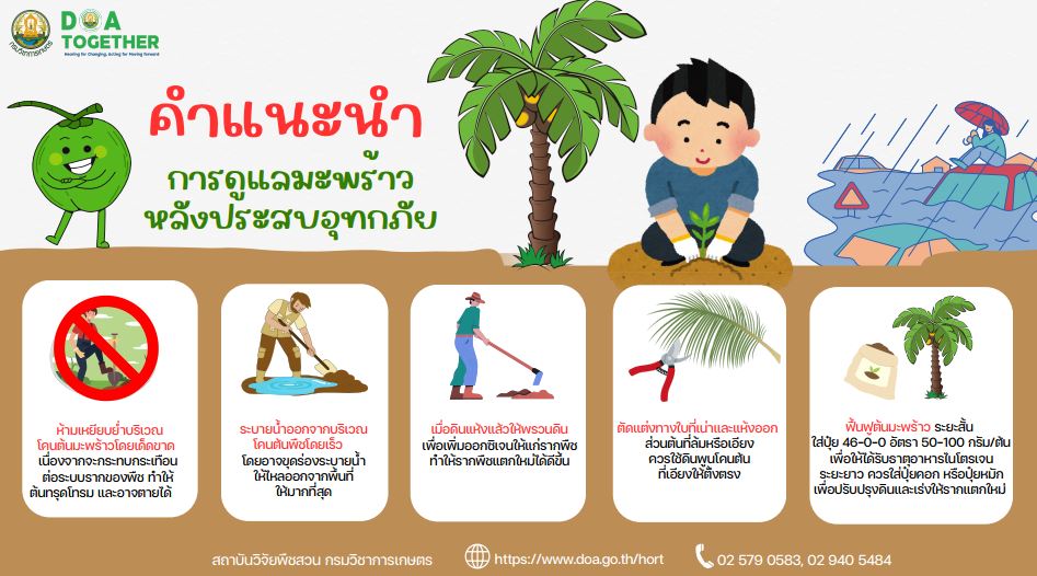 คำแนะนำการดูแลมะพร้าวหลังน้ำท่วม