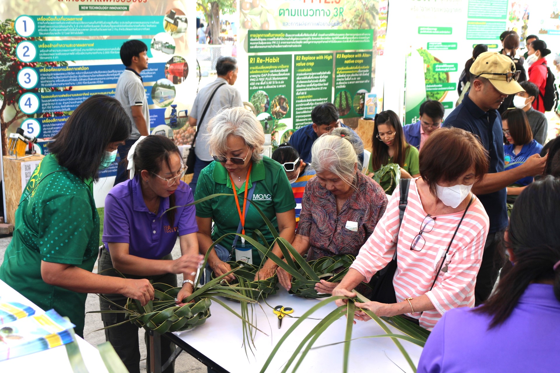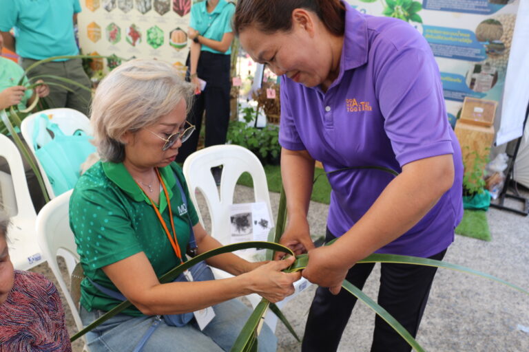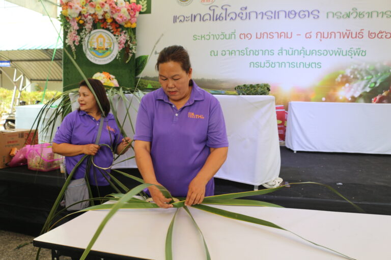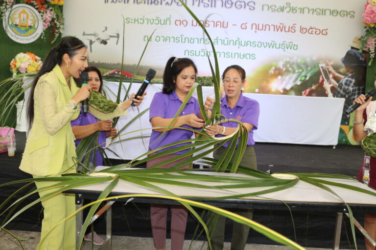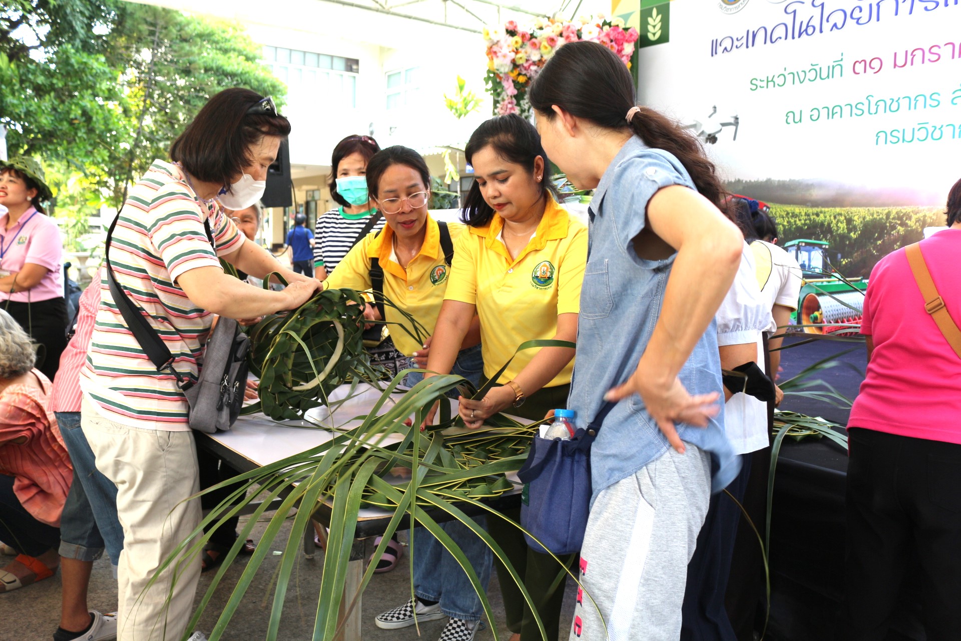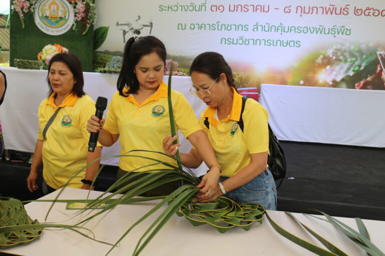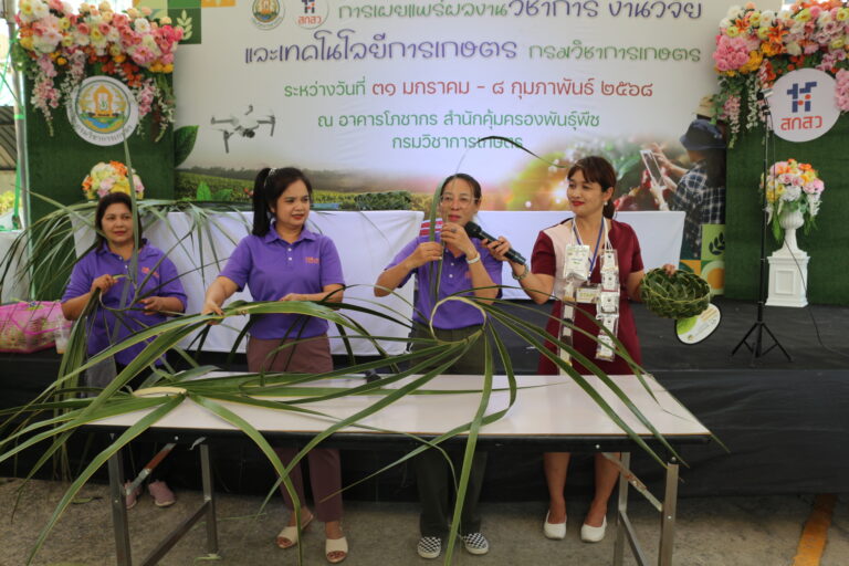 วันที่ 3 กุมภาพันธ์ 2568 สถาบันวิจัยพืชสวน โดย ศูนย์วิจัยพืชสวนชุมพร แสดงผลงานด้านวิจัย เรียนรู้สร้างอาชีพ ต่อยอดเสริมรายได้ จัดกิจกรรมสาธิตการสานหมวกและตะกร้าจากใบมะพร้าว พร้อมลุ้นรับต้นกล้า 1) มะพร้าวแกง พันธุ์ไทยต้นสูงที่ได้จากต้นแม่พันธุ์ดี ผ่านการคัดเลือกตามเกณฑ์ปรับปรุงพันธุ์ และ 2) ต้นกล้ามะพร้าวน้ำหอมจากแปลงวิจัยที่ สวส.ได้รับทุน สวก. ดำเนินการที่ จ.ราชบุรี ในงาน “เผยแพร่ผลงานวิชาการ งานวิจัย และเทคโนโลยีกรมวิชาการเกษตร” ระหว่างวันที่ 31 มกราคม – 8 กุมภาพันธ์ 2568 ณ บริเวณอาคารโภชากร สำนักคุ้มครองพันธุ์พืช กรมวิชาการเกษตร เกษตรกลางบางเขน