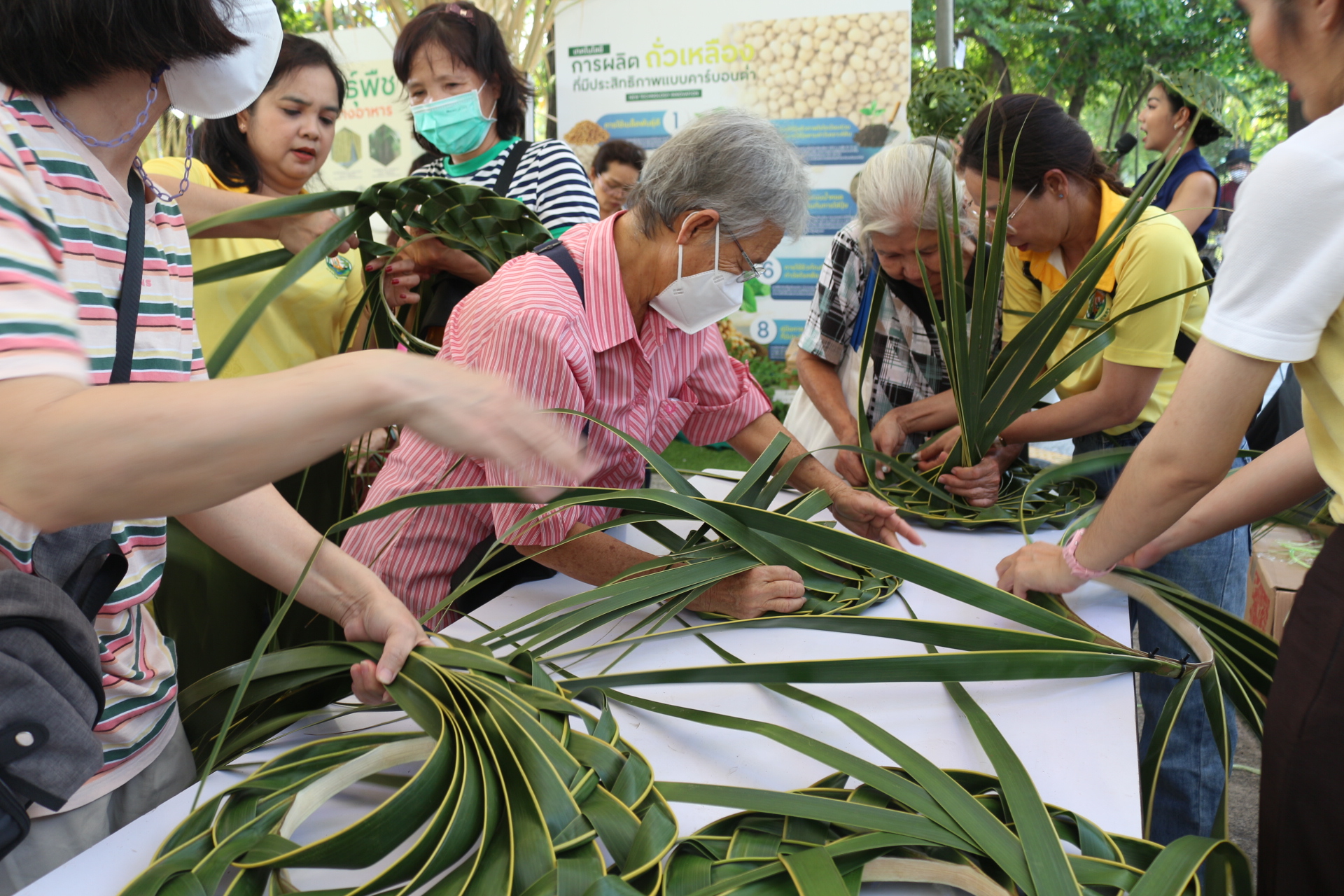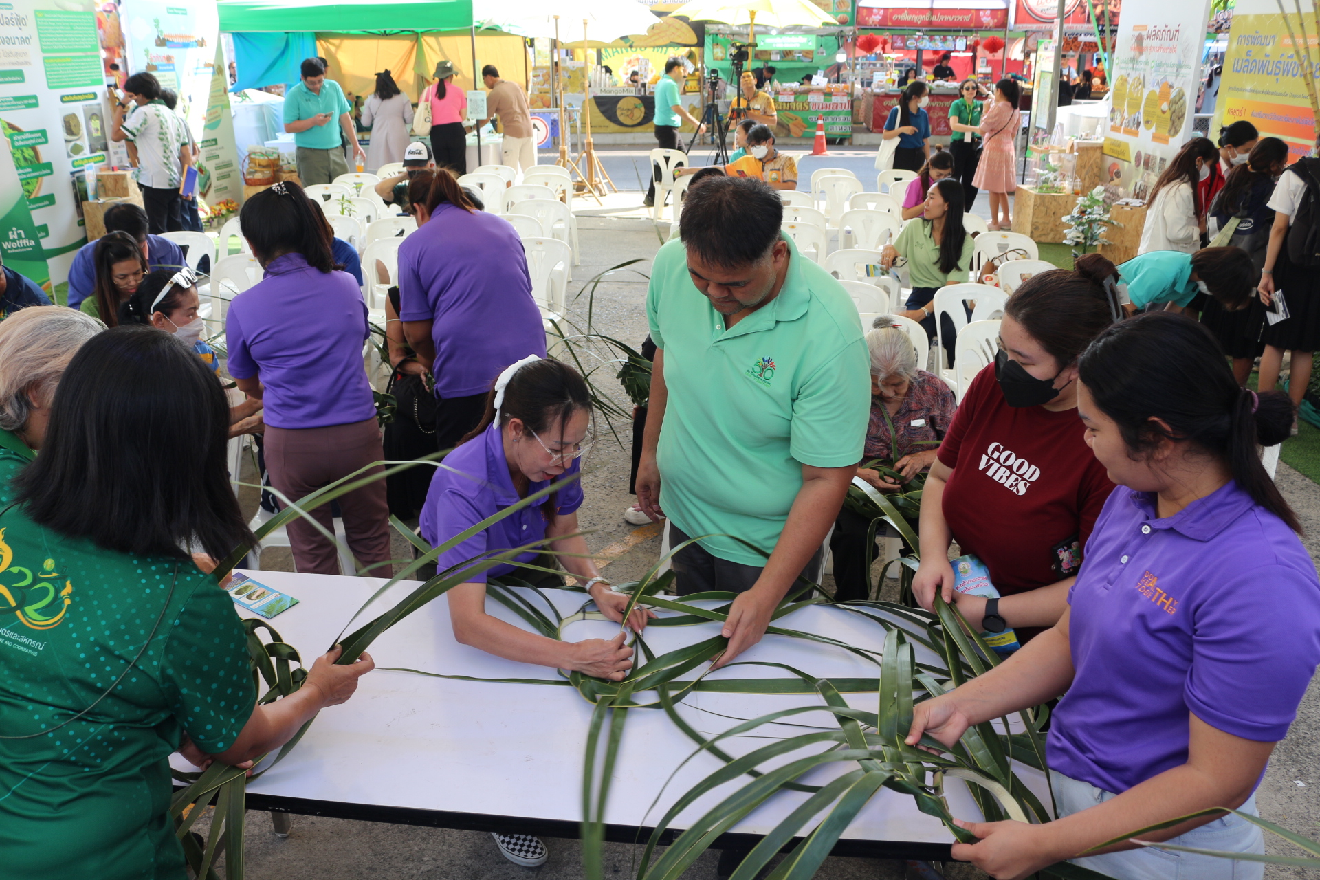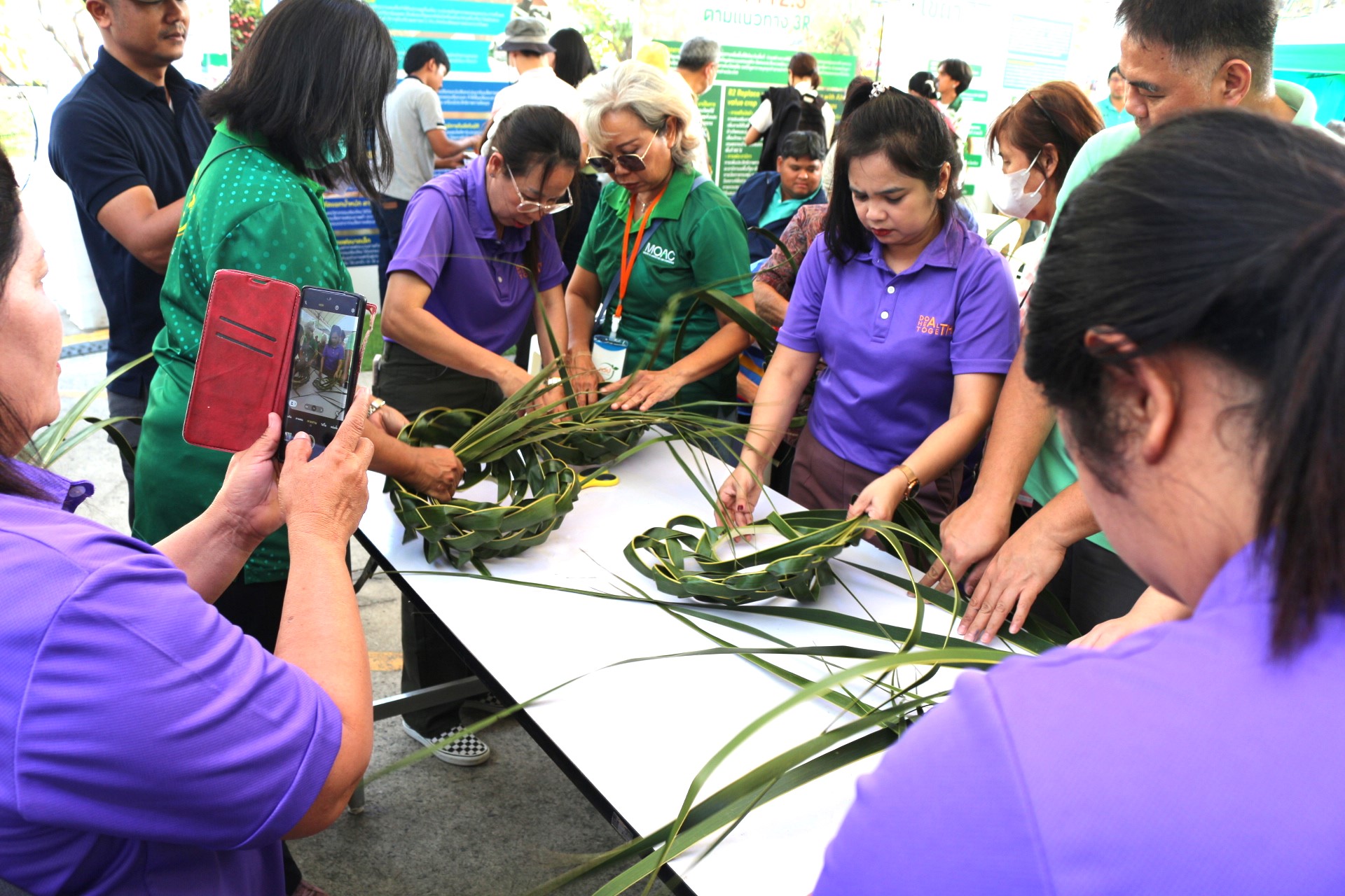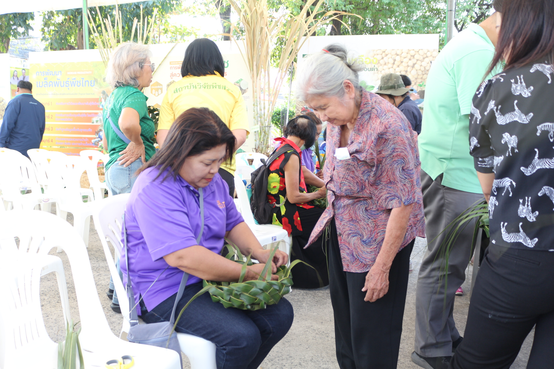 วันที่ 3 กุมภาพันธ์ 2568 สถาบันวิจัยพืชสวน โดย ศูนย์วิจัยพืชสวนชุมพร แสดงผลงานด้านวิจัย เรียนรู้สร้างอาชีพ ต่อยอดเสริมรายได้ จัดกิจกรรมสาธิตการสานหมวกและตะกร้าจากใบมะพร้าว พร้อมลุ้นรับต้นกล้า 1) มะพร้าวแกง พันธุ์ไทยต้นสูงที่ได้จากต้นแม่พันธุ์ดี ผ่านการคัดเลือกตามเกณฑ์ปรับปรุงพันธุ์ และ 2) ต้นกล้ามะพร้าวน้ำหอมจากแปลงวิจัยที่ สวส.ได้รับทุน สวก. ดำเนินการที่ จ.ราชบุรี ในงาน “เผยแพร่ผลงานวิชาการ งานวิจัย และเทคโนโลยีกรมวิชาการเกษตร” ระหว่างวันที่ 31 มกราคม – 8 กุมภาพันธ์ 2568 ณ บริเวณอาคารโภชากร สำนักคุ้มครองพันธุ์พืช กรมวิชาการเกษตร เกษตรกลางบางเขน
