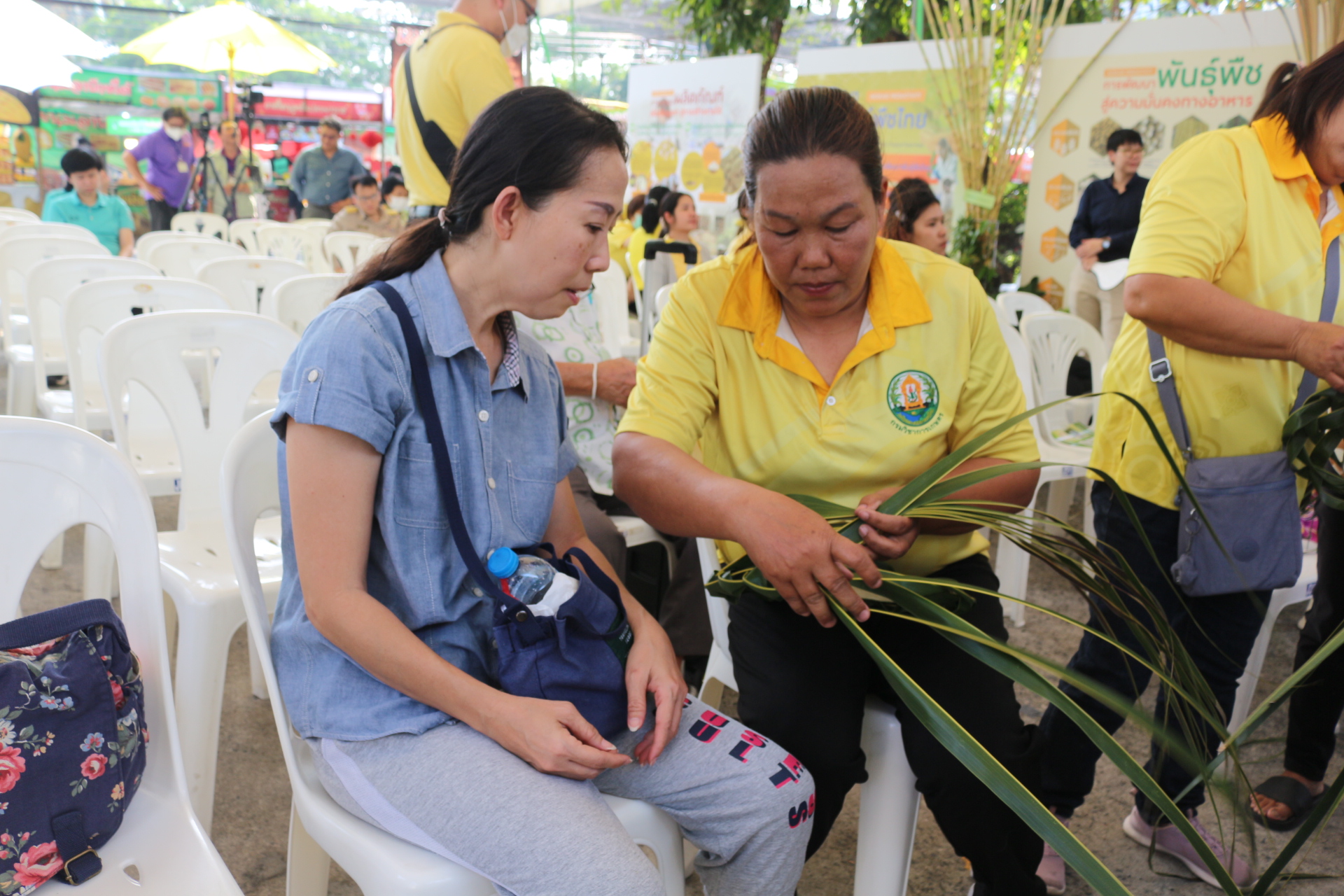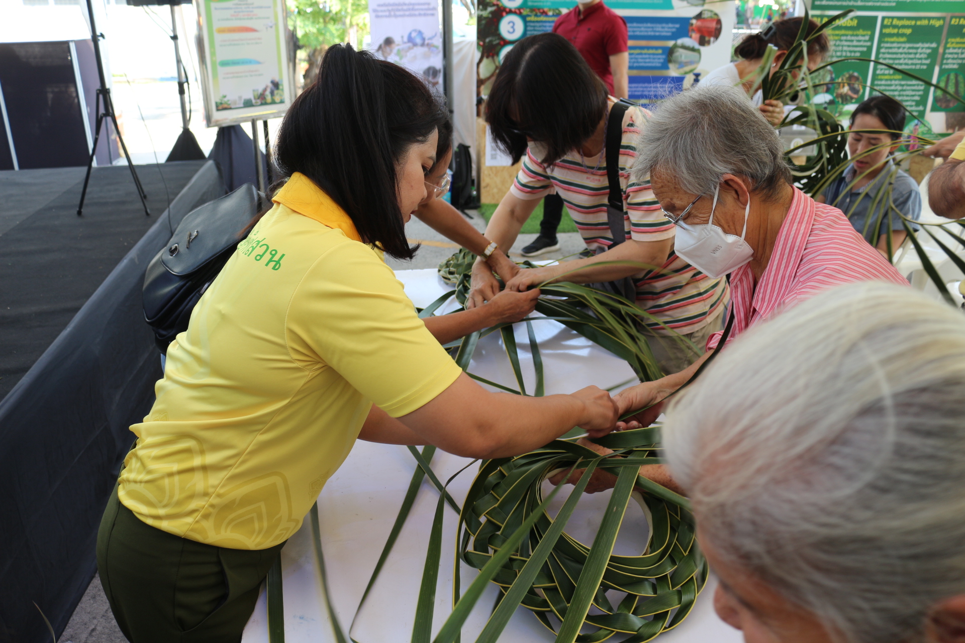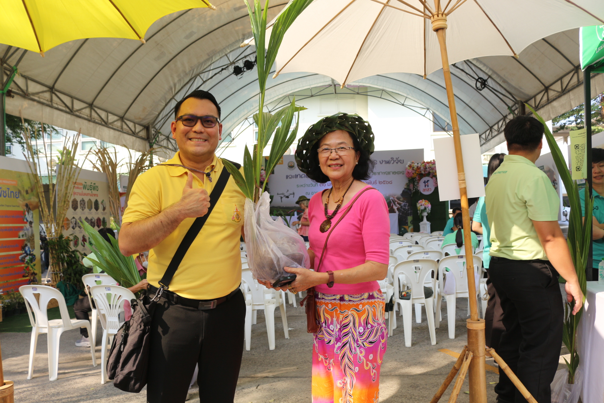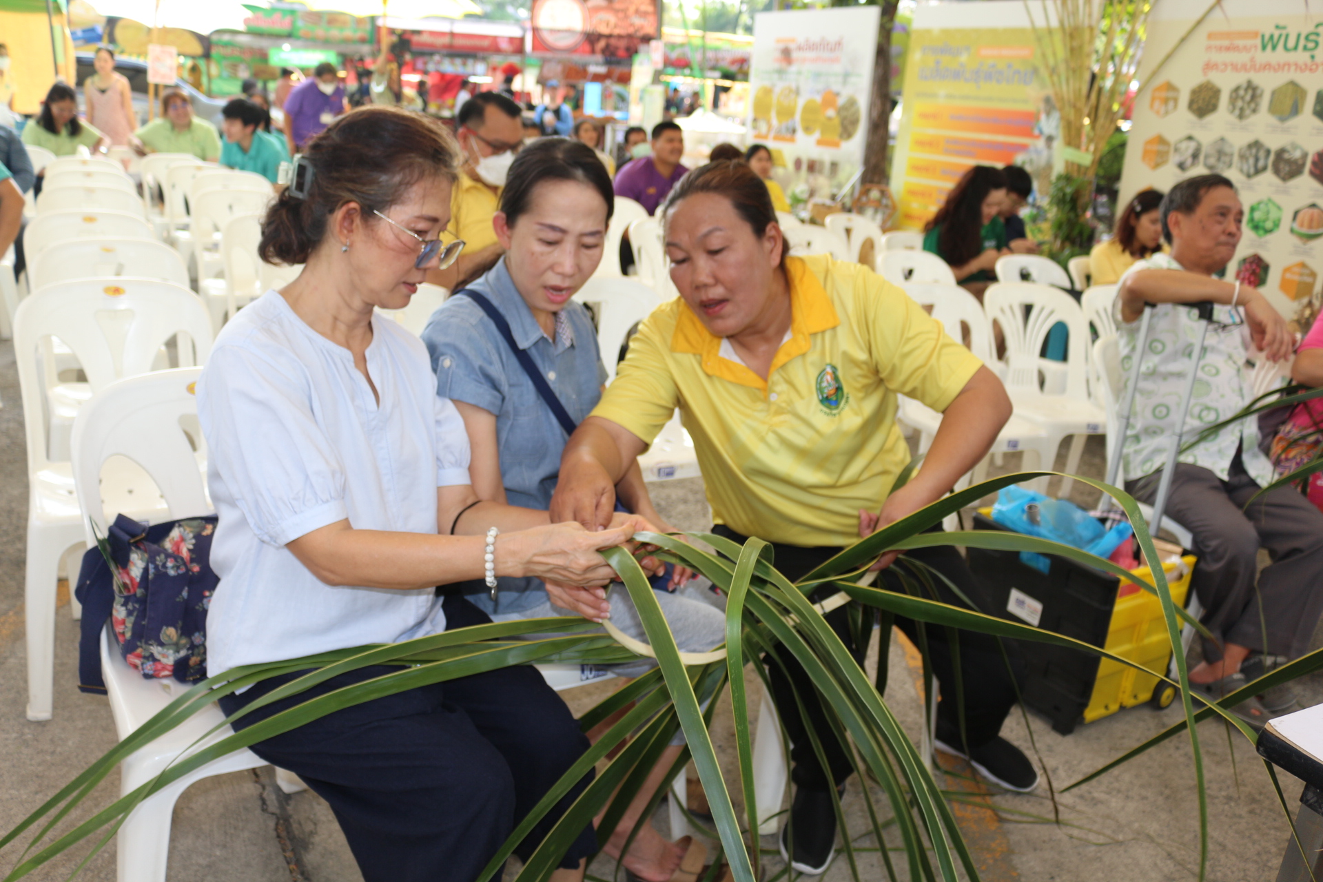 วันที่ 3 กุมภาพันธ์ 2568 สถาบันวิจัยพืชสวน โดย ศูนย์วิจัยพืชสวนชุมพร แสดงผลงานด้านวิจัย เรียนรู้สร้างอาชีพ ต่อยอดเสริมรายได้ จัดกิจกรรมสาธิตการสานหมวกและตะกร้าจากใบมะพร้าว พร้อมลุ้นรับต้นกล้า 1) มะพร้าวแกง พันธุ์ไทยต้นสูงที่ได้จากต้นแม่พันธุ์ดี ผ่านการคัดเลือกตามเกณฑ์ปรับปรุงพันธุ์ และ 2) ต้นกล้ามะพร้าวน้ำหอมจากแปลงวิจัยที่ สวส.ได้รับทุน สวก. ดำเนินการที่ จ.ราชบุรี ในงาน “เผยแพร่ผลงานวิชาการ งานวิจัย และเทคโนโลยีกรมวิชาการเกษตร” ระหว่างวันที่ 31 มกราคม – 8 กุมภาพันธ์ 2568 ณ บริเวณอาคารโภชากร สำนักคุ้มครองพันธุ์พืช กรมวิชาการเกษตร เกษตรกลางบางเขน