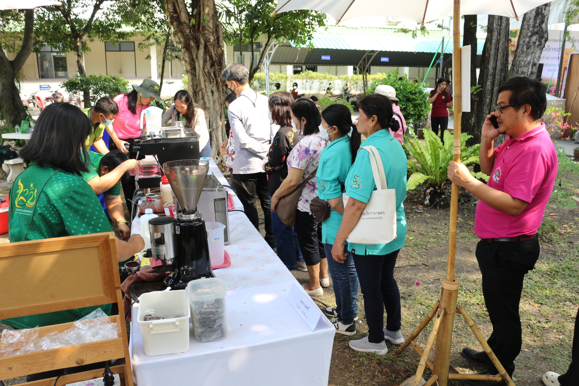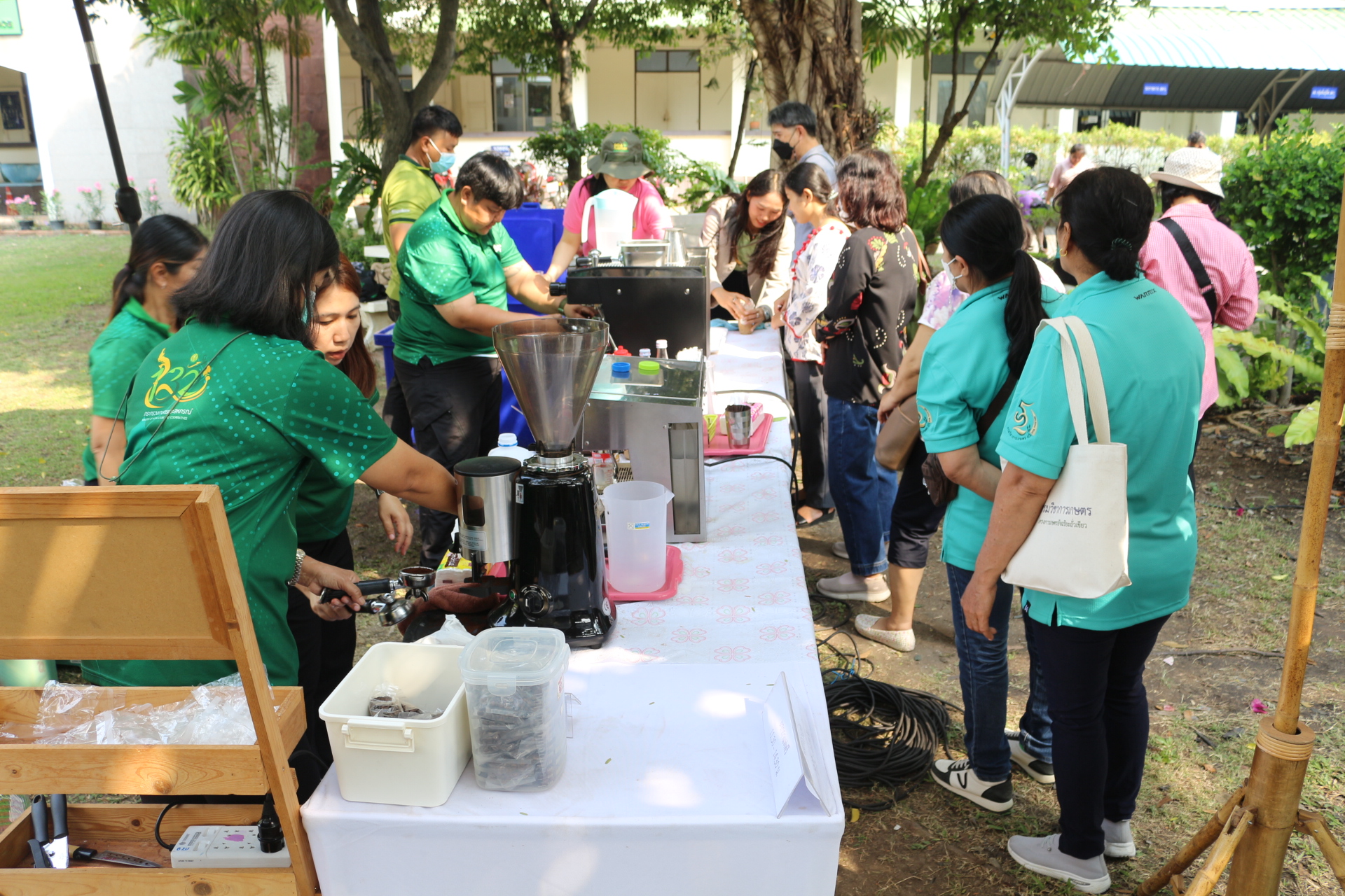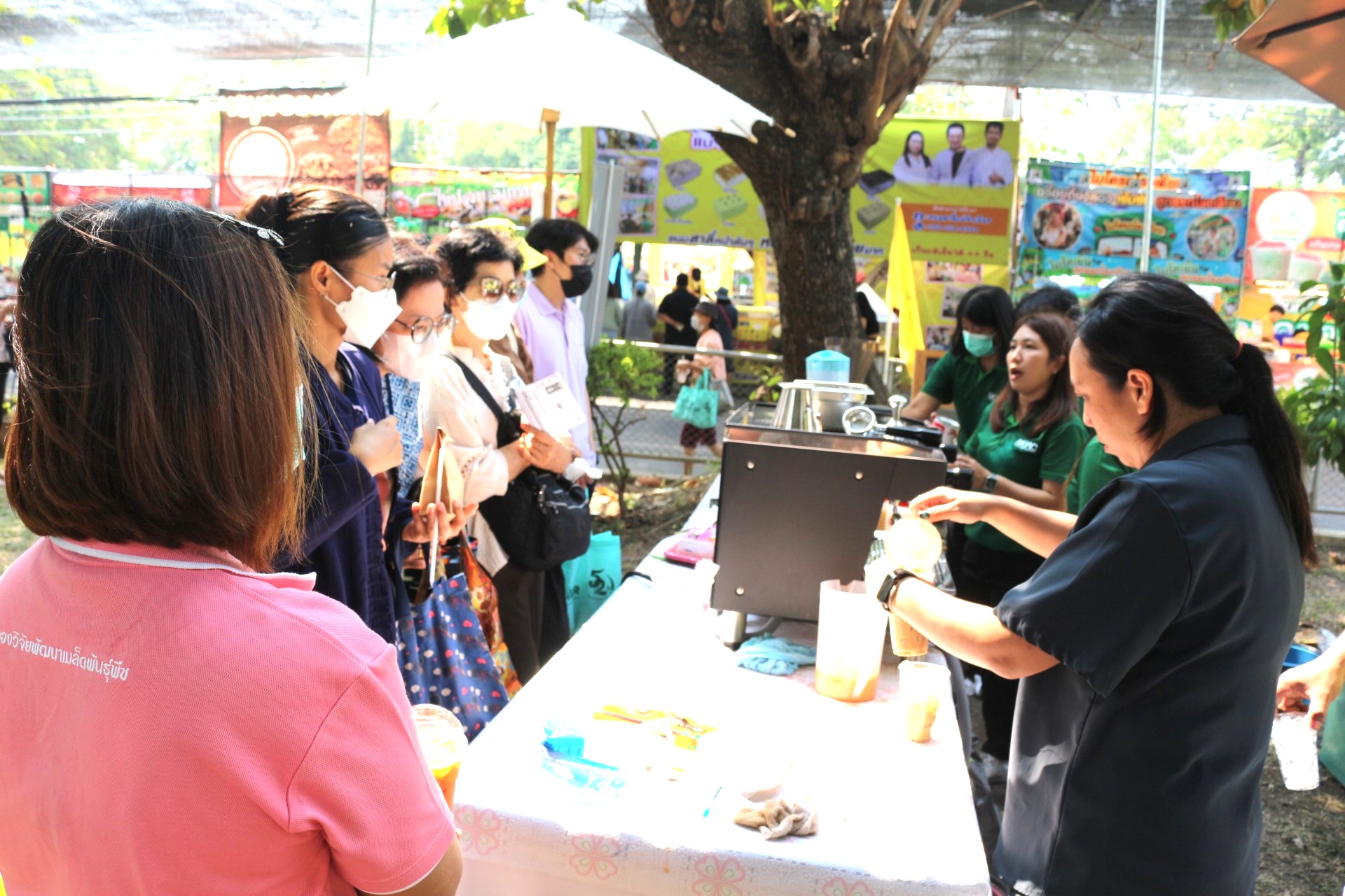 วันที่ 4 กุมภาพันธ์ 2568 สถาบันวิจัยพืชสวน โดย ศูนย์วิจัยพืชสวนศรีสะเกษ บริการเครื่องดื่มกาแฟสด โรบัสตาศรีสะเกษ ชาไทย ชาเขียว นมเย็น ภายในงานโครงการ “เผยแพร่ผลงานวิชาการ งานวิจัย และเทคโนโลยีกรมวิชาการเกษตร” ระหว่างวันที่ 31 มกราคม – 8 กุมภาพันธ์ 2568 ณ บริเวณอาคารโภชากร สำนักคุ้มครองพันธุ์พืช กรมวิชาการเกษตร เกษตรกลางบางเขน