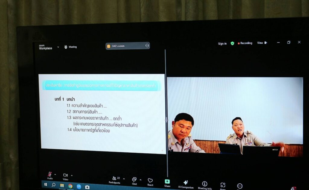 วันที่ 8 เมษายน 2568 นางสาวกาญจนา ทองนะ ผู้อำนวยการสถาบันวิจัยพืชสวน พร้อมด้วยนายอำนวย อรรถลังรอง ผู้เชี่ยวชาญด้านพืชผัก เข้าร่วมประชุมคณะกรรมการแก้ไขปัญหาราคาสินค้าเกษตรตกต่ำ ครั้งที่ 1/2568 ผ่านระบบออนไลน์ด้วยแอปพลิเคชัน Zoom Cloud Meetings ณ สถานที่ตั้งของหน่วยงาน ที่ประชุมได้หารือเกี่ยวกับแนวทางการบริหารจัดการสินค้าเกษตรที่มีความสำคัญ อาทิ ปาล์มน้ำมัน ข้าวโพดเลี้ยงสัตว์ สุกร และกุ้ง เพื่อเตรียมรับมือกับสถานการณ์ราคาตกต่ำที่ส่งผลกระทบต่อเกษตรกรโดยตรง