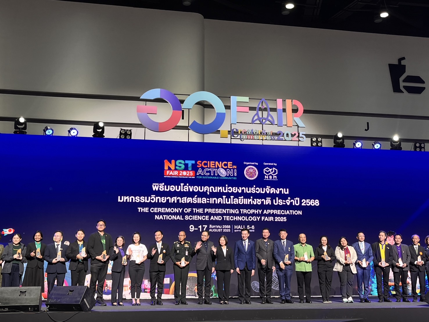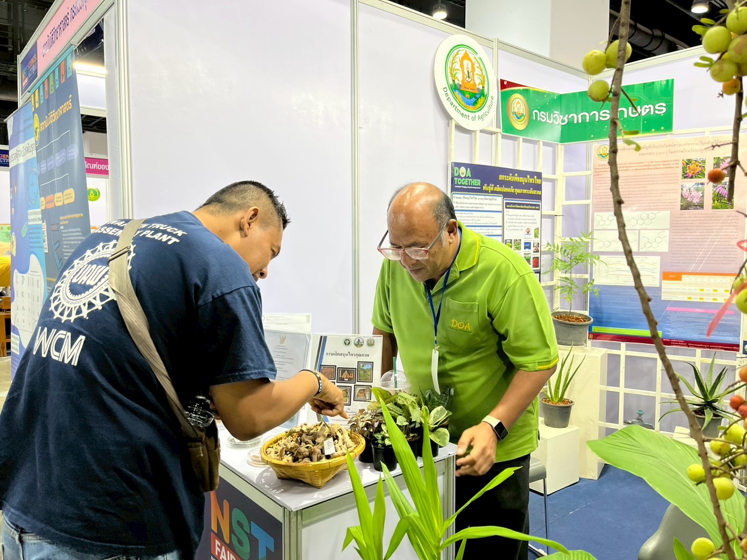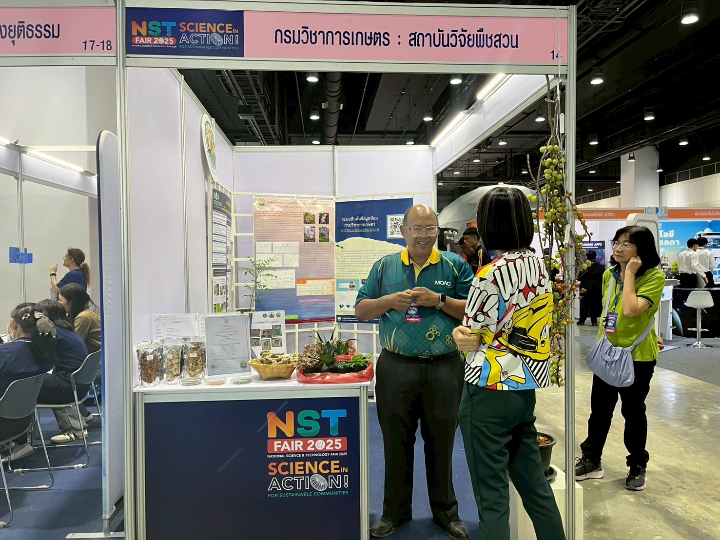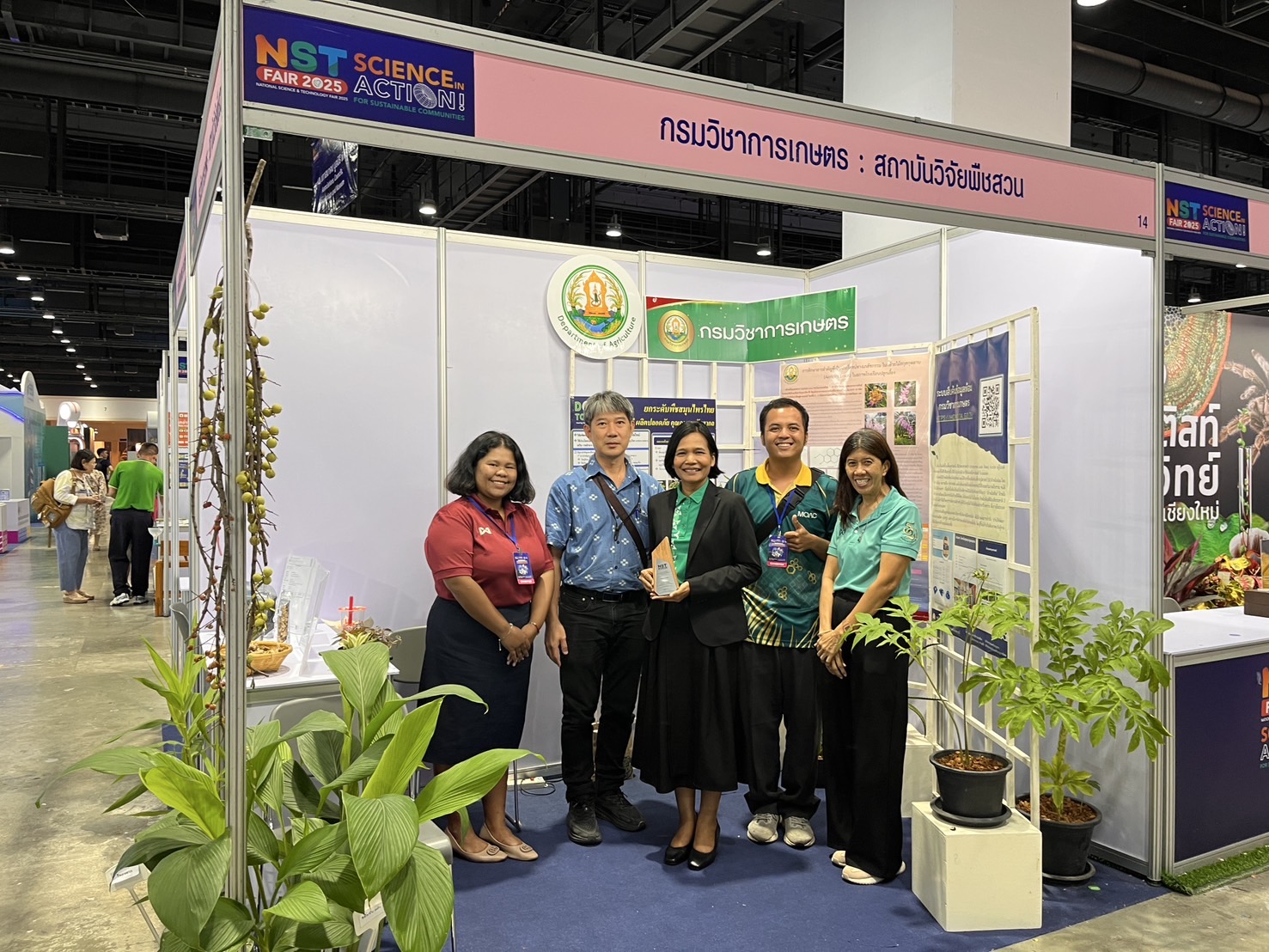 วันที่ 13 สิงหาคม 2568 นางวิลาวัณย์ ใคร่ครวญ รองอธิบดีกรมวิชาการเกษตร มอบหมายให้นางสาวกาญจนา ทองนะ ผู้อำนวยการสถาบันวิจัยพืชสวน เข้าร่วมพิธีมอบโล่ขอบคุณแก่หน่วยงานที่ให้การสนับสนุนและร่วมจัดงาน “มหกรรมวิทยาศาสตร์และเทคโนโลยีแห่งชาติ ประจำปี 2568” ณ เวทีกลาง ชั้น G อาคาร 2 ศูนย์ประชุมแห่งชาติสิริกิติ์ กรุงเทพมหานคร โดยมี ศาสตราจารย์ ดร.ศุภชัย ปทุมนากุล ปลัดกระทรวงอุดมศึกษา วิทยาศาสตร์ วิจัยและนวัตกรรม เป็นประธานในพิธีและกล่าวขอบคุณหน่วยงานที่เข้าร่วมจัดนิทรรศการ