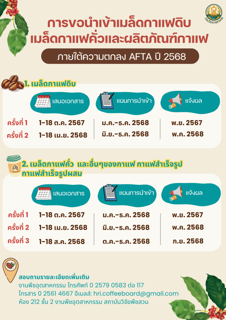 การขอนำเข้าเมล็ดกาแฟดิบ และผลิตภัณฑ์กาแฟ ปี2568