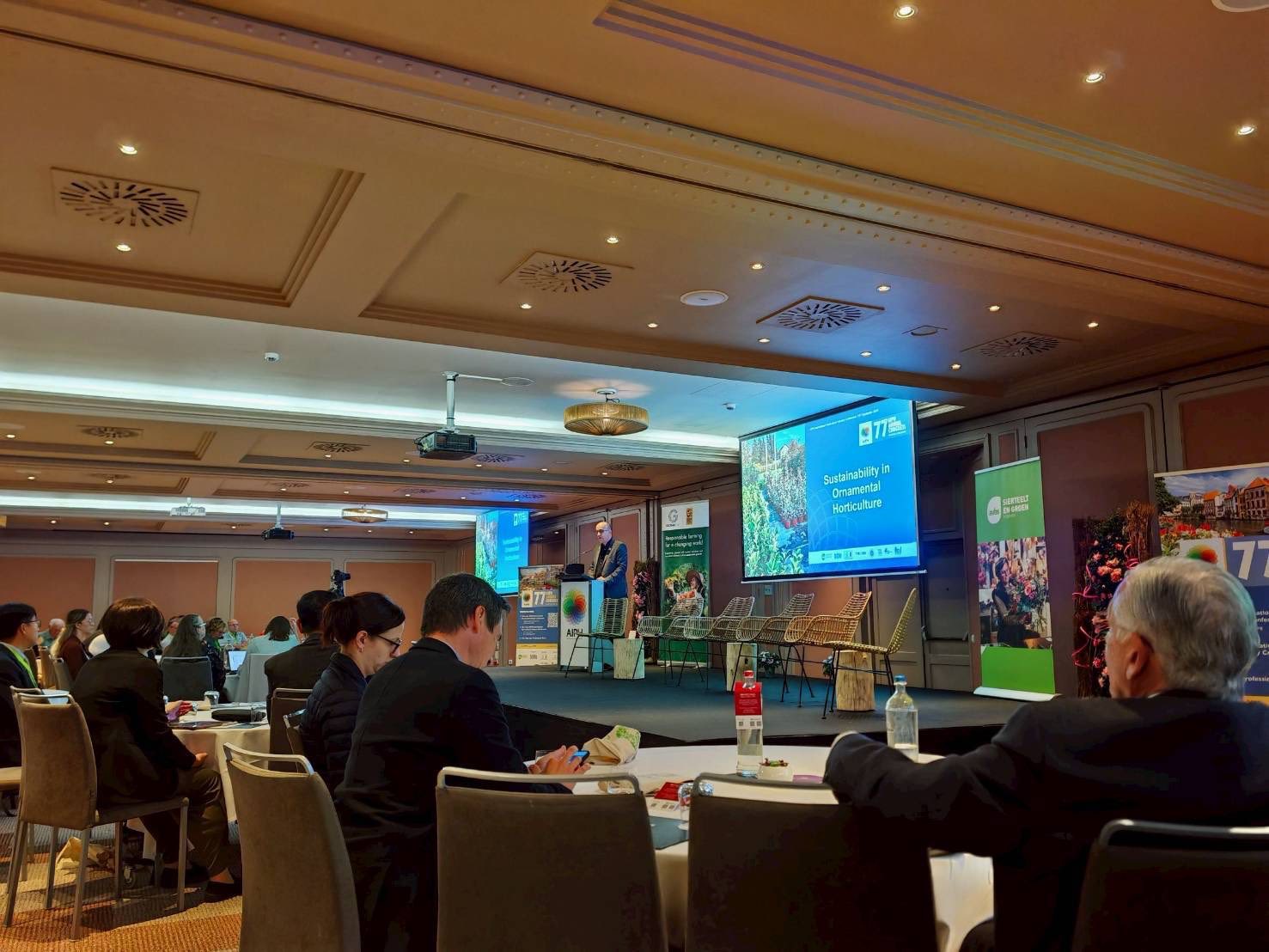 วันที่ 16-17 กันยายน 2568 นายรพีภัทร์ จันทรศรีวงศ์ อธิบดีกรมวิชาการเกษตร มอบหมายให้ นายเสกสรรค์ วรรณกรี สำนักวิจัยและพัฒนาการเกษตรเขตที่ 3 พร้อมด้วยนางสาวกาญจนา ทองนะ ผู้อำนวยการสถาบันวิจัยพืชสวน และคณะผู้แทนกรมวิชาการเกษตรเข้าร่วมประชุม : AIPH International Horticultural Industry Conference ซึ่งเป็นส่วนหนึ่งของการประชุม 77th AIPH Annual Congress ของสมาคมพืชสวนระหว่างประเทศ (AIPH) โดยเข้าร่วมฟังการบรรยายในหัวข้อต่างๆ จากผู้เชี่ยวชาญ เกี่ยวกับงานด้านอุตสาหกรรมพืชสวน เช่น Sustainability in Ornamental Horticulture by Global G.A.P. , A Global Sustainability Perspective พร้อมทั้งเยี่ยมชมบริษัท Anjers De Nijs ซึ่งผลิตดอกคาร์เนชั่นเพื่อส่งออกด้วยระบบโรงเรือนอัจฉริยะ ศูนย์วิจัย Viaverda ที่มีการวิจัยและพัฒนาด้านพืชสวนเน้นไม้ดอกไม้ประดับ ในระบบโรงเรือนและนอกโรงเรือน เทคโนโลยีการผลิตที่เป็นมิตรกับสิ่งแวดล้อมและเน้นความยั่งยืน รวมทั้งสายพันธุ์ที่หลากหลาย และบริษัท Fleur ซึ่งเป็นบริษัทเพาะปลูกไม้ดอกไม้ประดับแบบครบวงจร วางขายแบบออนไลน์และขายส่งเพื่อการจัดภูมิทัศน์ ณ เมืองเกนต์ ราชอาณาจักรเบลเยียม