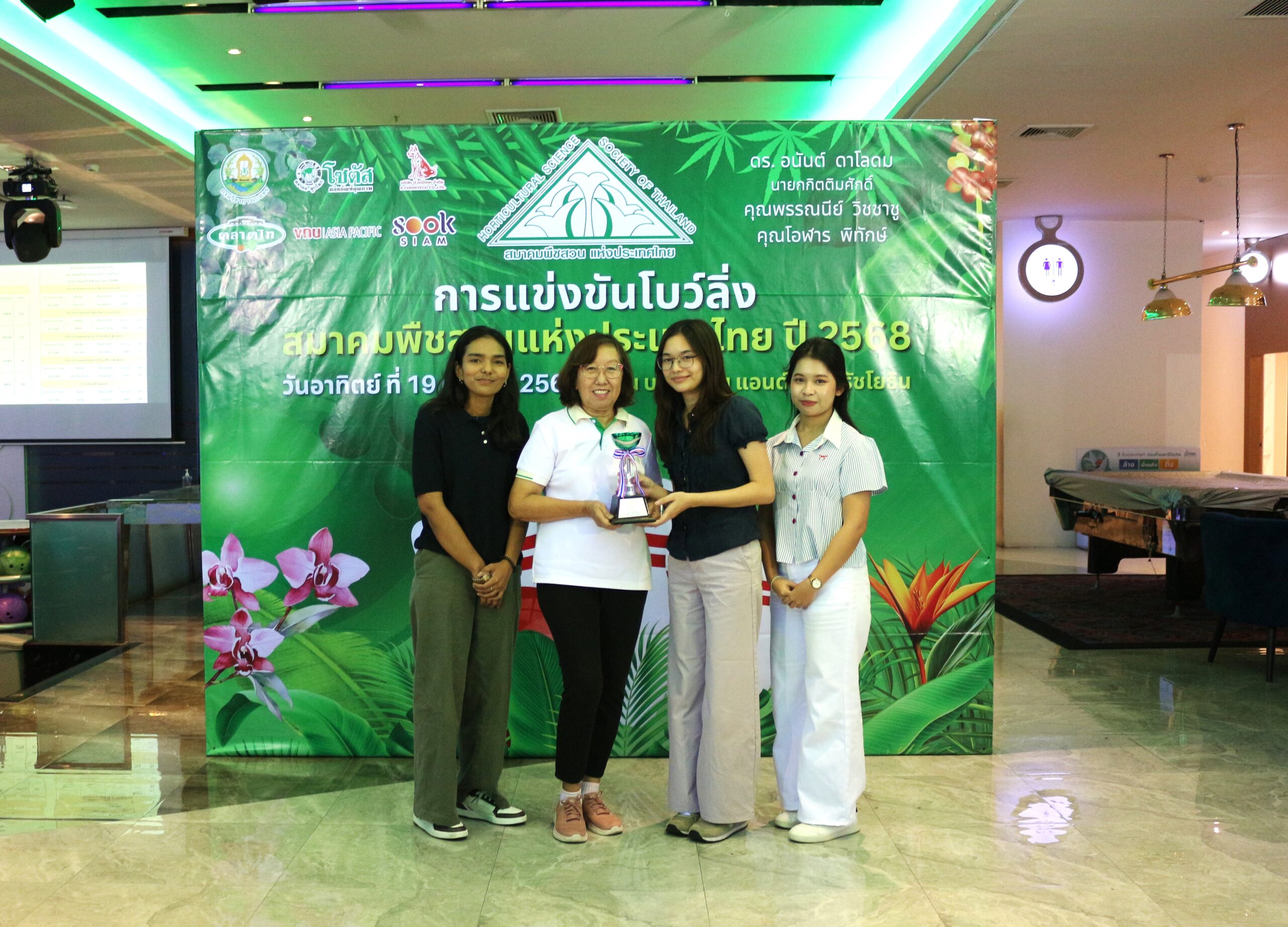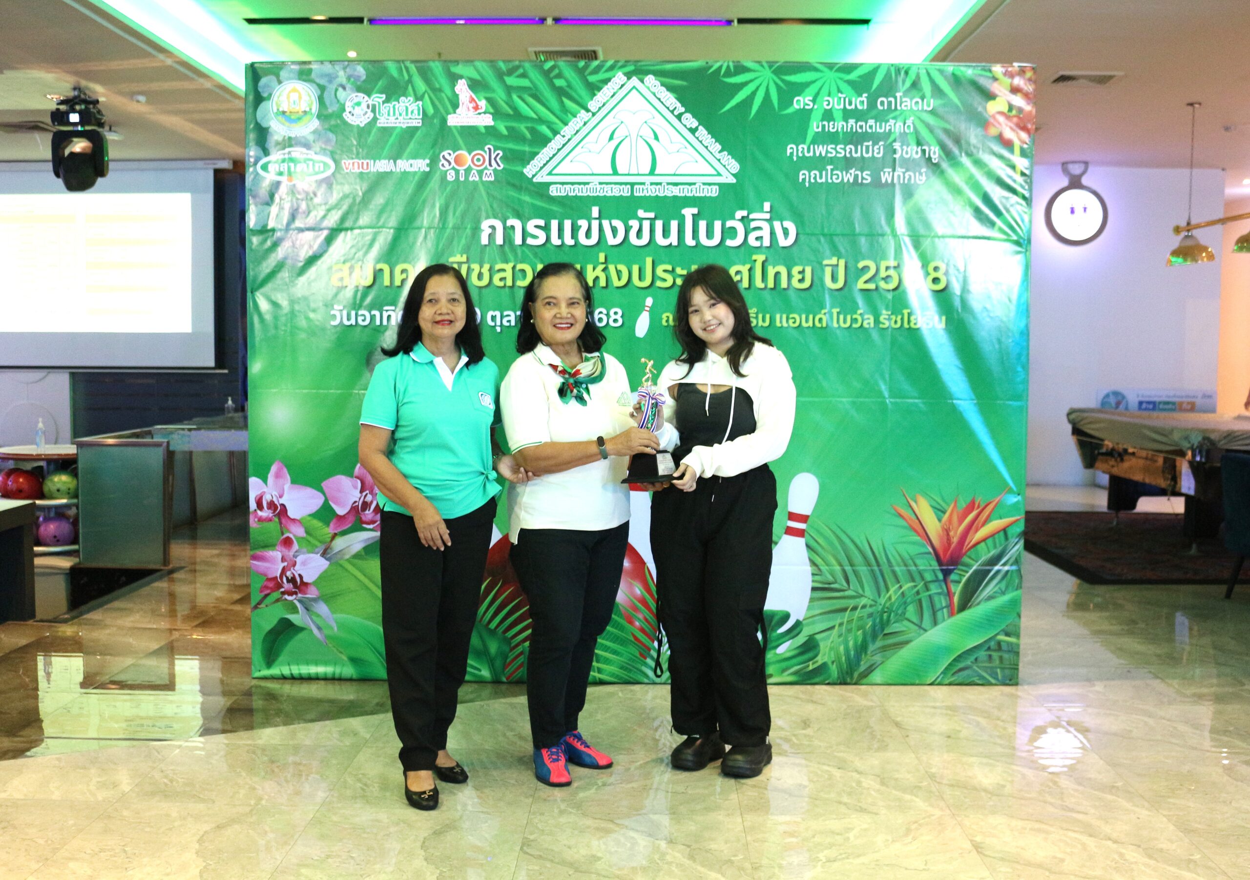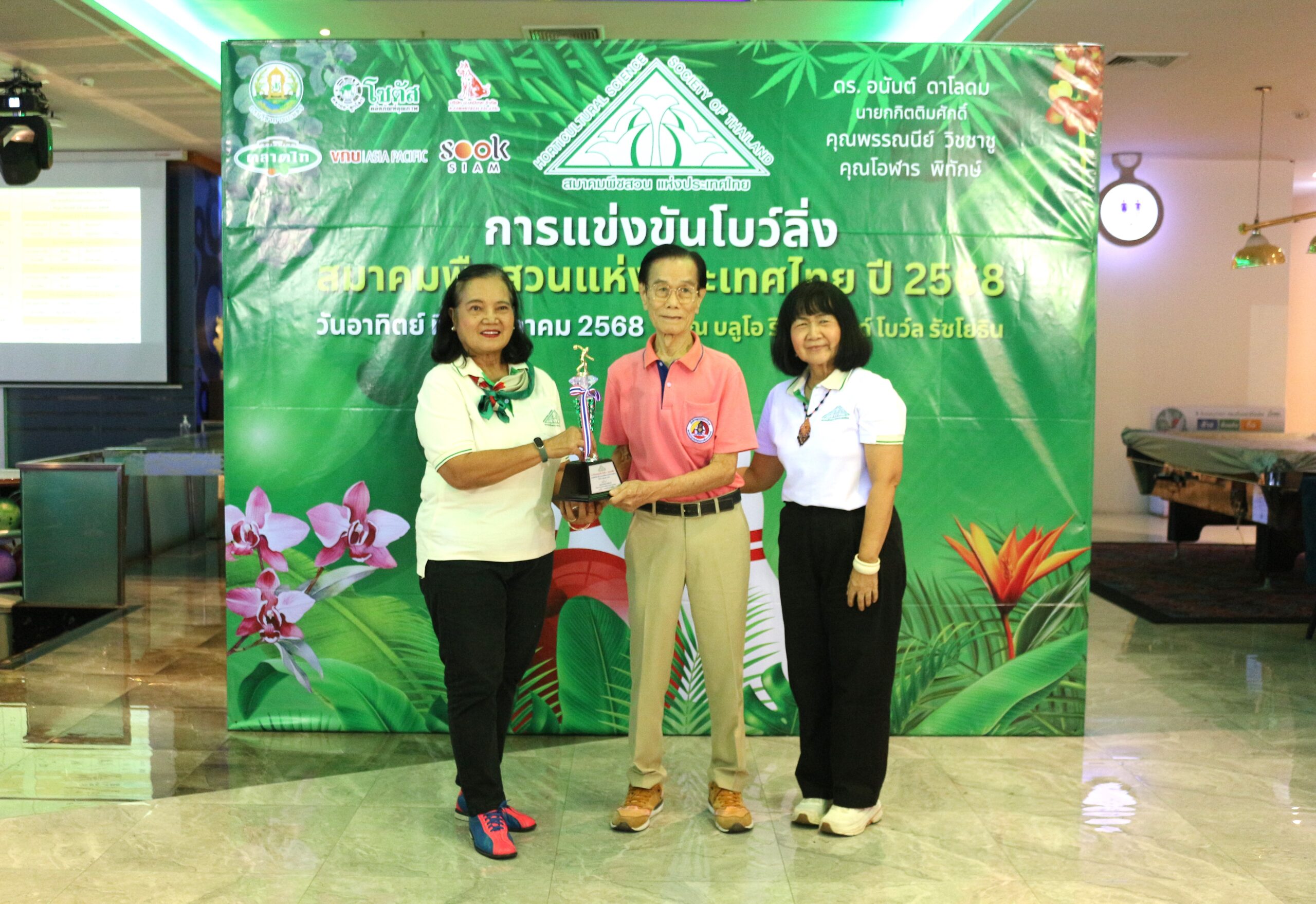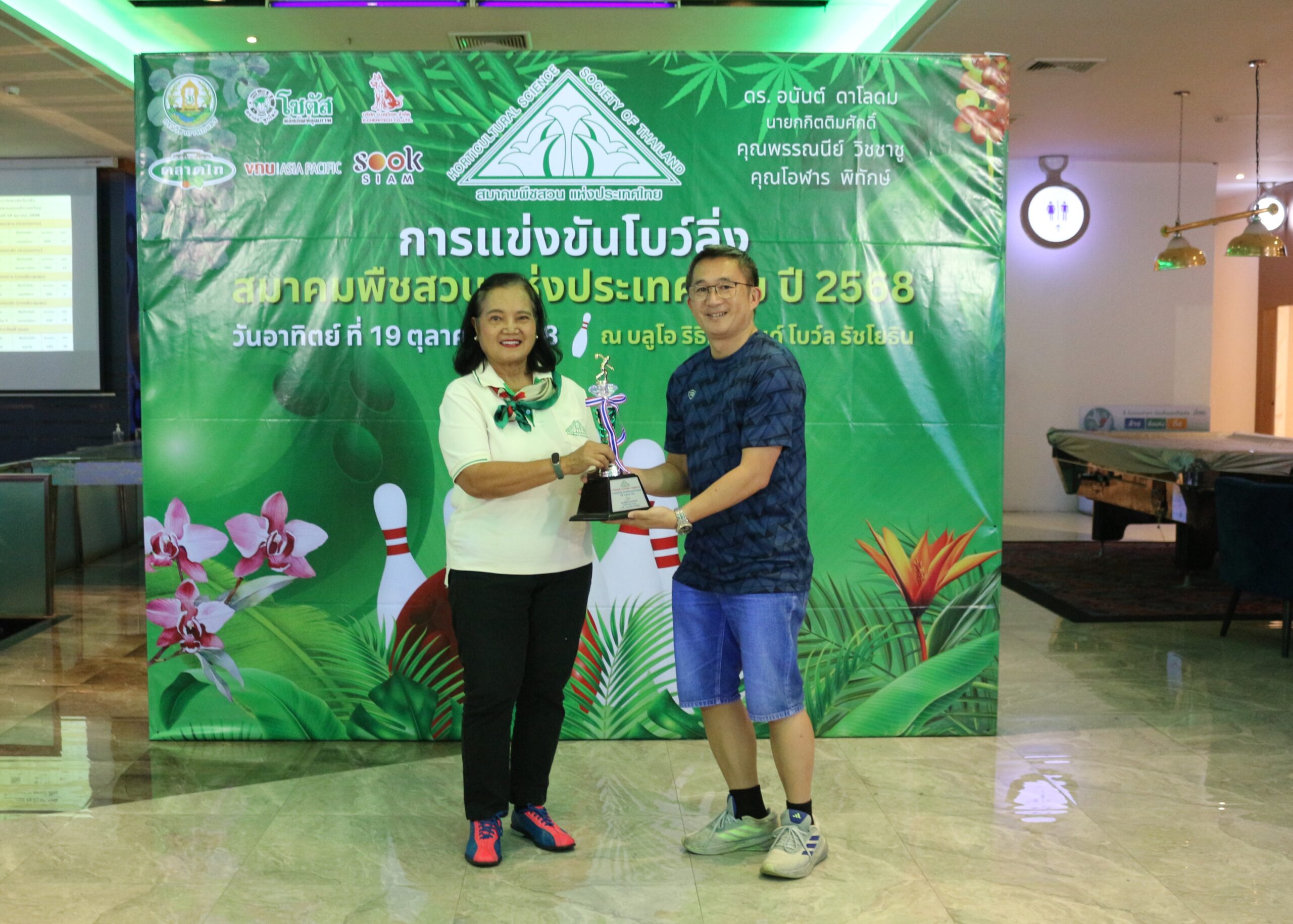 วันที่ 19 ตุลาคม 2568 นางสาวกาญจนา ทองนะผู้อำนวยการสถาบันวิจัยพืชสวน ร่วมพิธีเปิดการแข่งขันโบว์ลิ่งการกุศล ซึ่งสมาคมพืชสวนแห่งประเทศไทย จัดการแข่งขันโบว์ลิ่งการกุศล ณ บลูโอ ริธึม แอนด์ โบว์ล รัชโยธิน โดยได้รับเกียรติจาก ดร.อนันต์ ดาโลดม นายกกิตติมศักดิ์สมาคมพืชสวนแห่งประเทศไทย เป็นประธานเปิดการแข่งขัน และนางกนกรัตน์ สิทธิพจน์ รักษาการนายกสมาคมพืชสวนแห่งประเทศไทย กล่าวรายงาน พร้อมด้วยนางปิยนุช นาคะ ที่ปรึกษากรมวิชาการเกษตรด้านพืชสวนอุตสาหกรรม และเลขาธิการสมาคมฯ กรรมการสมาคมฯ หน่วยงานภาครัฐและเอกชน และสมาชิกสมาคมพืชสวนแห่งประเทศไทย เข้าร่วมกิจกรรมอย่างคับคั่ง การจัดการแข่งขันโบว์ลิ่งการกุศลในครั้งนี้ มีวัตถุประสงค์เพื่อหารายได้สนับสนุนกิจกรรมของสมาคมพืชสวนแห่งประเทศไทยในการพัฒนาวงการพืชสวน ส่งเสริมสุขภาพและพลานามัยของสมาชิก รวมถึงสร้างความสัมพันธ์อันดีระหว่างสมาคมฯ กับหน่วยงานต่าง ๆผลการแข่งขัน มีดังนี้