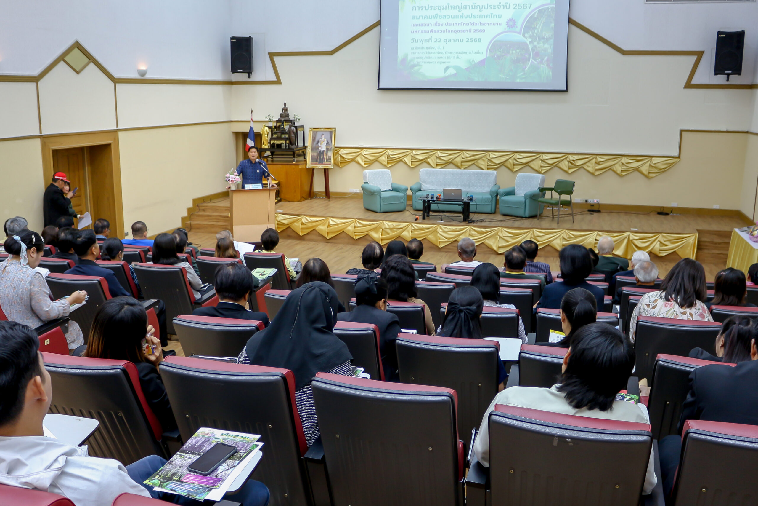 วันที่ 22 ตุลาคม 2568 นายรพีภัทร์ จันทรศรีวงศ์ อธิบดีกรมวิชาการเกษตร เป็นประธานเปิดการประชุมใหญ่สามัญประจำปี 2567 ของสมาคมพืชสวนแห่งประเทศไทย พร้อมร่วมเสวนาในหัวข้อ “ประเทศไทยได้อะไรจากงานมหกรรมพืชสวนโลก อุดรธานี 2569”ณ ห้องประชุมใหญ่ อาคารกองวิจัยและพัฒนาวิทยาการหลังการเก็บเกี่ยวและแปรรูปผลิตผลเกษตร กรมวิชาการเกษตร ในการนี้ นางกนกรัตน์ สิทธิพจน์ รักษาการนายกสมาคมพืชสวนแห่งประเทศไทย กล่าวรายงานวัตถุประสงค์ของการจัดประชุมและการเปิดเวทีเสวนา