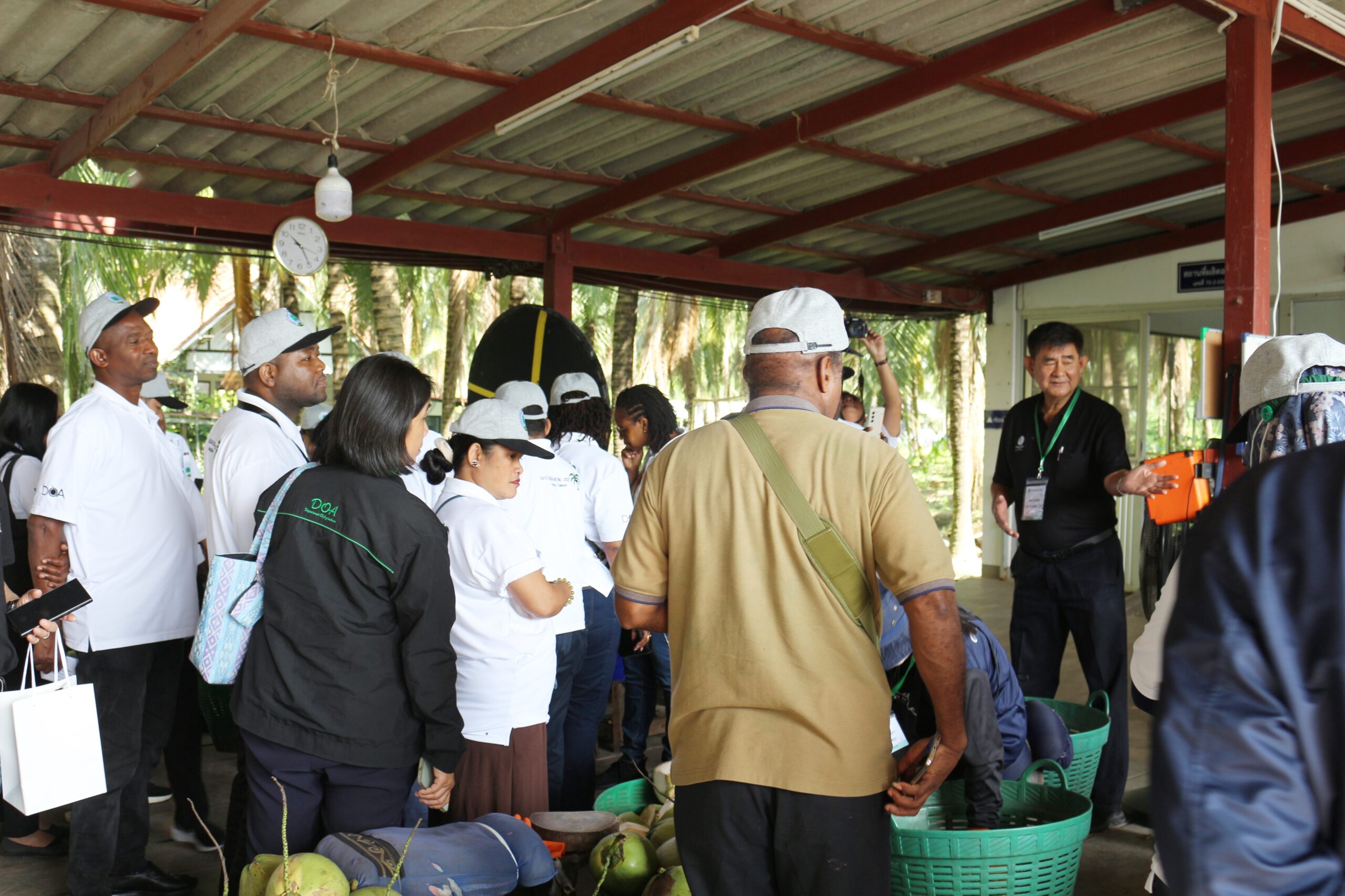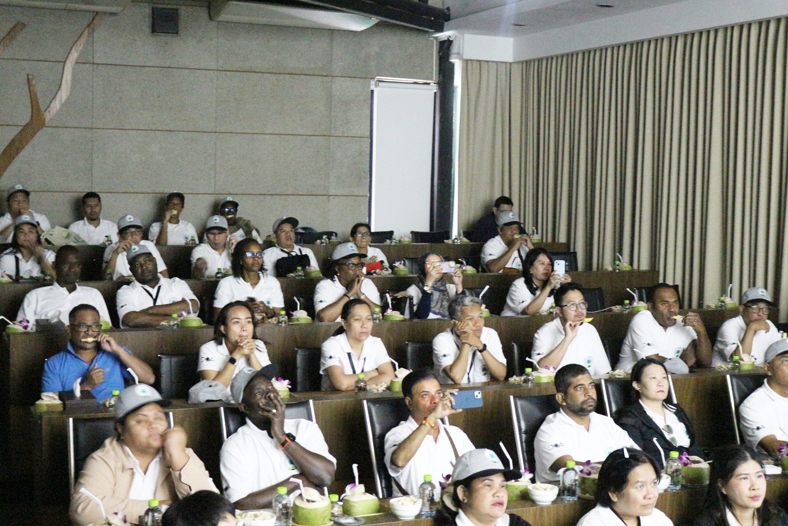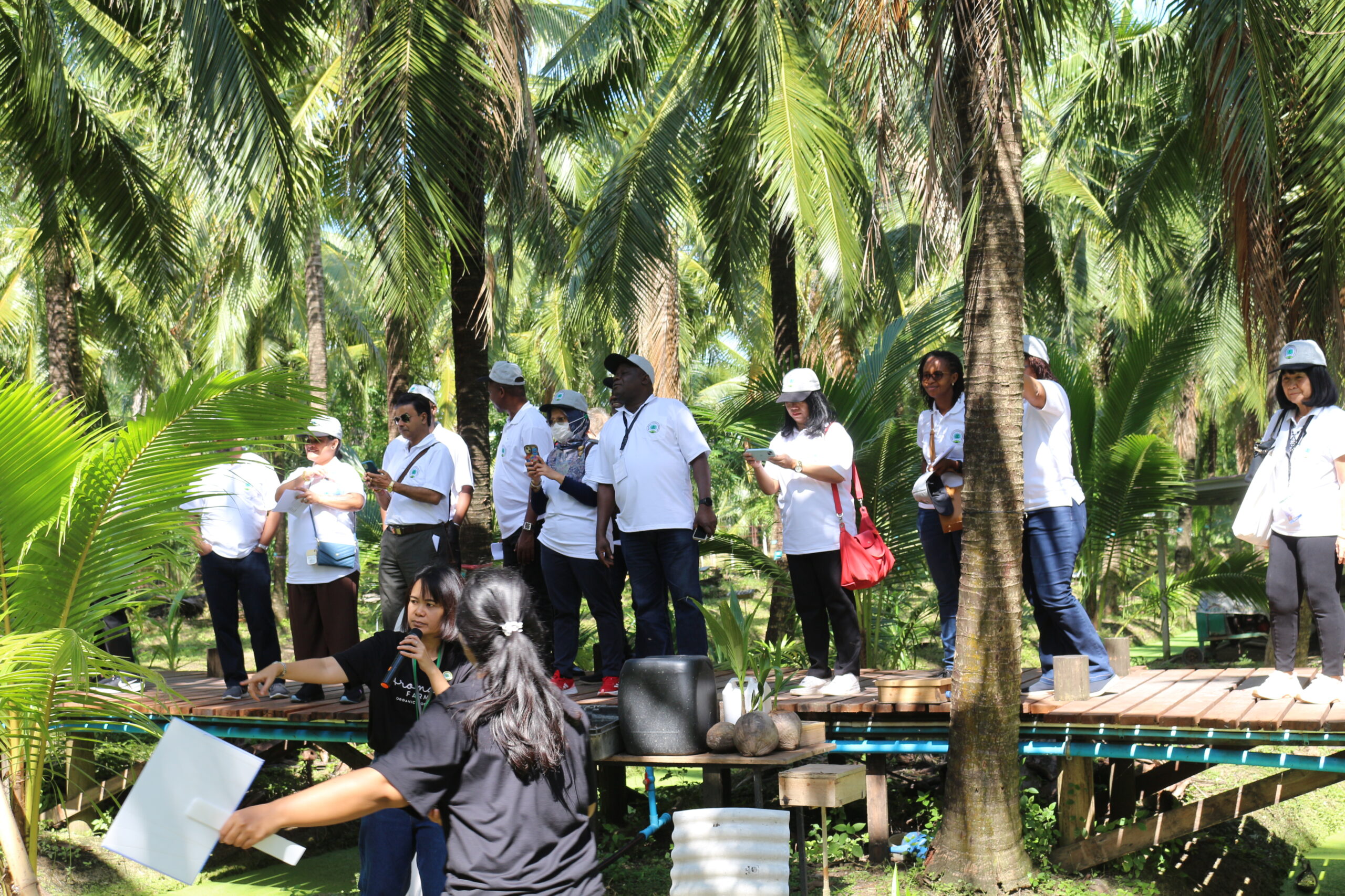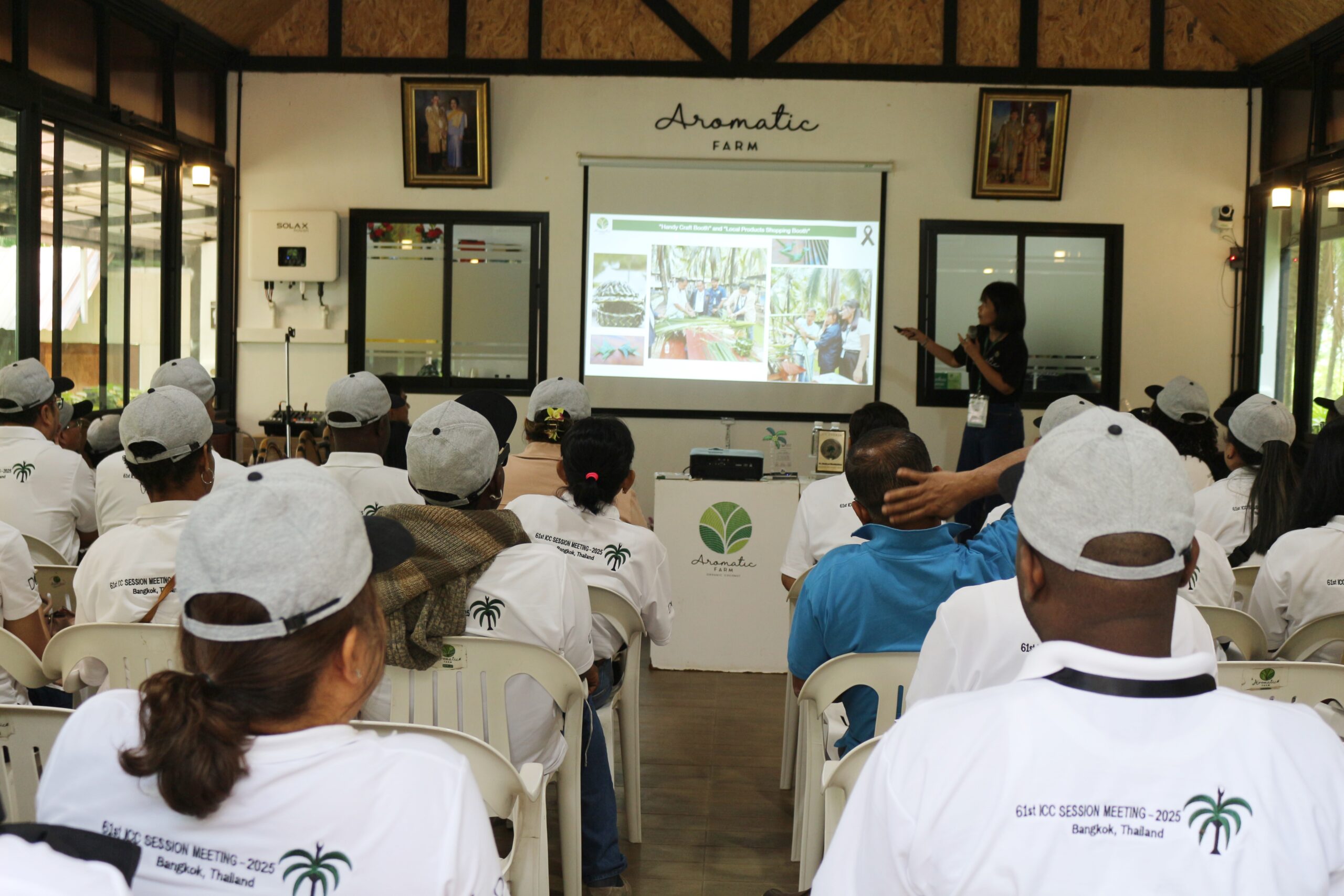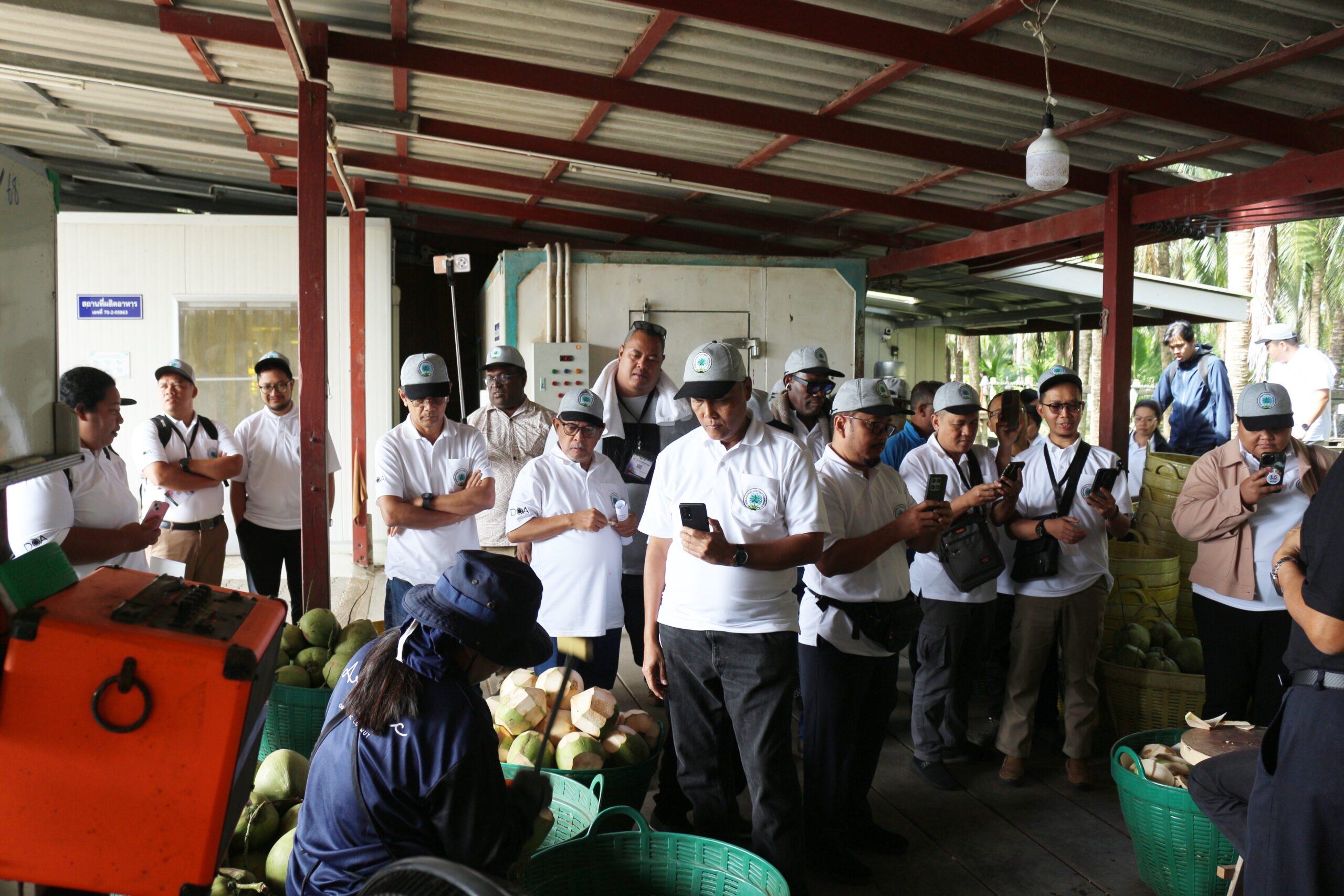 ข่าวกิจกรรม พ.ย. 24 2568 ประชุมคณะกรรมการบริหารชมรมมะพร้าวนานาชาติ ครั้งที่ 61 (The 61st ICC Session 2025) วันที่สี่ วันที่ 21 พฤศจิกายน 2568 คณะผู้จัดประชุมจากสถาบันวิจัยพืขสวนและศูนย์วิจัยและพัฒนาการเกษตรราชบุรีได้นำผู้เข้าร่วมประชุม ไปดูงาน การจัดการสวนมะพร้าวน้ำหอมเชิงฟื้นฟู ที่สวนอะโรมาติกฟาร์ม จังหวัดราชบุรี ในช่วงเช้า โดยผู้เข้าร่วมประชุม ได้ชมการตัดแต่งมะพร้าวน้ำหอมและการแพคบรรจุ เพื่อจำหน่ายในรูปแบบมะพร้าวผลสด และการใช้ประโยชน์จากวัสดุเหลือใช้ในสวน โดยการทำเป็นถ่านไบโอชาร์ และการนำไปต่อยอดโดยเป็นส่วนผสมของซีเมนต์ ทำผลิตภัณฑ์ปูพื้น และกระถางต้นไม้จิ๋ว จากนั้นในช่วงบ่าย คณะผู้จัดฯ ได้นำคณะผู้เข้าร่วมประชุม ไปชมการแปรรูป กะทิ และน้ำมะพร้าว ที่โรงงานของบริษัท ไทยโคโคนัท จำกัด (มหาชน) จังหวัดราชบุรี 14 FacebookFacebookXTwitterLINELine Admin Thittayaphon 0 Comments
