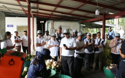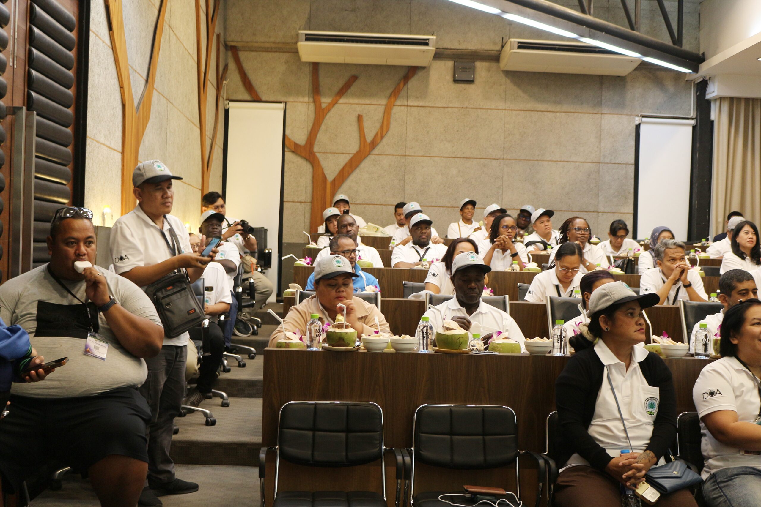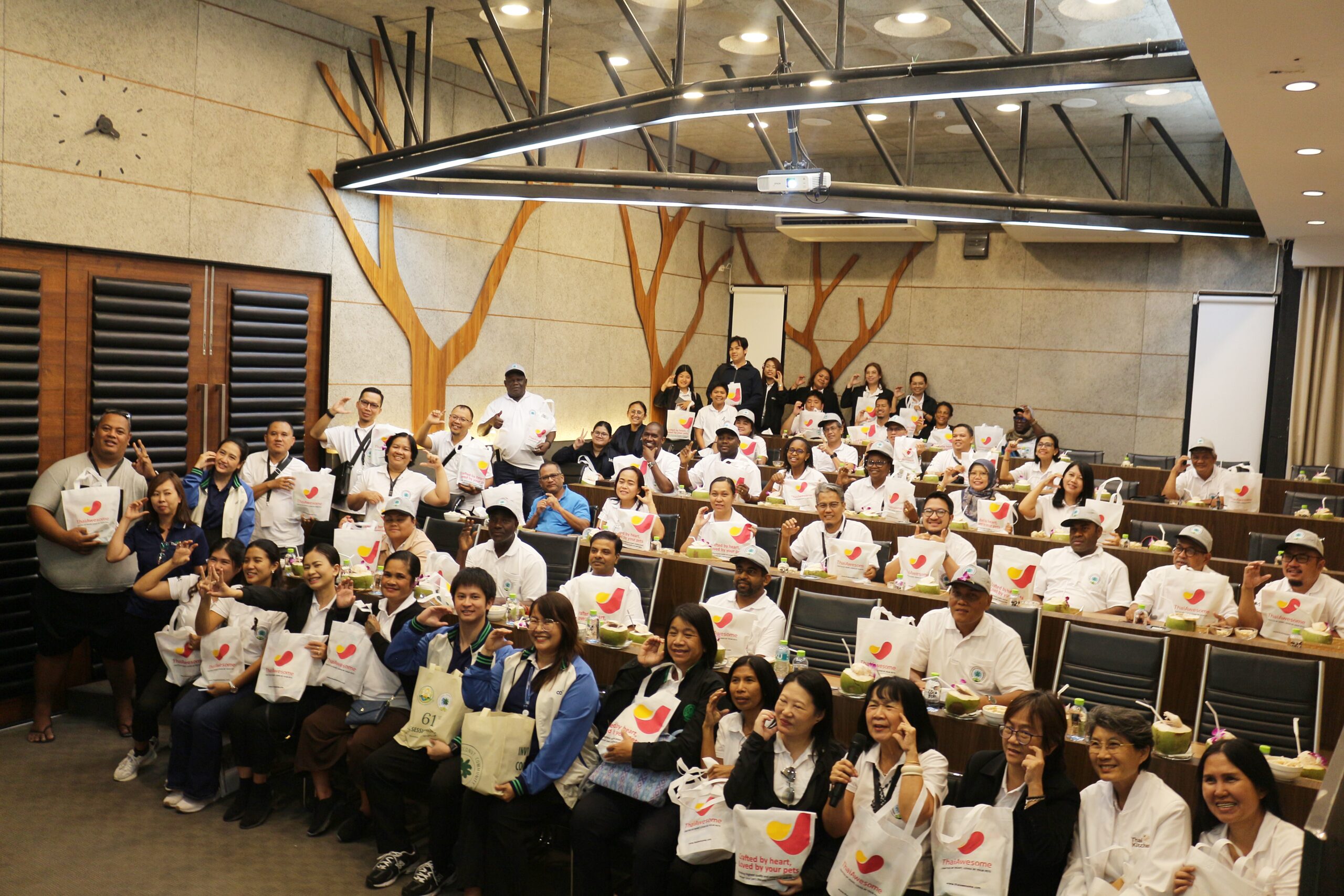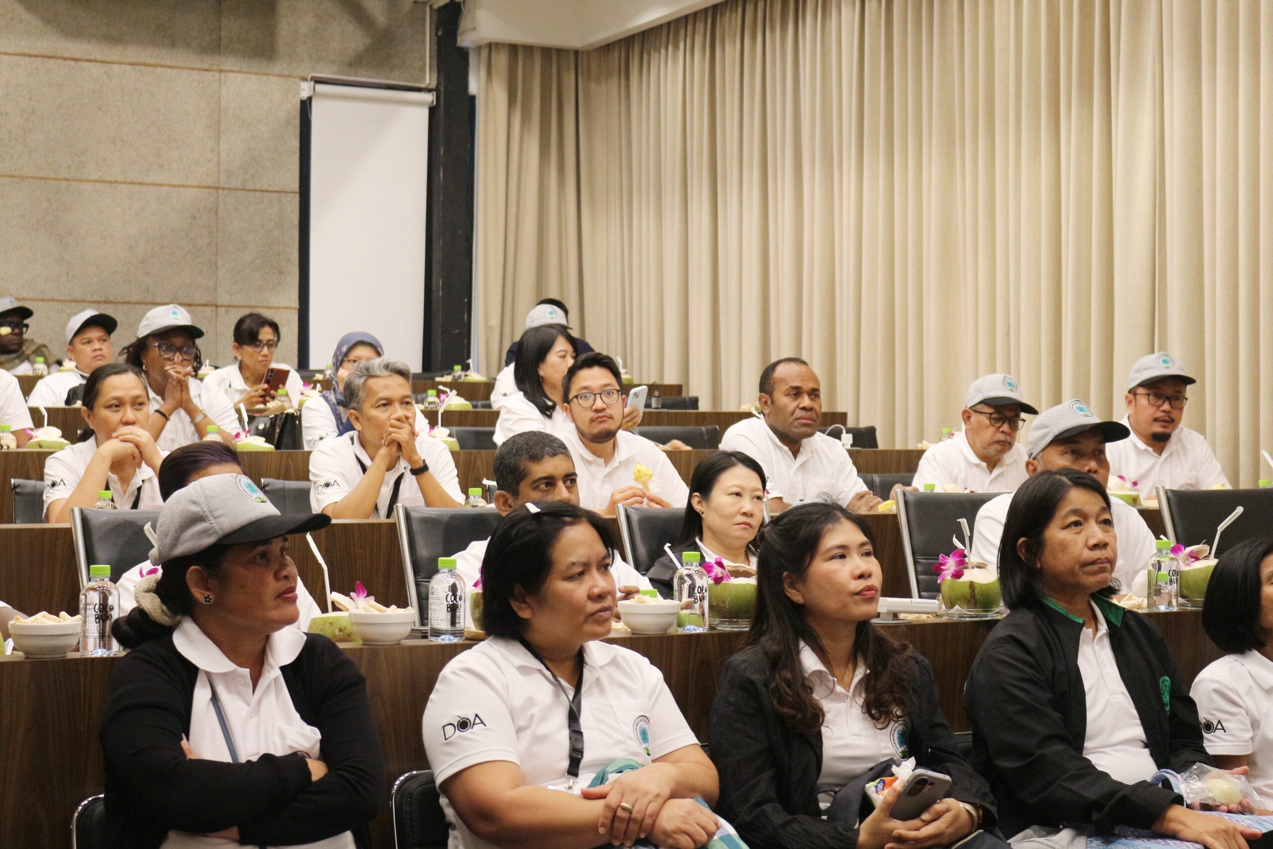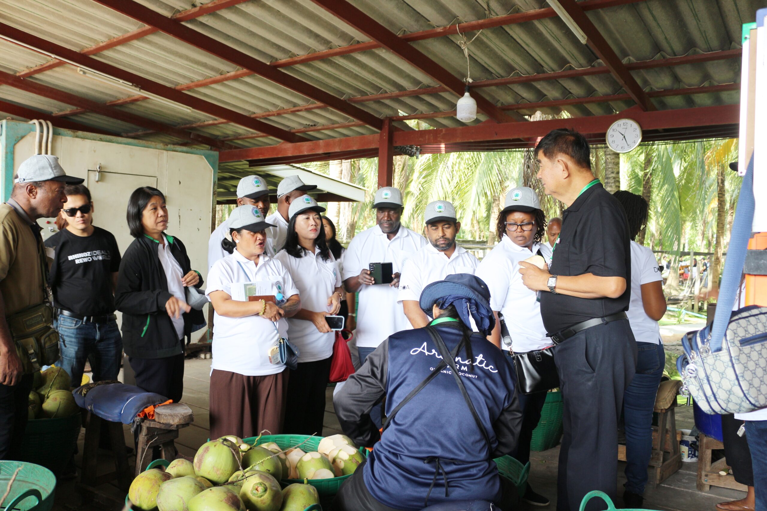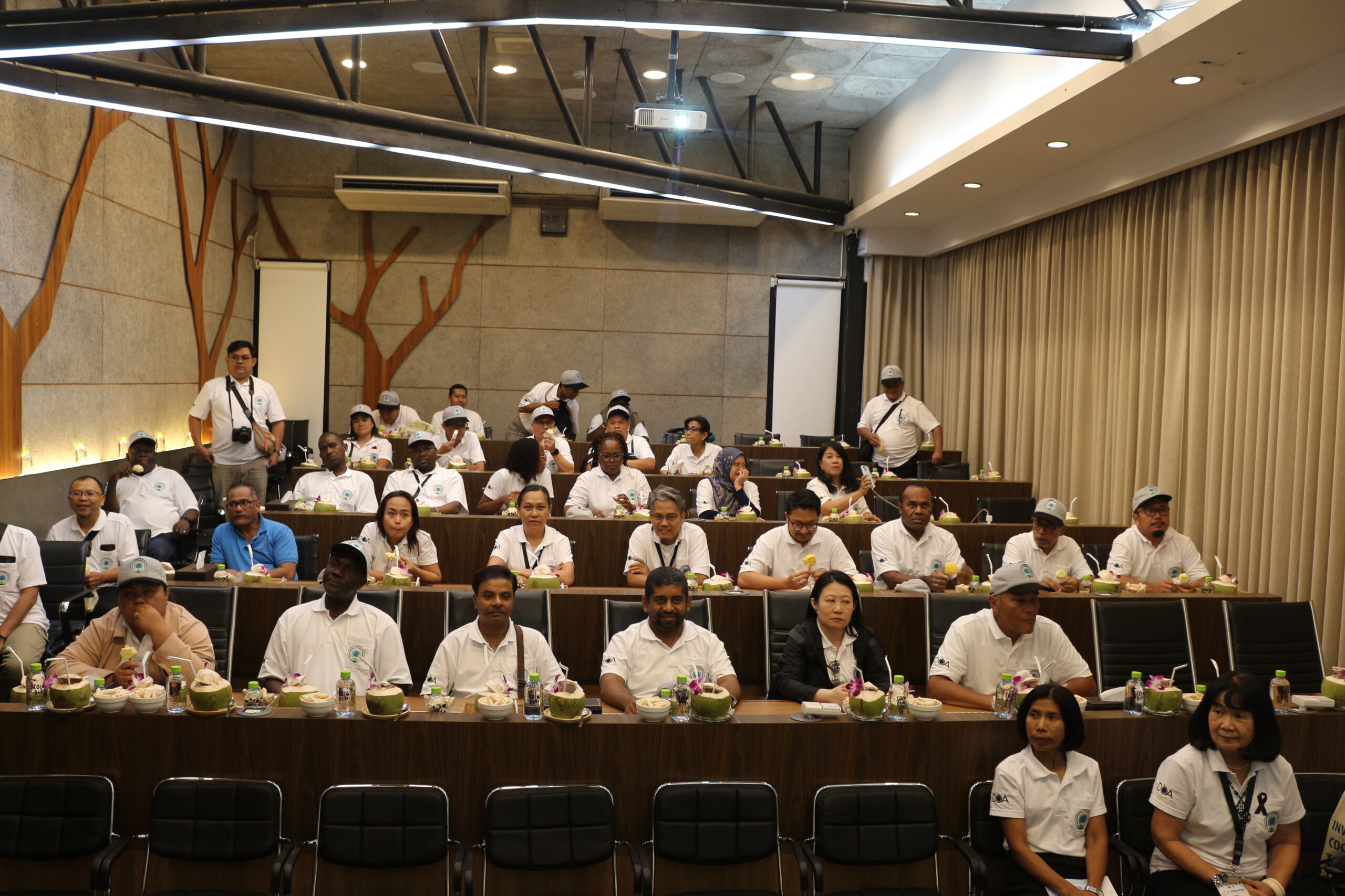 ข่าวกิจกรรม พ.ย. 24 2568 ประชุมคณะกรรมการบริหารชมรมมะพร้าวนานาชาติ ครั้งที่ 61 (The 61st ICC Session 2025) วันที่สี่ วันที่ 21 พฤศจิกายน 2568 คณะผู้จัดประชุมจากสถาบันวิจัยพืขสวนและศูนย์วิจัยและพัฒนาการเกษตรราชบุรีได้นำผู้เข้าร่วมประชุม ไปดูงาน การจัดการสวนมะพร้าวน้ำหอมเชิงฟื้นฟู ที่สวนอะโรมาติกฟาร์ม จังหวัดราชบุรี ในช่วงเช้า โดยผู้เข้าร่วมประชุม ได้ชมการตัดแต่งมะพร้าวน้ำหอมและการแพคบรรจุ เพื่อจำหน่ายในรูปแบบมะพร้าวผลสด และการใช้ประโยชน์จากวัสดุเหลือใช้ในสวน โดยการทำเป็นถ่านไบโอชาร์ และการนำไปต่อยอดโดยเป็นส่วนผสมของซีเมนต์ ทำผลิตภัณฑ์ปูพื้น และกระถางต้นไม้จิ๋ว จากนั้นในช่วงบ่าย คณะผู้จัดฯ ได้นำคณะผู้เข้าร่วมประชุม ไปชมการแปรรูป กะทิ และน้ำมะพร้าว ที่โรงงานของบริษัท ไทยโคโคนัท จำกัด (มหาชน) จังหวัดราชบุรี 14 FacebookFacebookXTwitterLINELine Admin Thittayaphon 0 Comments