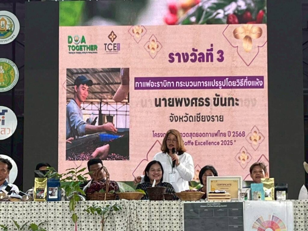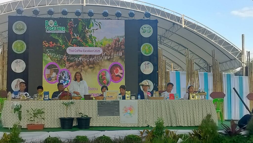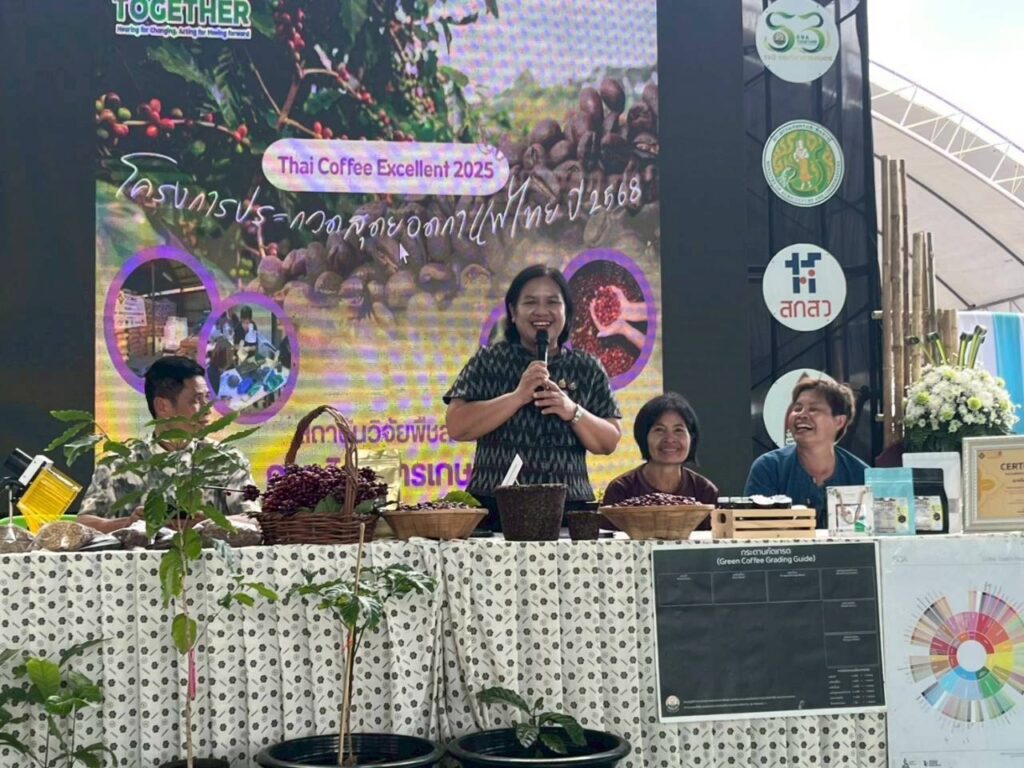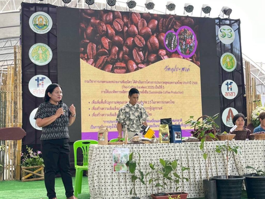 ในโอกาสนี้ สถาบันวิจัยพืชสวน ร่วมเสวนาในหัวข้อ การยกระดับกาแฟในพื้นที่ภาคตะวันออกเฉียงเหนือตอนบน โดย นางวิไลวรรณ ทวิชศรี ผู้อำนวยการกลุ่มวิชาการได้นำเสนอข้อมูลการประกวดสุดยอดกาแฟไทยปีที่ผ่านมา ซึ่งกรมวิชาการเกษตรได้จัดประกวดมา 5 ปีแล้ว (2564-2568) รับฟังความต้องการของเกษตรกรที่ปลูกกาแฟโรบัสตาในจังหวัดเลย หนองคาย ชัยภูมิ ขอนแก่น หนองบัวลำภู และอำนาจเจริญ รวมทั้งได้แลกเปลี่ยนประสบการณ์ ให้ข้อคิดเห็นในการพัฒนากระบวนการผลิต และได้เชิญชวนให้เกษตรกรผู้ปลูกกาแฟในอีสาน เข้าร่วมประกวดสุดยอดกาแฟไทยปี 2569 ที่จะจัดขึ้นในมิถุนายน 2568 นี้